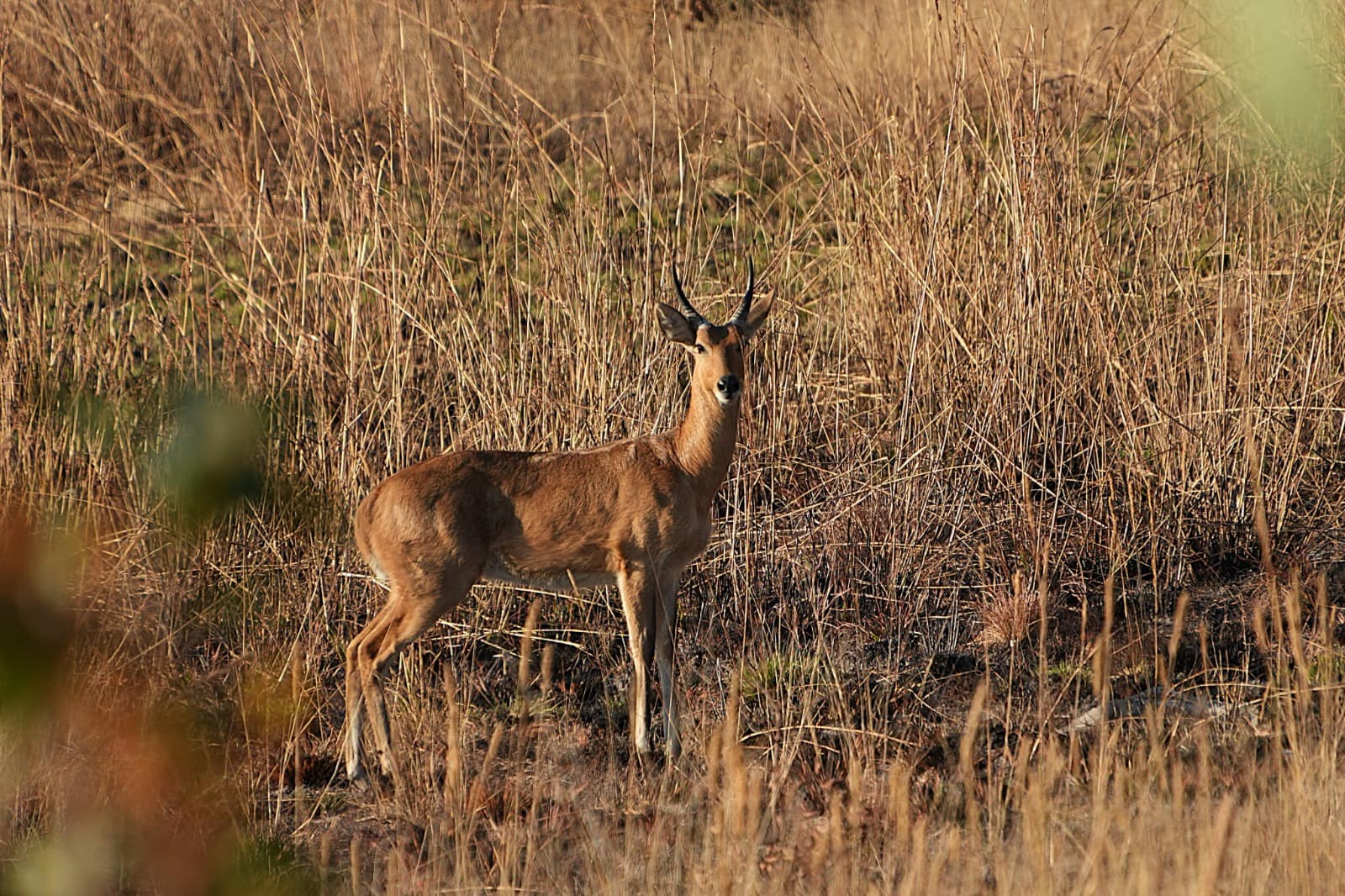 Nach unserer Wanderung auf den Mayense brachen wir am Nachmittag zu einem Game Drive auf – von einem Dambo zum nächsten, stets auf der Suche nach Tieren, die uns in den vorherigen Nationalparks noch gefehlt hatten. Zu den besonderen Sichtungen zählten die Pferdeantilope und der Riedbock. Den Hundertfüßer hatten wir bereits während der Wanderung entdeckt. Auch ein scheuer Buschbock kreuzte unseren Weg – doch er war so schnell verschwunden, dass sich kein Foto machen ließ. Da dieses Gebiet eher ein Wandergebiet ist und nur wenige Fahrzeuge verkehren, sind die Tiere hier nicht an daran gewöhnt und deshalb deutlich zurückhaltender. Zusätzlich konnten wir Paviane beobachten, und sogar ein Warzenschwein zeigte sich.