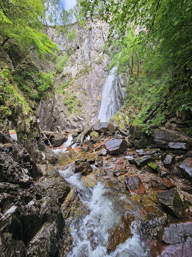 Entlang der steilen Felswände führt hier außerdem ein Klettersteig, der direkt am Wasserfall hinauf verläuft. Für mich persönlich sah dieser jedoch wenig vertrauenswürdig aus – ich bin aus dem Alpenraum deutlich höhere Standards gewohnt.