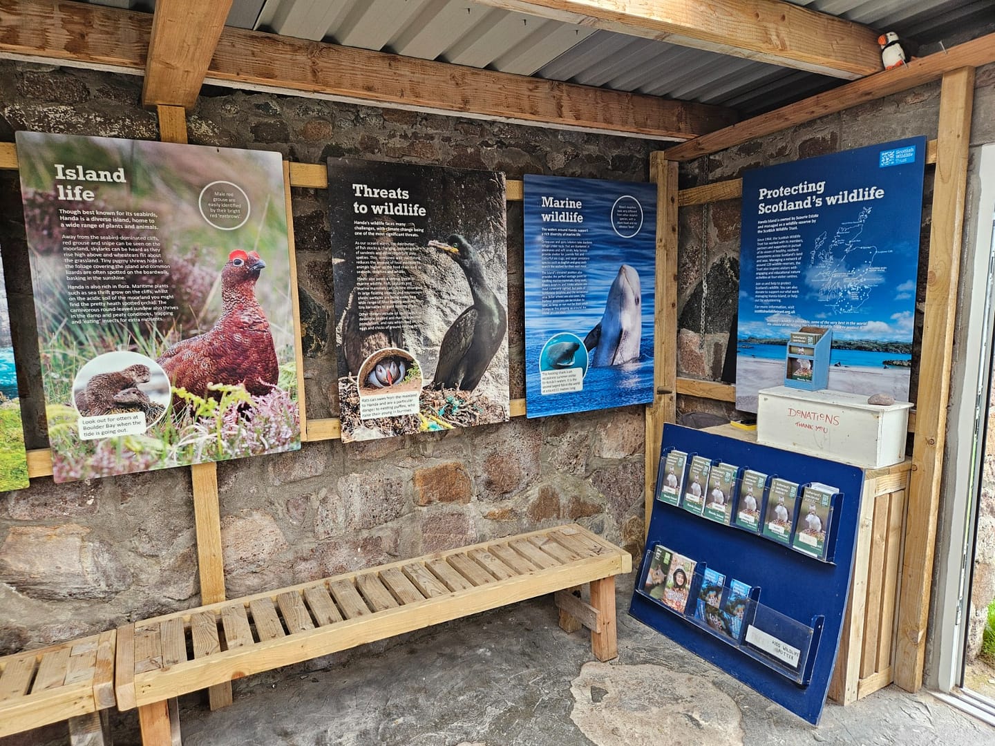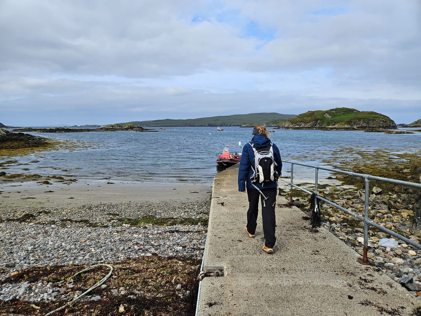 Unser Ausflug beginnt in Tarbet, von wo aus die kleine Personenfähre nach Handa Island übersetzt. Einen festen Fahrplan gibt es nicht – die Überfahrten richten sich nach Bedarf und Wetterlage. In der Regel fährt die Fähre von Montag bis Samstag ab dem frühen Morgen bis etwa 14:00–14:30 Uhr, die Rückfahrten erfolgen am Nachmittag, mit der letzten Überfahrt gegen 16:45–17:00 Uhr. Die erste Fähre des Tages ist uns knapp vor der Nase weggefahren, doch das war kein großes Problem: Es warteten bereits genügend weitere Besucher, sodass das Boot nach der Rückkehr von seiner ersten Tour sofort wieder ablegte.
