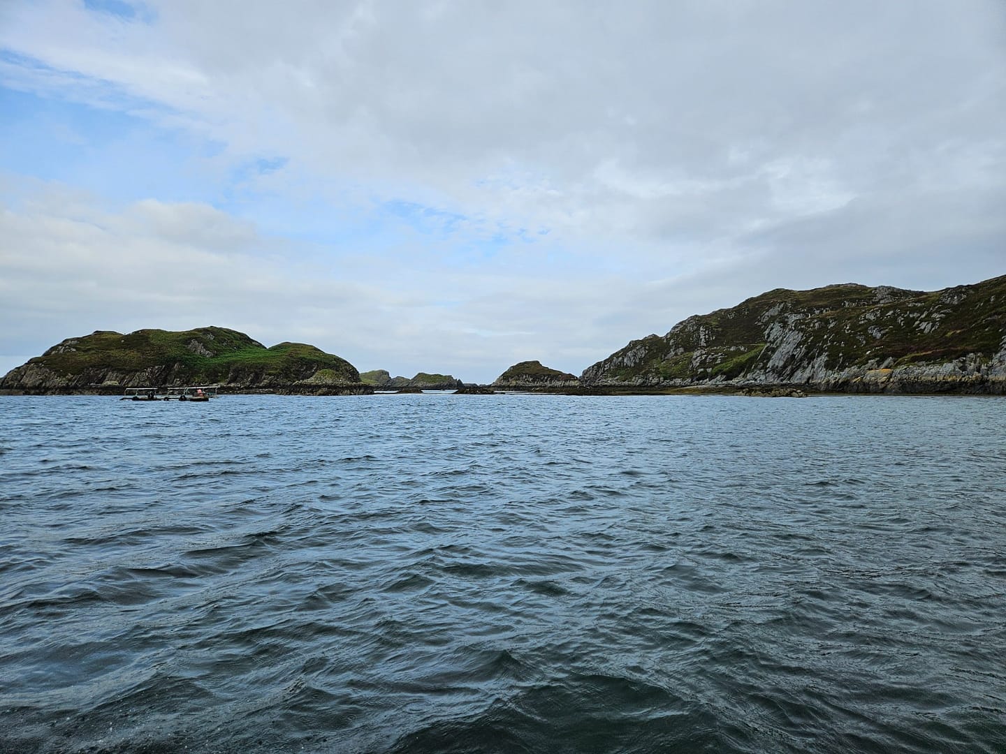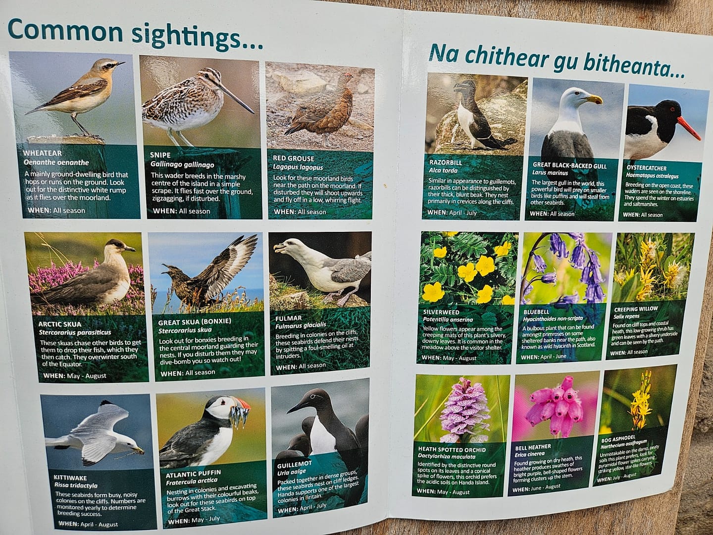 Dabei konnten wir zahlreiche Seevögel beobachten, darunter Trottellummen (eine der größten Kolonien im Vereinigten Königreich), Austernfischer, Tordalken, Dreizehenmöwen, Eissturmvögel, Papageientaucher und Skuas (Große Raubmöwen). Handa Island ist außerdem bekannt für mögliche Sichtungen von Meeressäugern wie Delfinen, Robben, Zwergwalen (Minky-Walen) und gelegentlich sogar Riesenhaien. Diese blieben uns zwar verborgen, doch in der Boulder Bay hatten wir Glück und konnten zwei Robben im Meer beobachten.