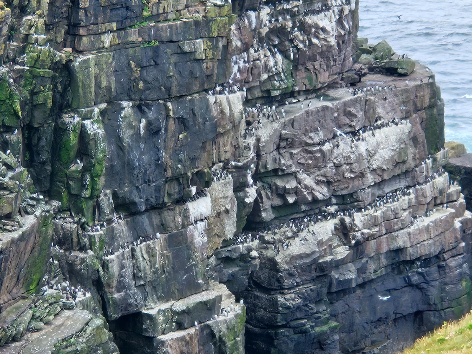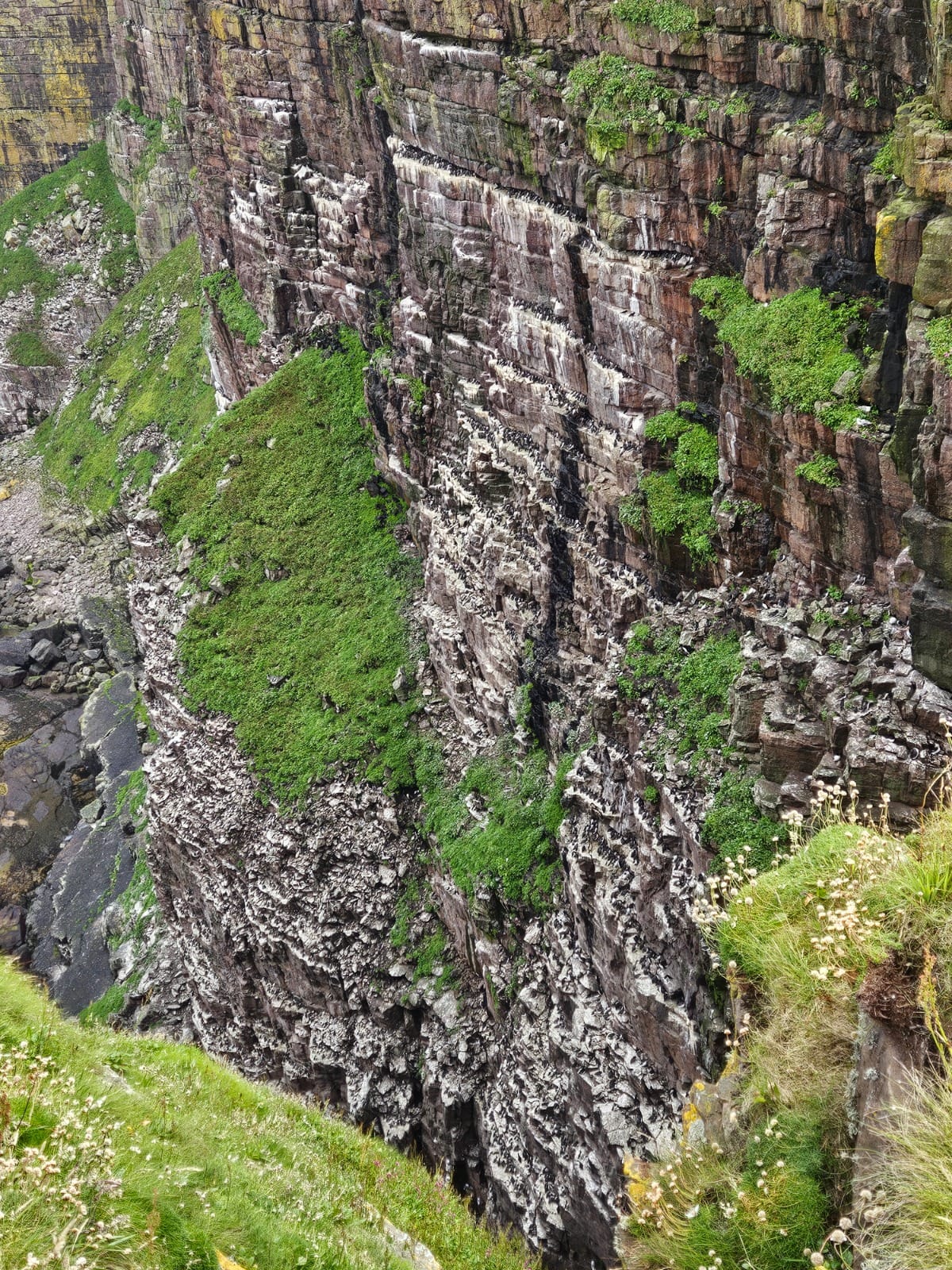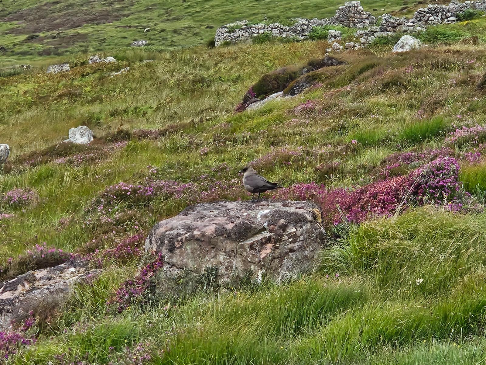 Das Inselinnere ist geprägt von weiten Heidelandschaften, Feuchtgebieten und Moorflächen, während die Küste mit dramatischen Klippen und beeindruckenden Meeressäulen einen starken Kontrast bildet. Es gibt einen festgelegten Rundweg mit nur wenigen Ausweichmöglichkeiten, um die Natur bestmöglich zu erhalten. Über angelegte Pfade, teilweise als Holzstege ausgeführt, ging es im Uhrzeigersinn zu den Aussichtspunkten und Vogelkolonien.