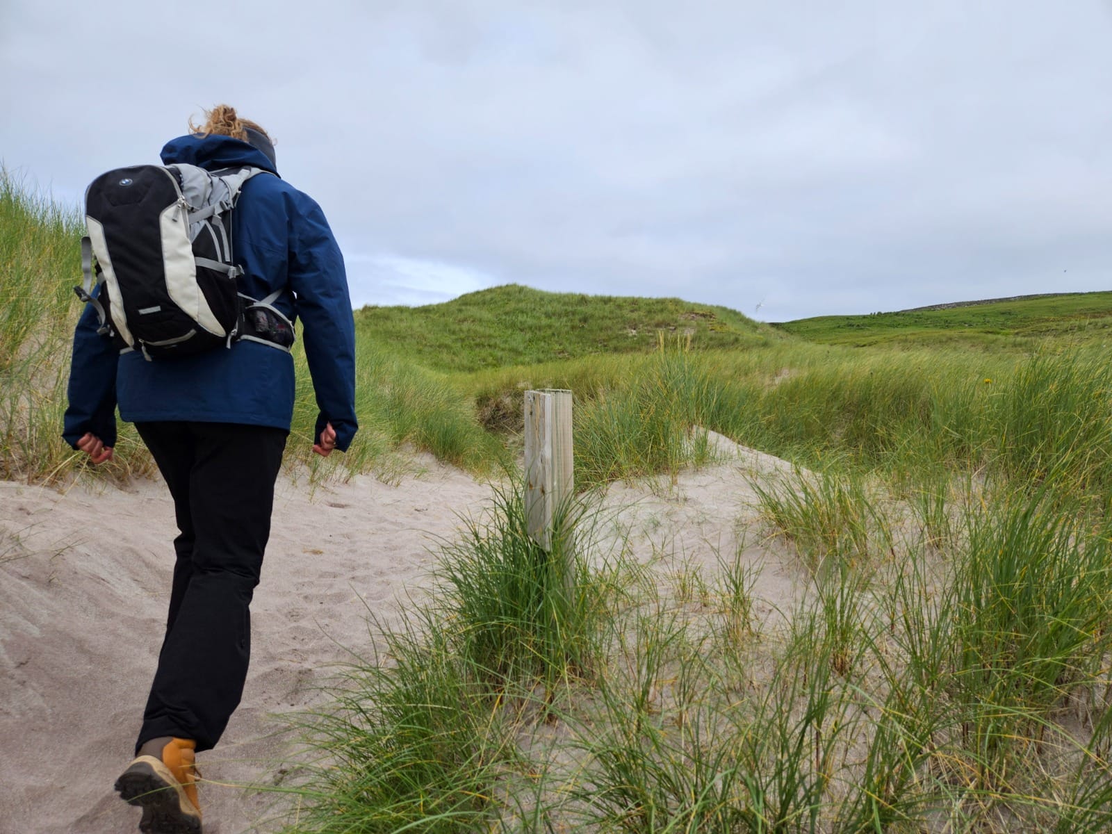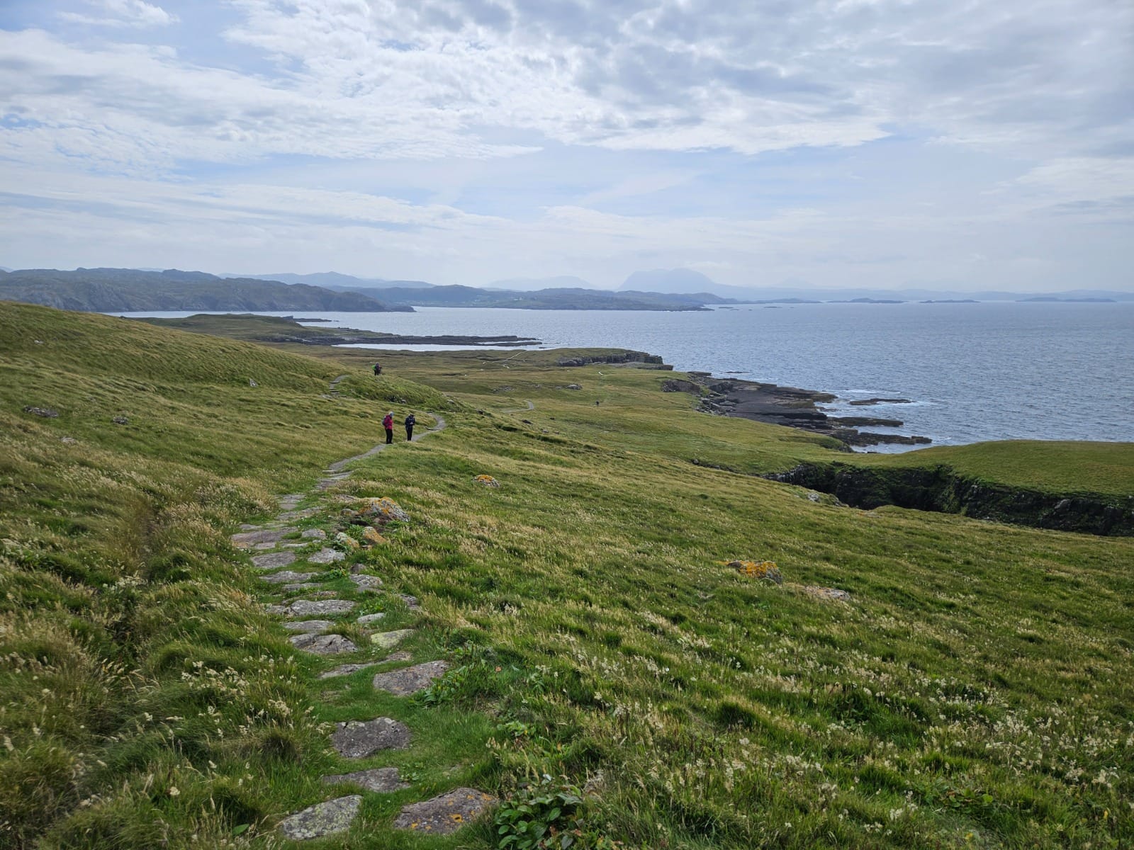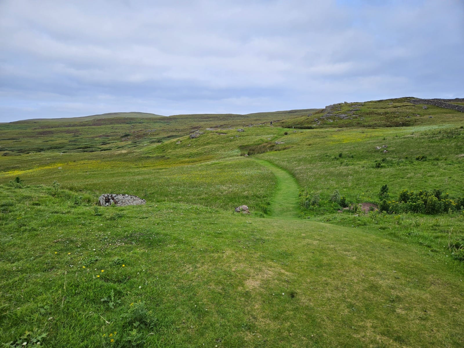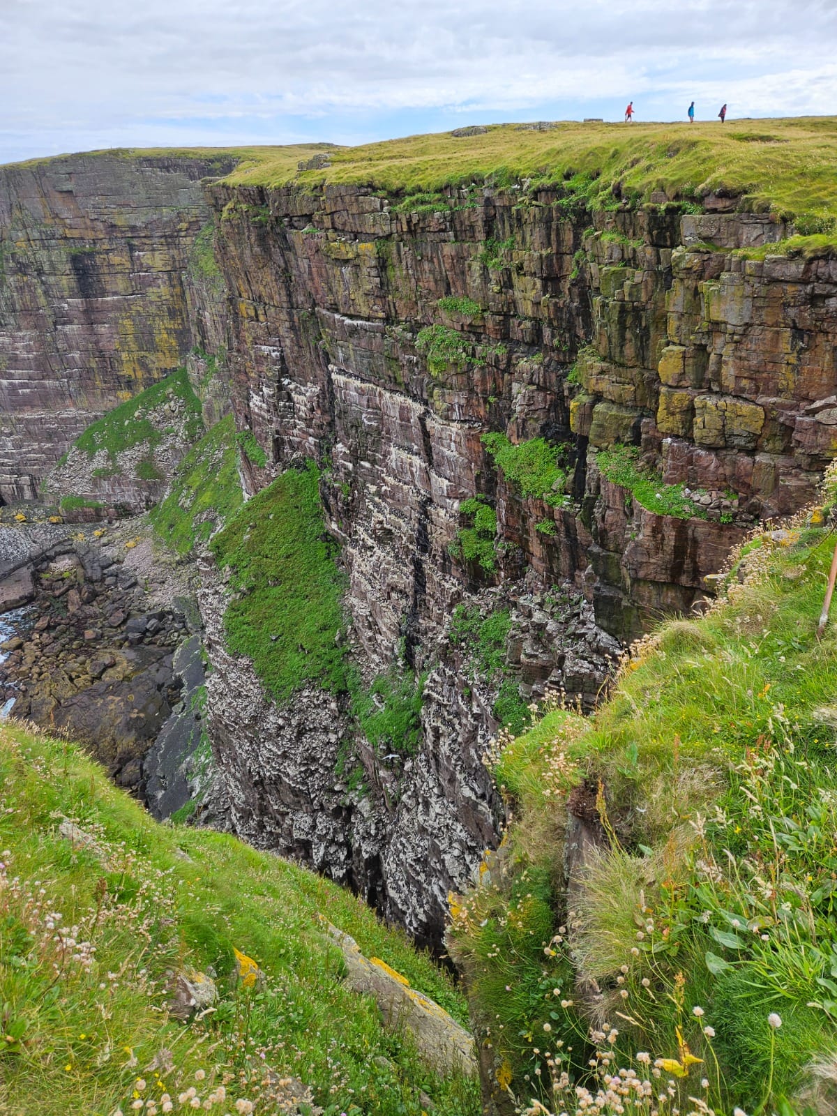 Das Inselinnere ist geprägt von weiten Heidelandschaften, Feuchtgebieten und Moorflächen, während die Küste mit dramatischen Klippen und beeindruckenden Meeressäulen einen starken Kontrast bildet. Es gibt einen festgelegten Rundweg mit nur wenigen Ausweichmöglichkeiten, um die Natur bestmöglich zu erhalten. Über angelegte Pfade, teilweise als Holzstege ausgeführt, ging es im Uhrzeigersinn zu den Aussichtspunkten und Vogelkolonien.