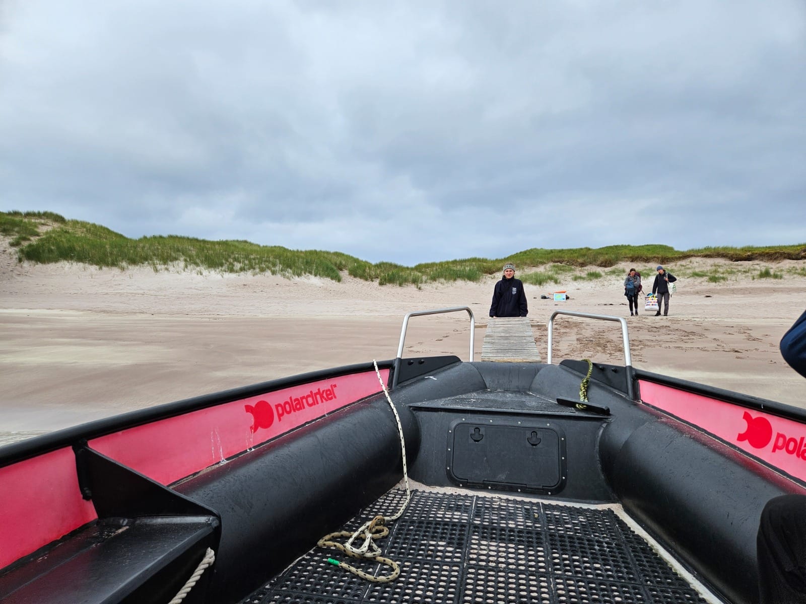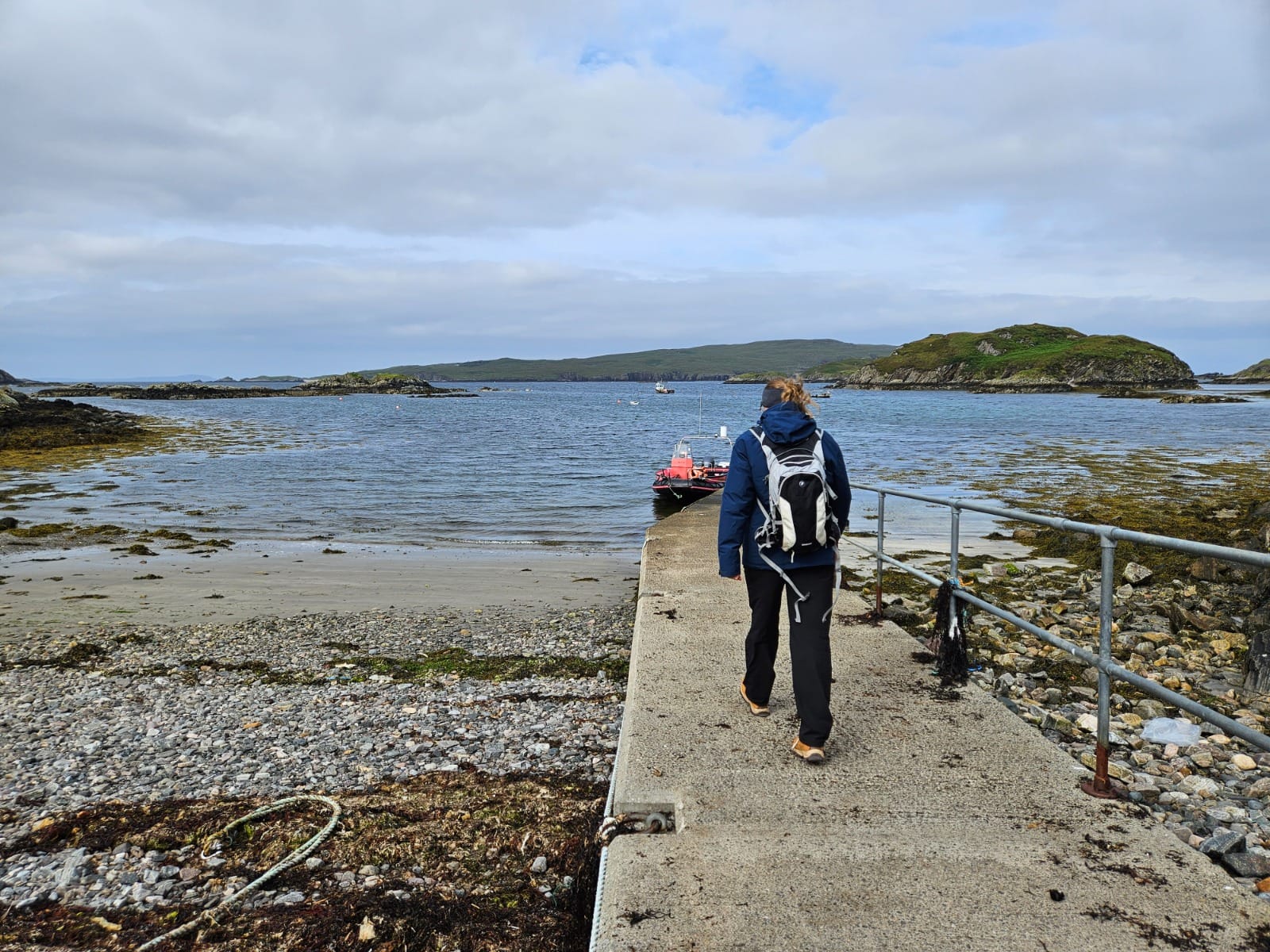 Unser Ausflug beginnt in Tarbet, von wo aus die kleine Personenfähre nach Handa Island übersetzt. Einen festen Fahrplan gibt es nicht – die Überfahrten richten sich nach Bedarf und Wetterlage. In der Regel fährt die Fähre von Montag bis Samstag ab dem frühen Morgen bis etwa 14:00–14:30 Uhr, die Rückfahrten erfolgen am Nachmittag, mit der letzten Überfahrt gegen 16:45–17:00 Uhr. Die erste Fähre des Tages ist uns knapp vor der Nase weggefahren, doch das war kein großes Problem: Es warteten bereits genügend weitere Besucher, sodass das Boot nach der Rückkehr von seiner ersten Tour sofort wieder ablegte.