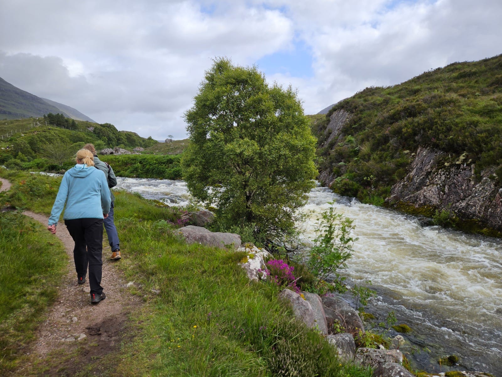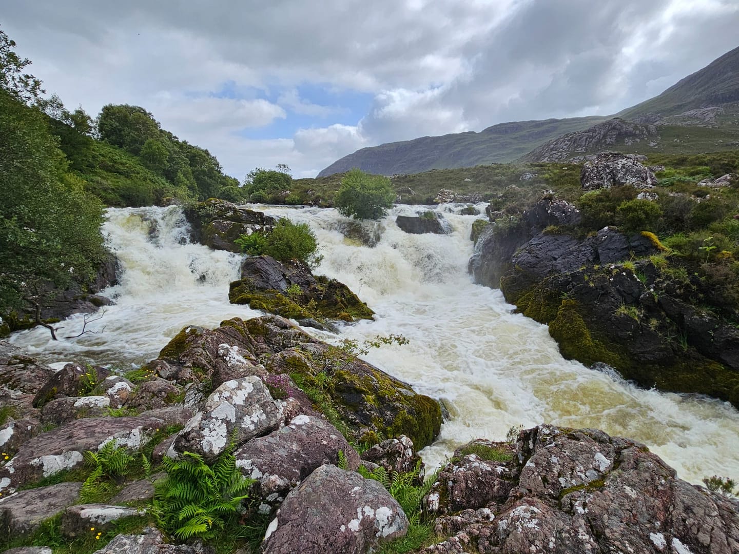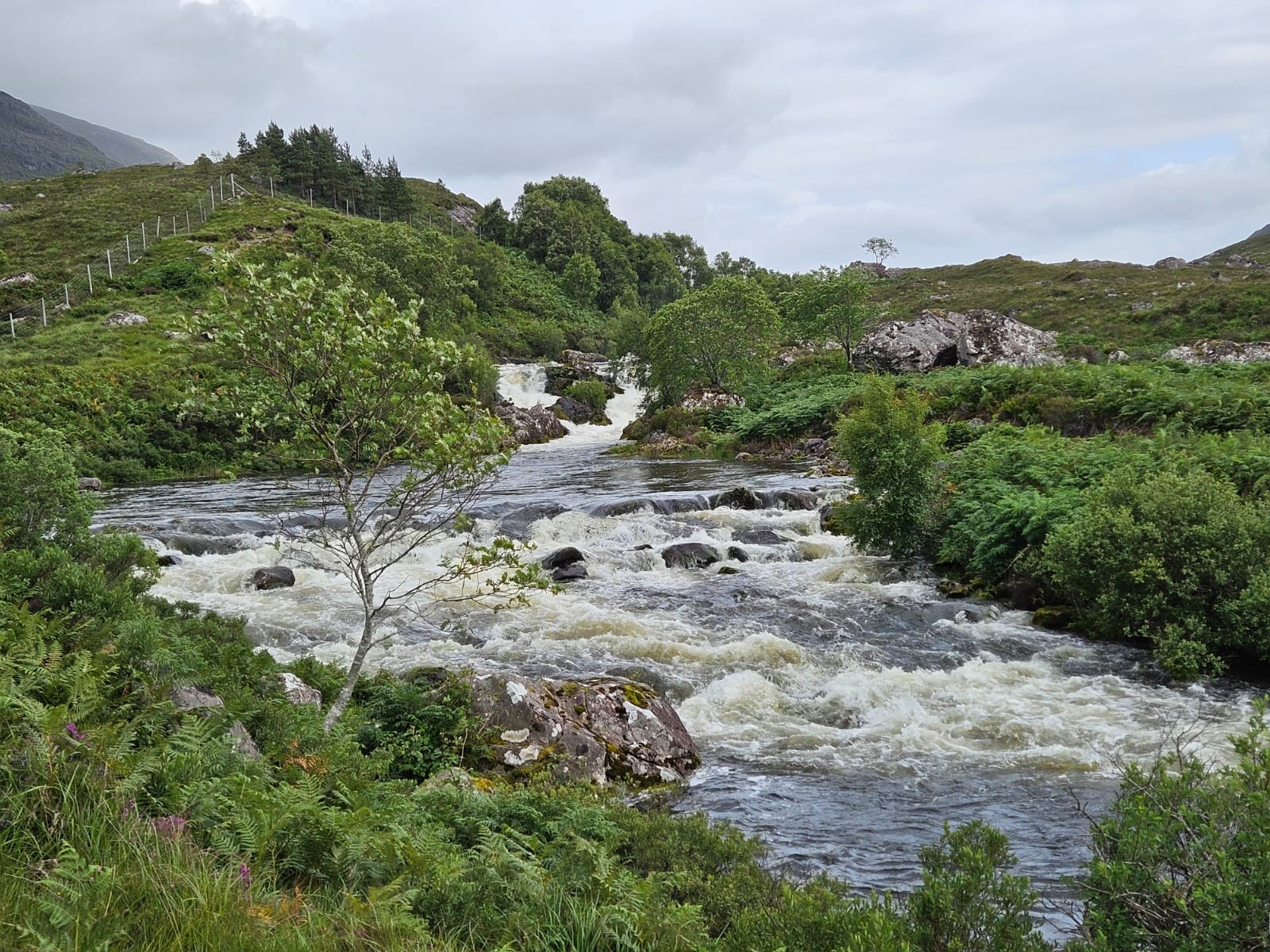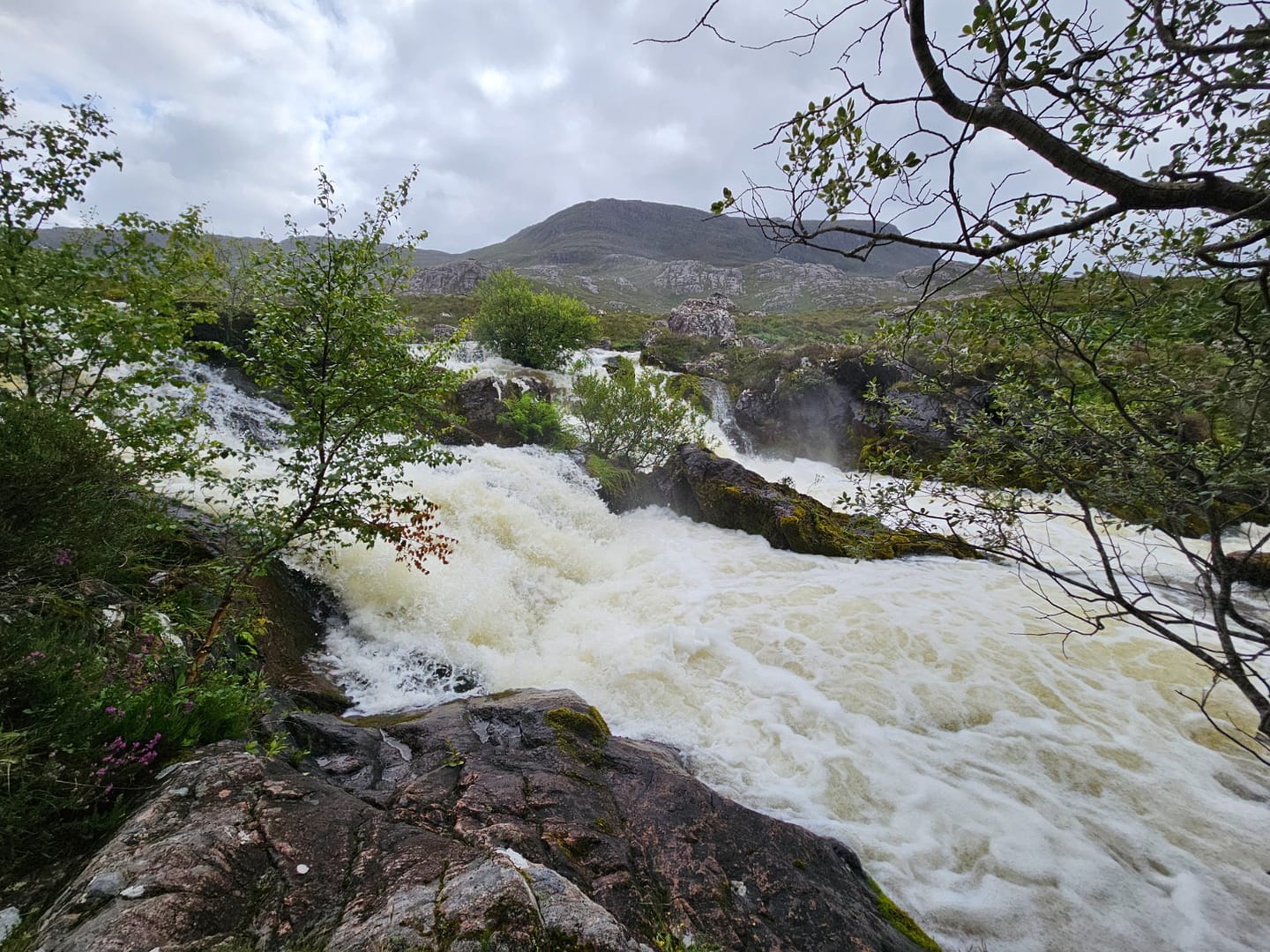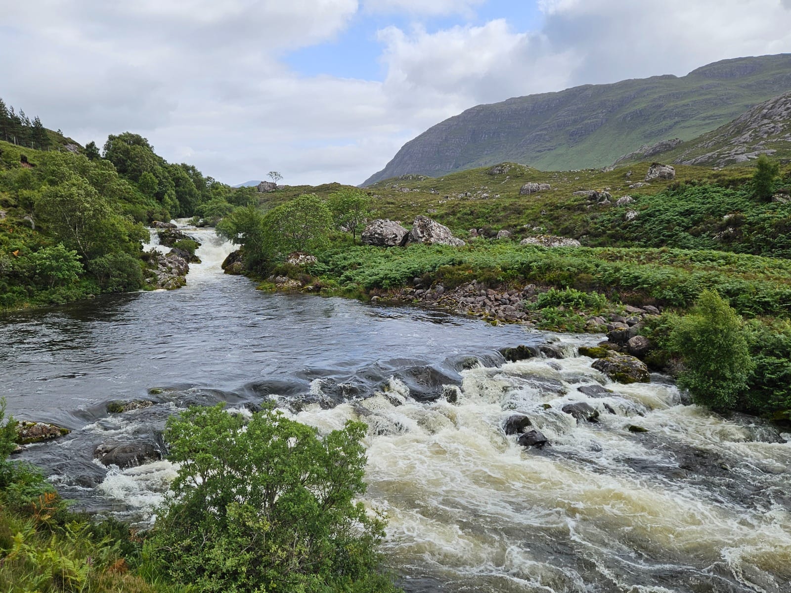 Nach etwa 0,7 Kilometern erreicht man die Stufen des Flusses, die als Aussichtspunkt ‚Lake Falls‘ bekannt sind. Von hier aus ließe sich der Weg noch weiter bis zum Loch Damh fortsetzen. An diesem Tag hatten wir jedoch bereits eine Wanderung zum Old Man of Storr hinter uns und noch einiges vor, sodass wir den Ausblick genossen – der wirklich wunderschön war – und anschließend wieder zum Auto zurückkehrten.
