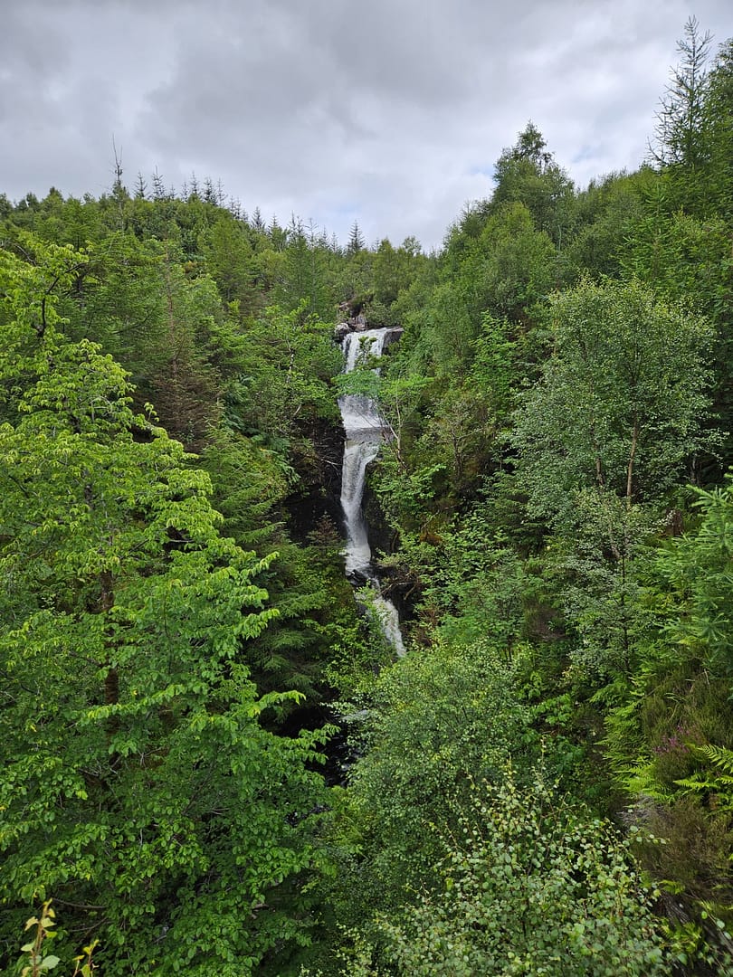 Victoria Falls?! Haben wir uns etwa in ein anderes Land – oder sogar auf einen anderen Kontinent – gebeamt? Keine Sorge: Wir sind immer noch in Schottland. Die Victoria Falls hier tragen ihren Namen zu Ehren von Königin Victoria, die diese Gegend im 19. Jahrhundert besuchte.
