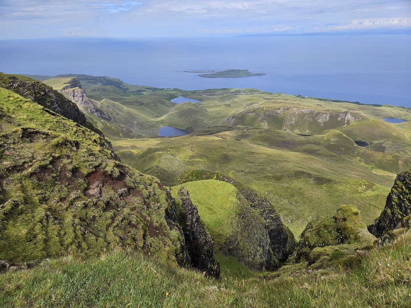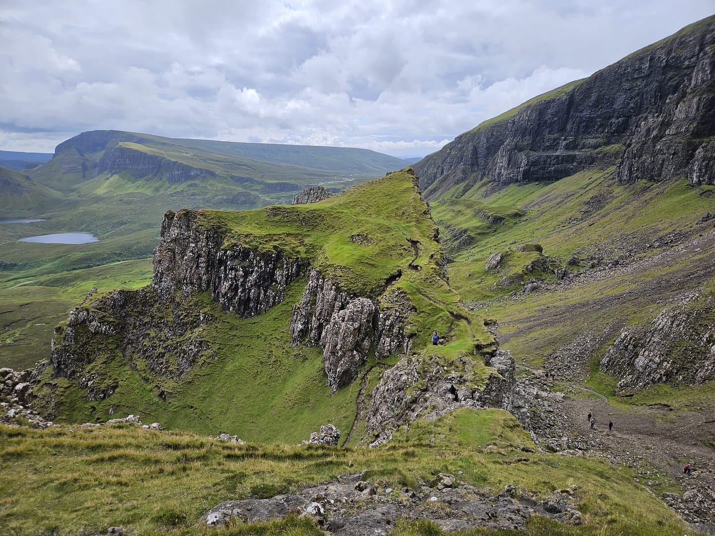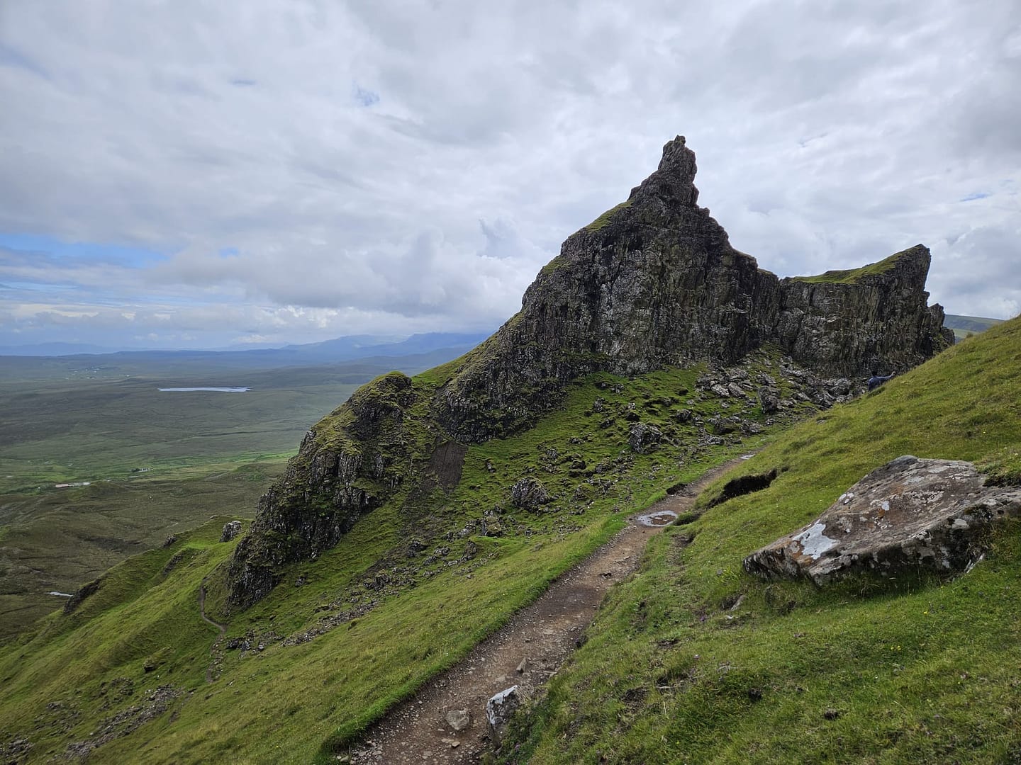 Der Quiraing Trail ist Teil des imposanten Trotternish Ridge – einer rund 30 Kilometer langen tektonischen Abbruchkante im Norden der Isle of Skye. Für mich zählt diese Tour zu den eindrucksvollsten Wanderungen in Schottland: Die Landschaft wirkt surreal – mit bizarren Felsformationen, atemberaubenden Ausblicken und einer geologischen Einzigartigkeit. Die spektakulären Formationen entstanden durch einen gewaltigen Erdrutsch, bei dem massive Basaltschichten über lockeres Sediment glitten – ein geologisch noch aktives Gebiet.