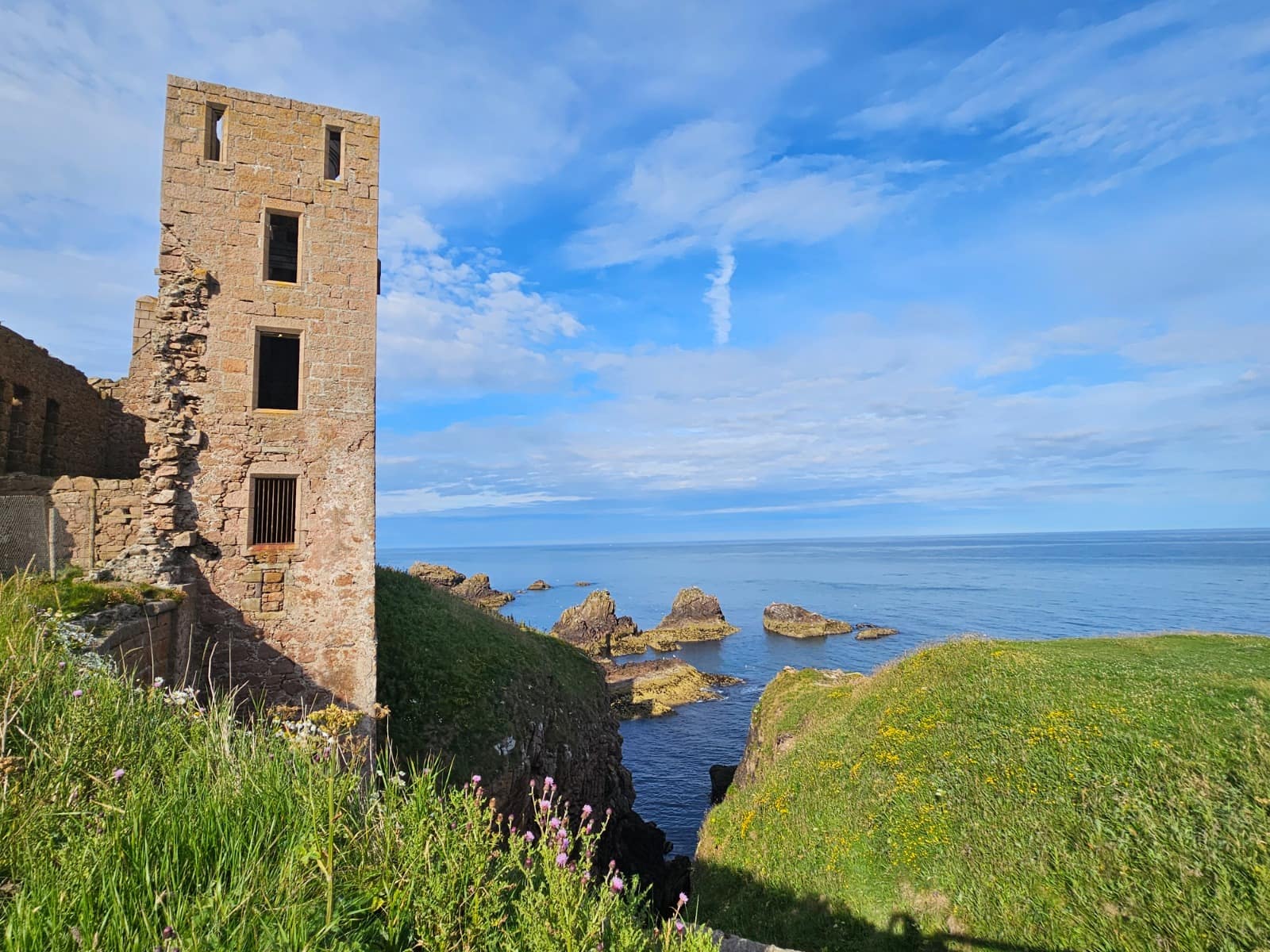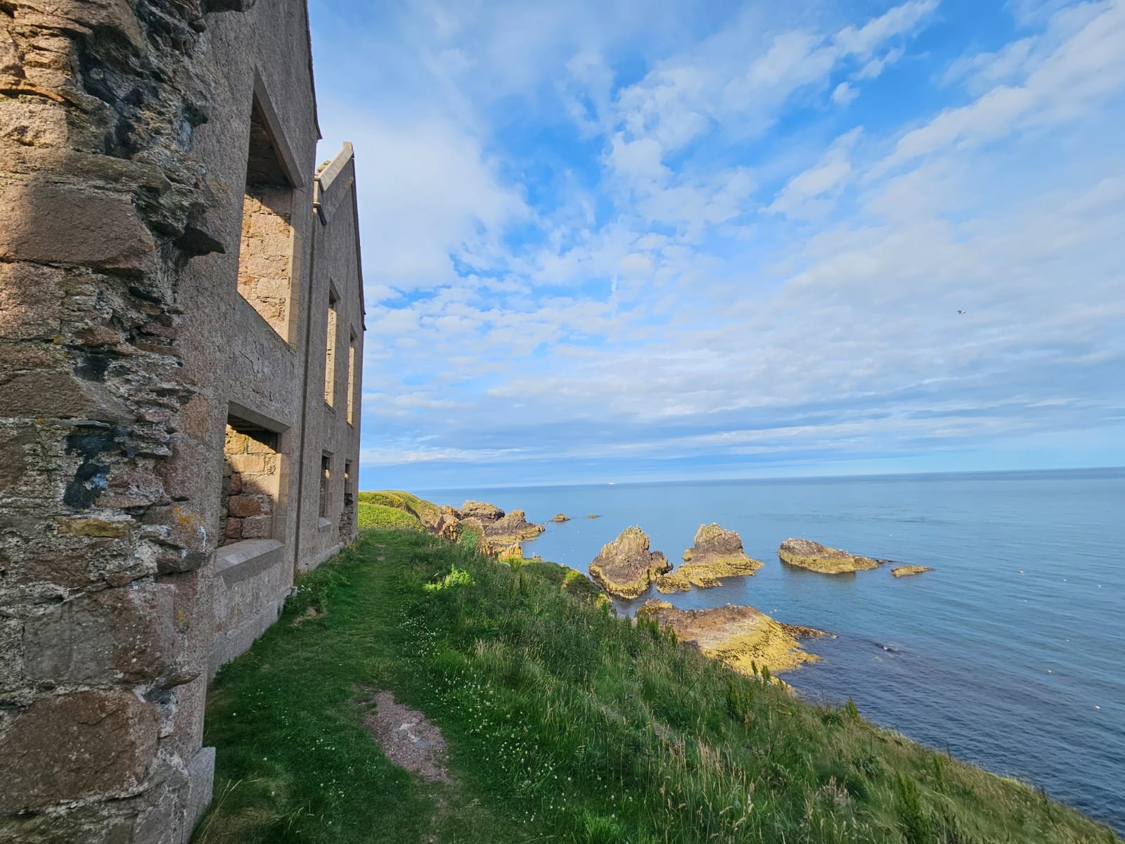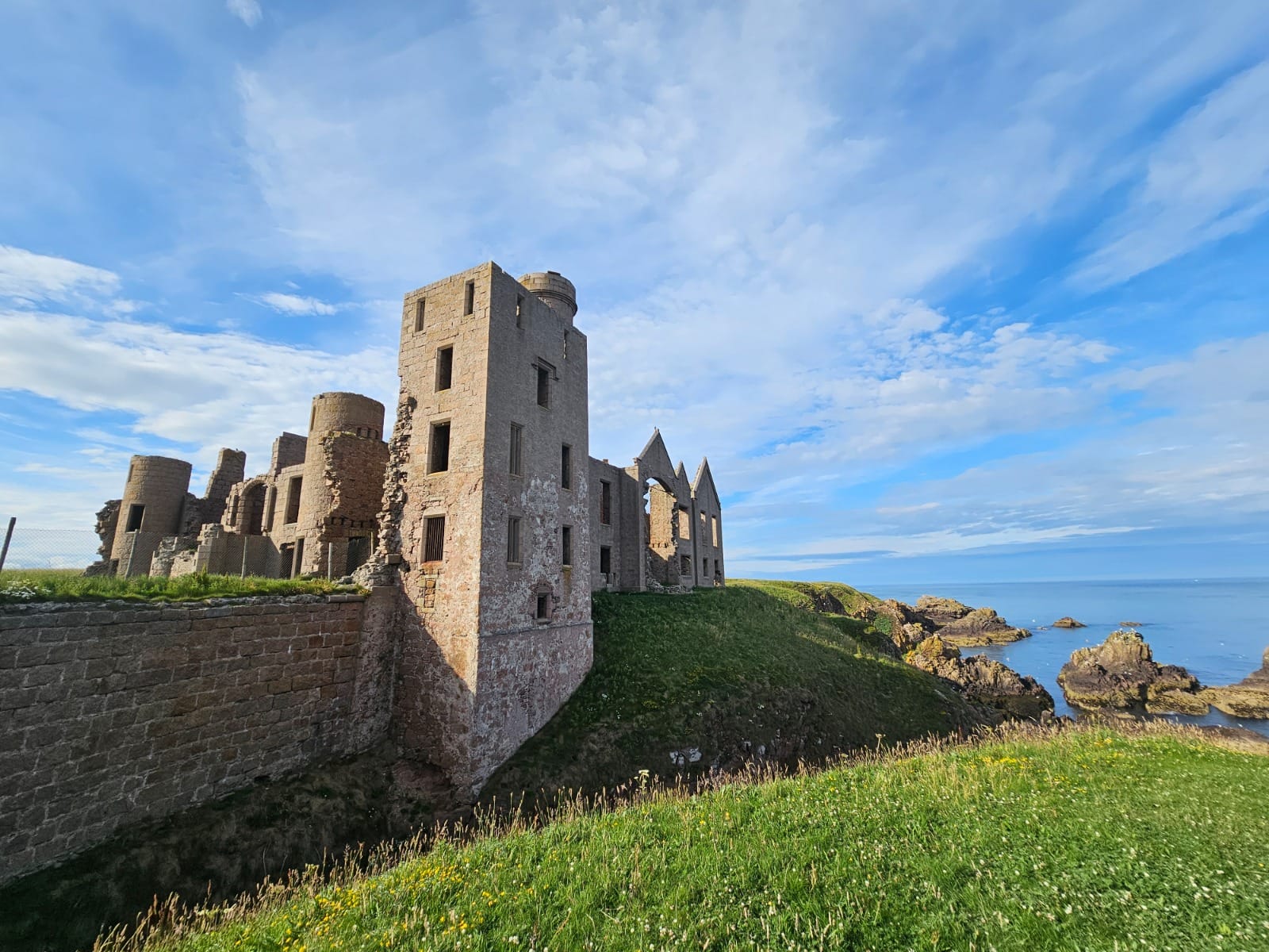 Heute steht nur noch ein dachloser Ruinenkomplex, dessen Außen- und Innenmauern größtenteils erhalten sind. Gerade das verleiht dem Ort eine ganz besondere Atmosphäre: New Slains Castle lässt sich frei erkunden und bietet ein stimmungsvolles, fast mystisches Erlebnis.