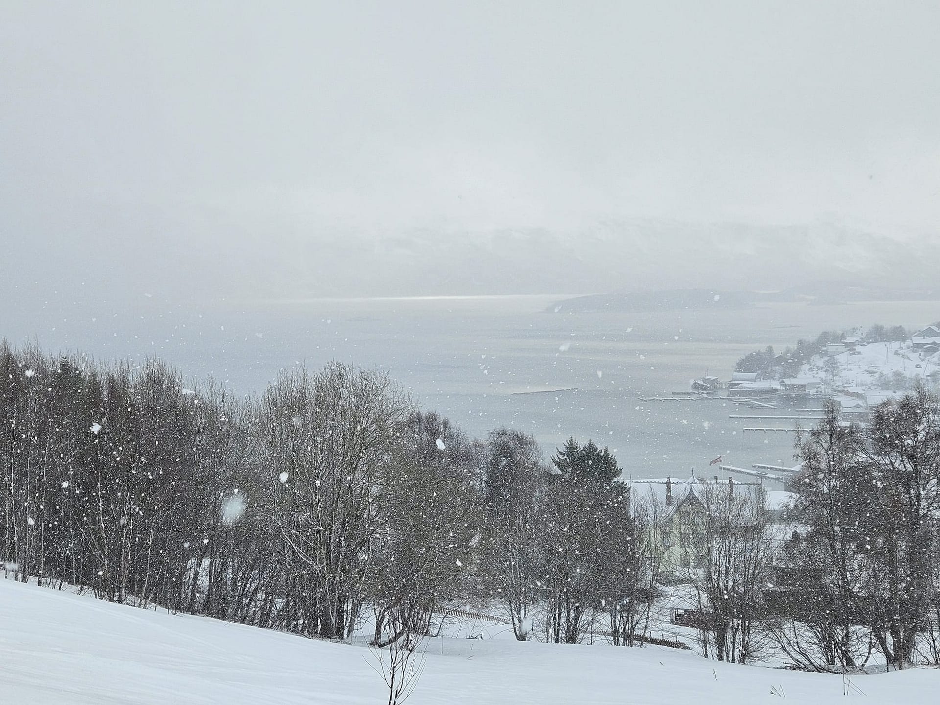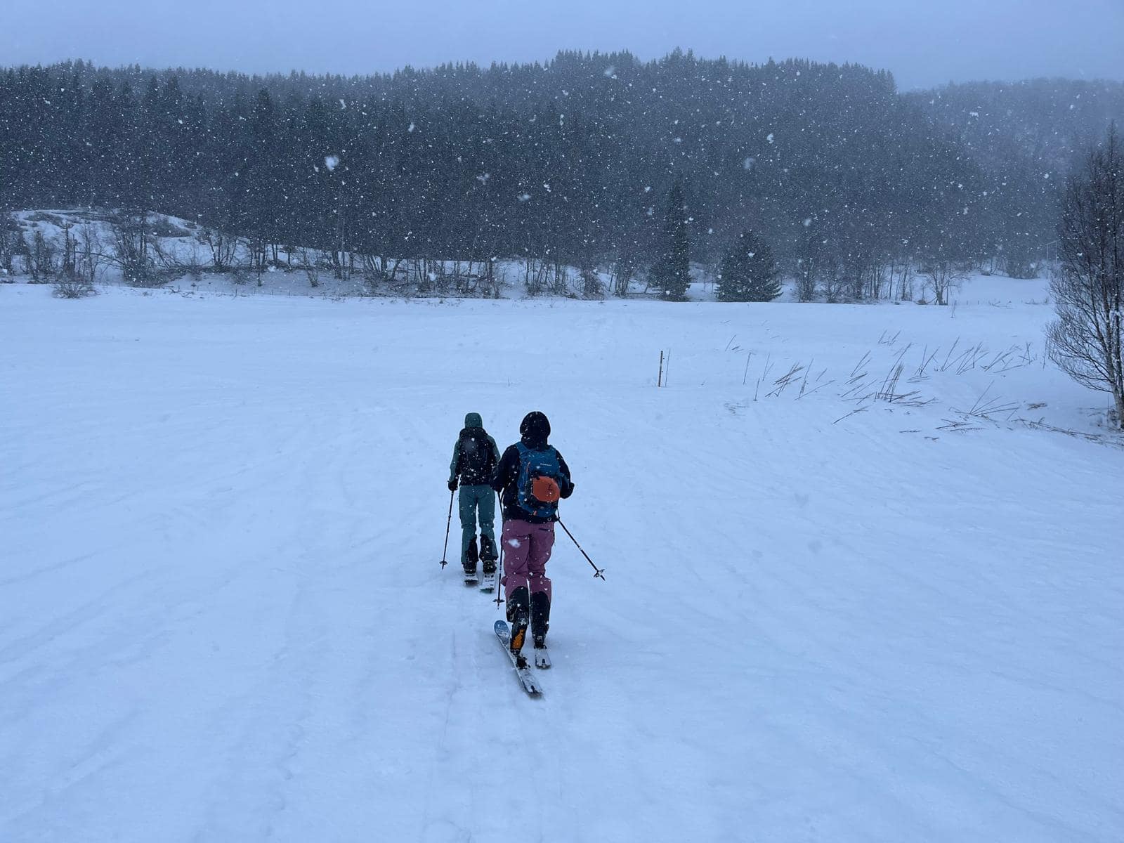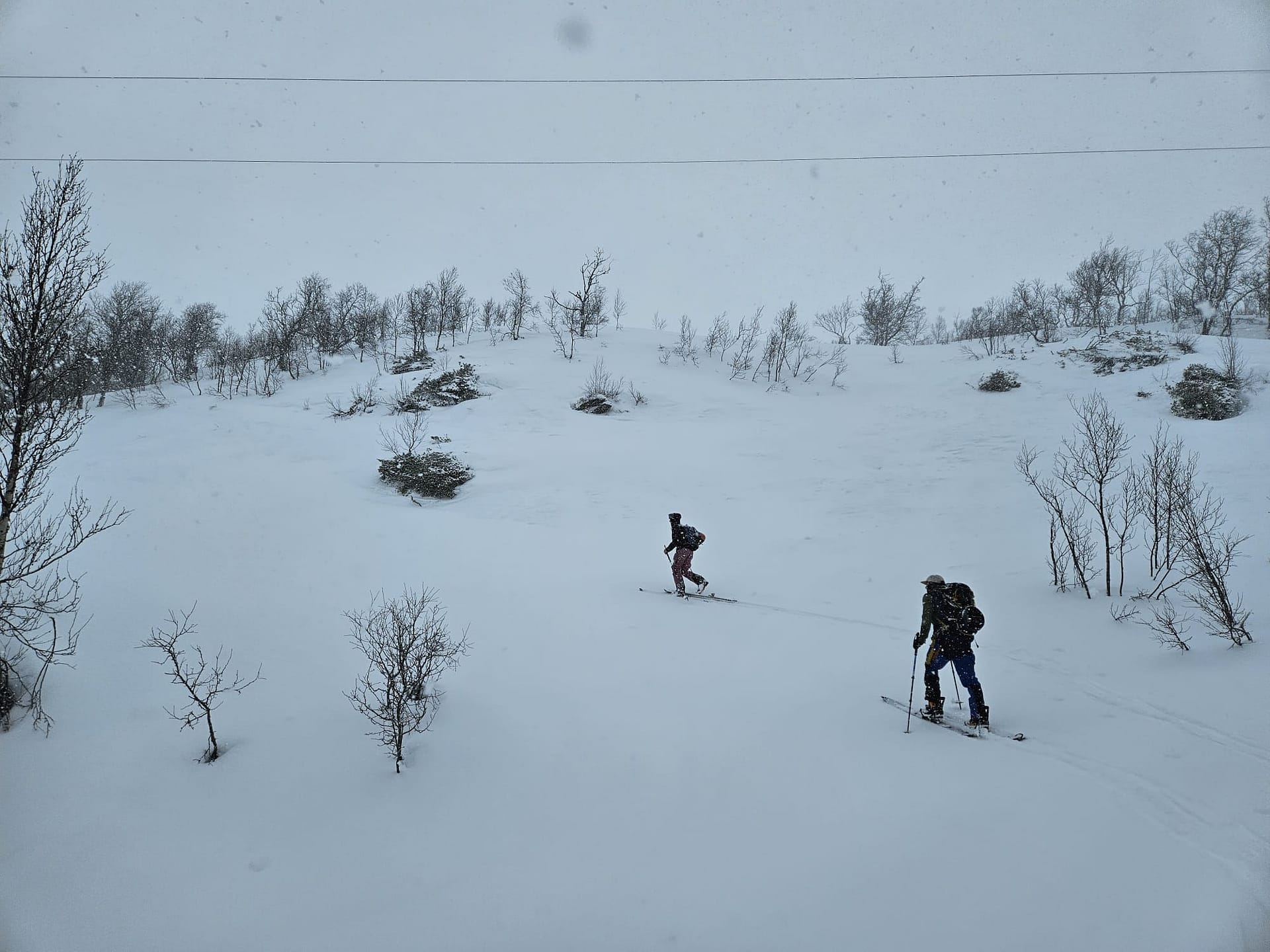 Unser Ziel war es, bis auf etwa 900 Höhenmeter aufzusteigen. Allerdings verschlechterten sich die Sichtverhältnisse zunehmend, der Wind nahm stark zu, und schließlich befanden wir uns praktisch im Whiteout. Daher entschieden wir uns, die Tour etwa 100 Höhenmeter oberhalb des Langvatnet-Sees abzubrechen.