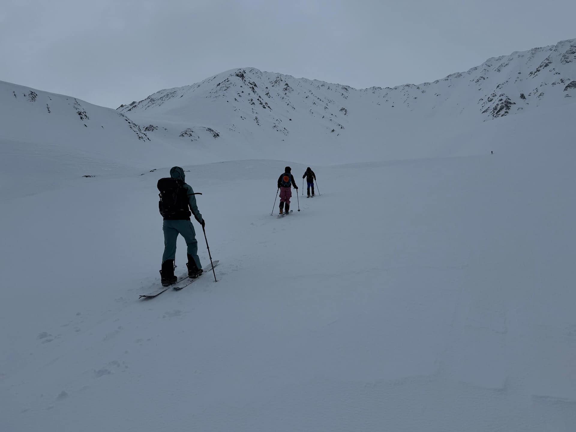 Der darüberliegende Bergrücken zeigte sich stark abgeblasen, während im oberen Bereich starker, stürmischer Wind herrschte. Aufgrund der Verhältnisse – insbesondere Triebschneeansammlungen in der Stufe sowie des starken Windeinflusses – wurde auf einen weiteren Aufstieg verzichtet.
