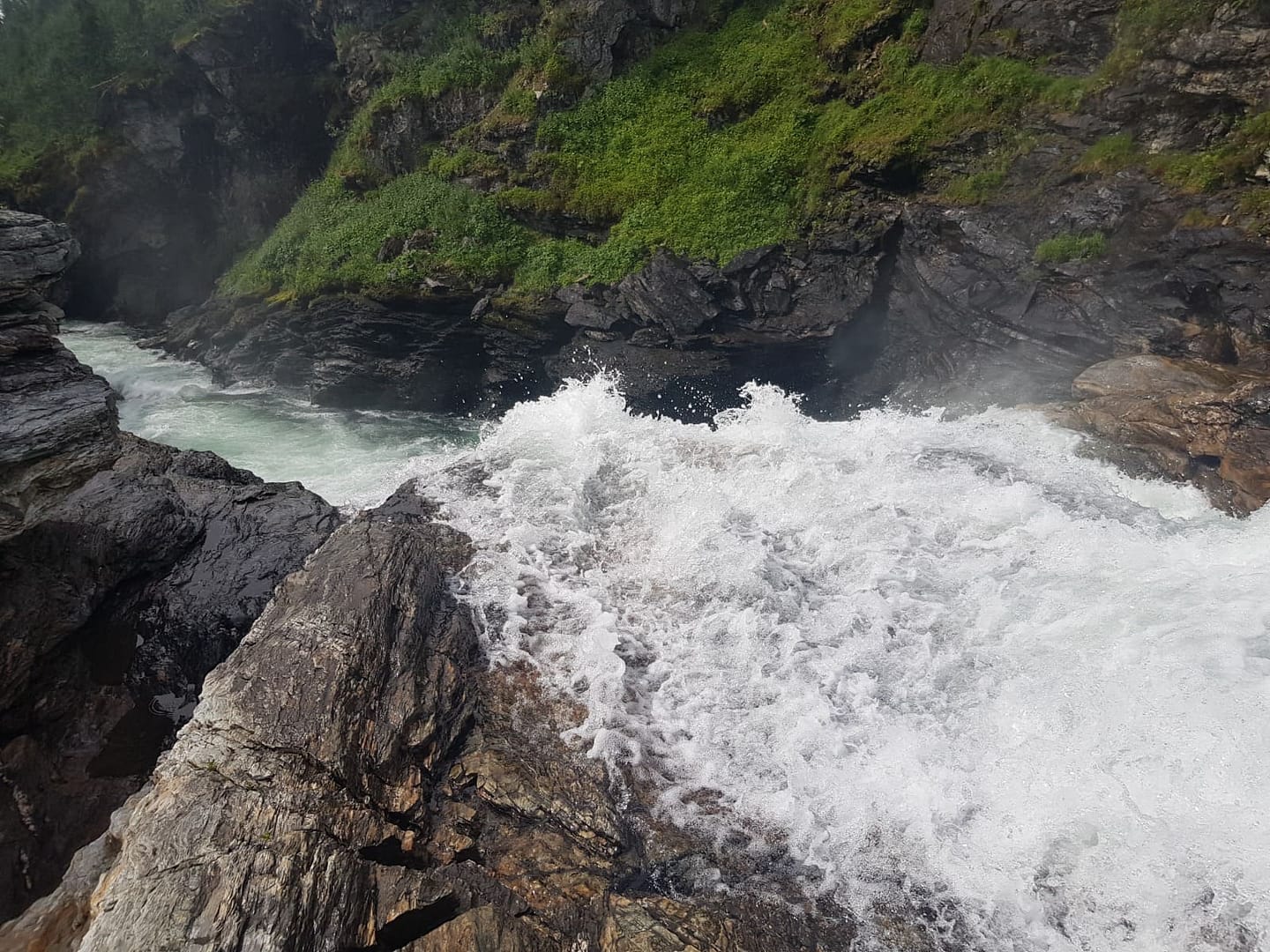 Von Süden kommen, auf der Straße Z 824, fährt man einem unscheinbaren Schild „Gaustafallet“, welches an einer kleinen Parkbucht auf der linken Seite steht, vorbei. Platz für ca. 3 Camper. Man geht nur ca. 150 Meter zum ungefähr 7 Meter hohen tosenden Wasserfall und kann das Naturereignis bewundern. Weitere Trampfelpfade führen entlang des Flusses Gaavesjohke entlang, welcher mehrere spektakuläre Stromschnellen mit sich bringt, diese haben wir jedoch nicht näher erkundet.
