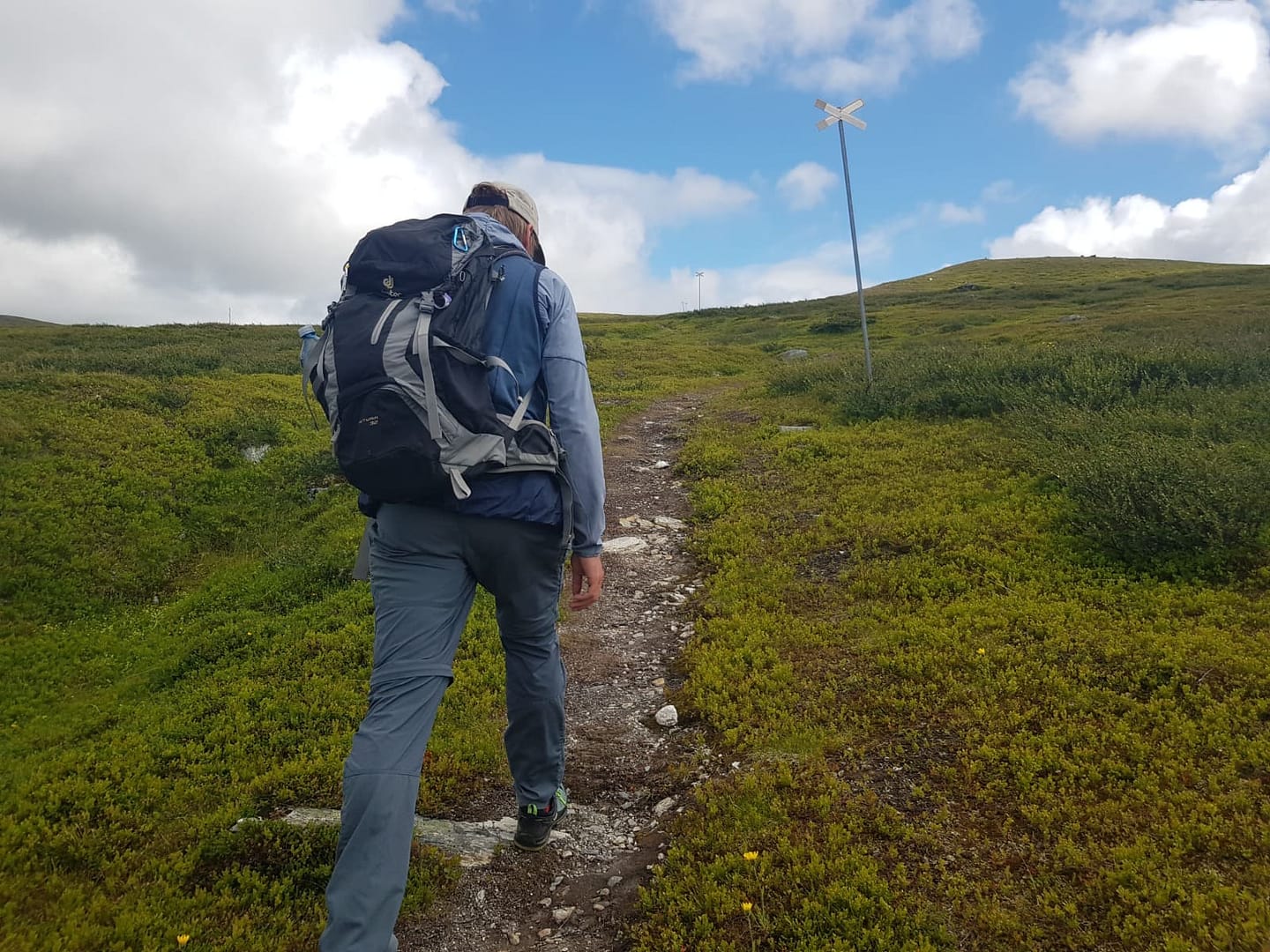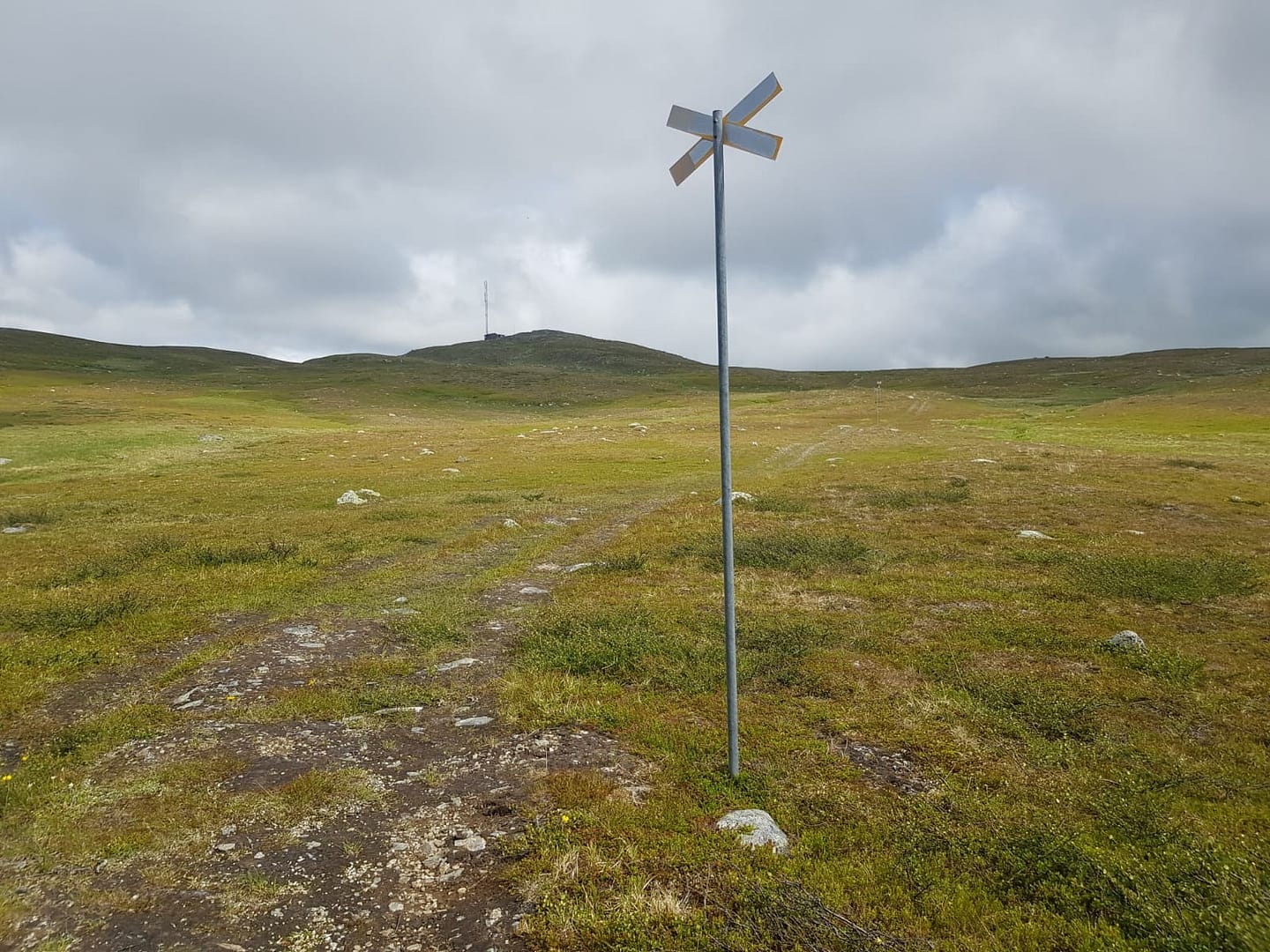 Über Trampelpfade und einem Feldweg ging es immer entlang der Skidoo-Markierungen (Stangen mit Kreuzen) relativ unspektakulär hoch zum Gipfel Stihke. Die Aussicht haben wir genossen, aber die Rentiere leider auch hier nicht gesichtet.