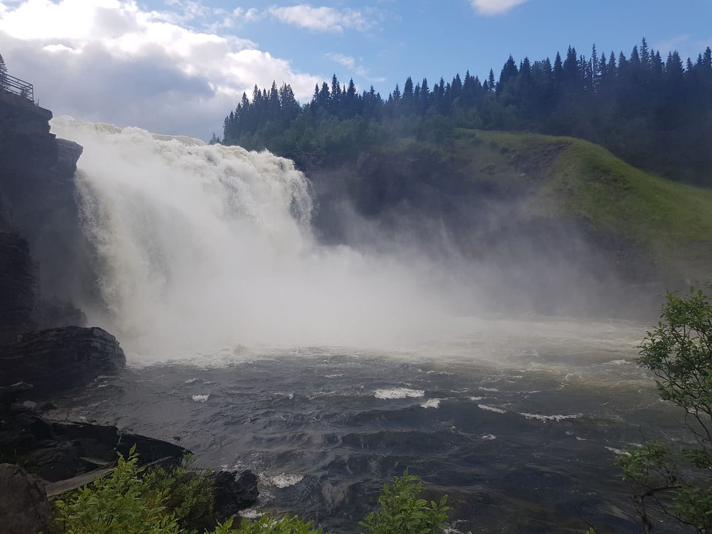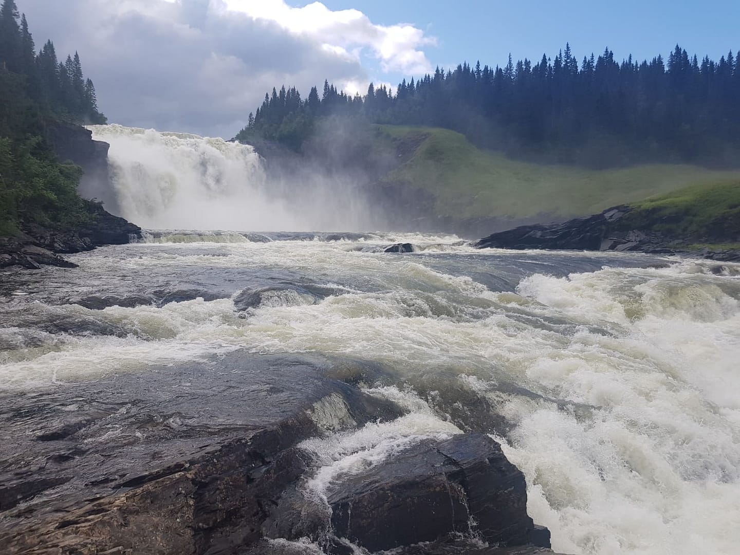 Der Wasserfall entstand an der steilen Kante eines überhängenden Felsplateaus, das durch die Auffaltung der Skandinavischen Gebirgskette vor ungefähr 500 Millionen Jahren gebildet wurde.