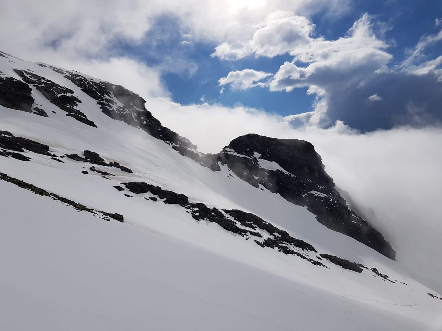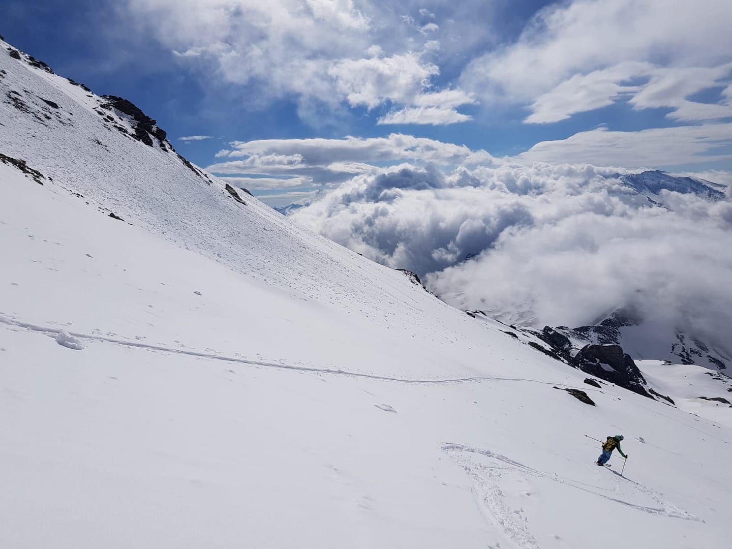 Die Abfahrt folgt entlang der Aufstiegsroute.