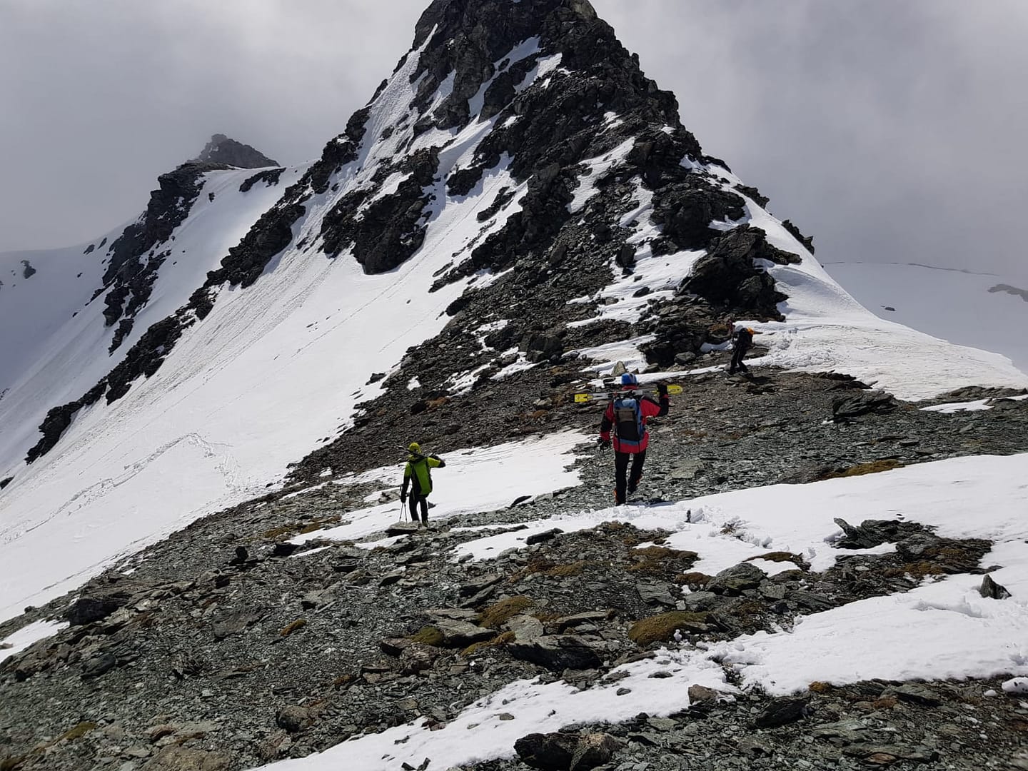 Achtung an die Snwowboardfahrer, für die Querung unterhalb des Gipfels zurück zur Brennkogelscharte solltet ihr genug Schwung mitnehmen, bei uns war der Schnee dort schon recht schwer und ich durfte die letzten Meter tragen – die Skifahrer aber auch, weil die Scharte sehr ausgeapert war.