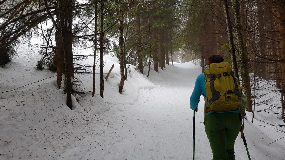 es ist eine vielbegangende Skitour, so dass voraussichtlich bereits Spuren zu finden sind. Vom Parkplatz läuft man den Hang hinauf bis man an einer Forststraße ankommt. Ab hier führt der Weg rechts in den Wald hinein. Diesen Weg folgend kommen wir aus dem Waldstück heraus auf eine große Fläche. In der Ferne kann man bereits das nächste Waldstück sehen, welches wir auch durchqueren. Der letzte Abschnitt führt über einen breiten hang, welcher mit einem Wegweiser gekennzeichnet ist. Der Gipfel ist sozusagen bereits in Sichtweite (so fern die Sicht es zu lässt).