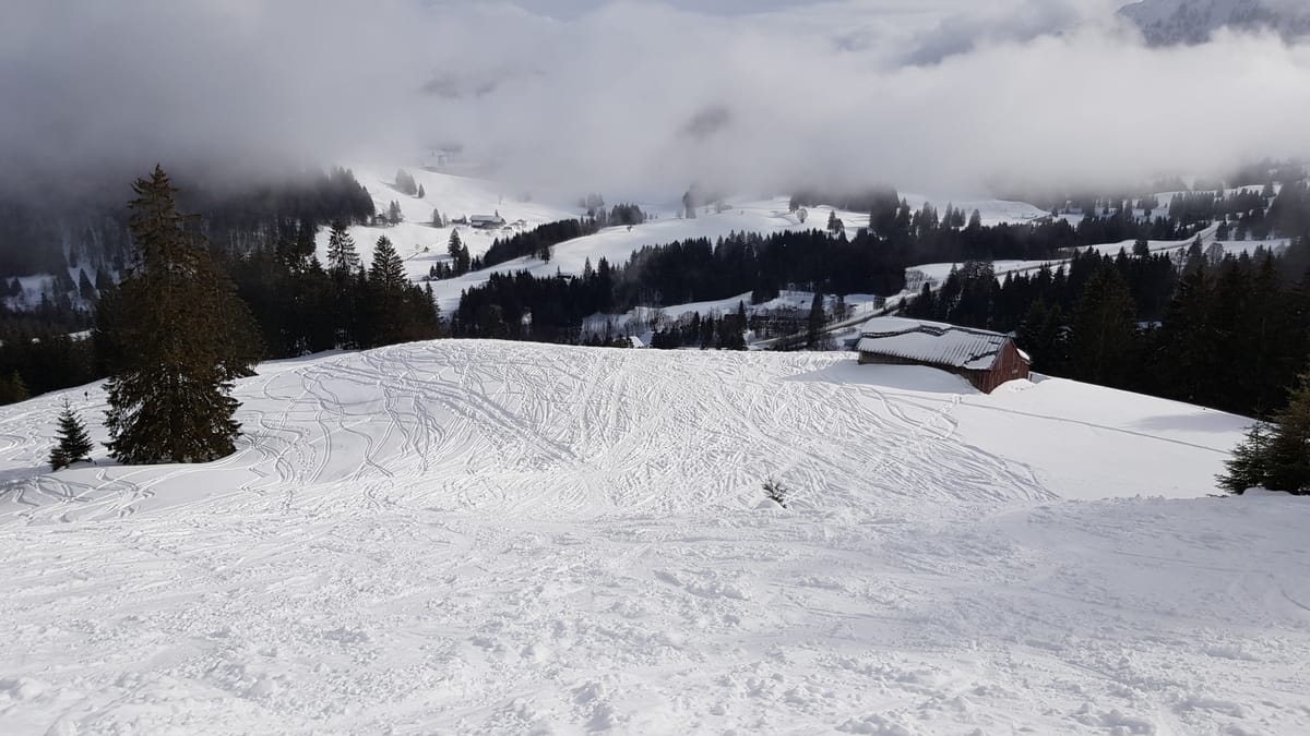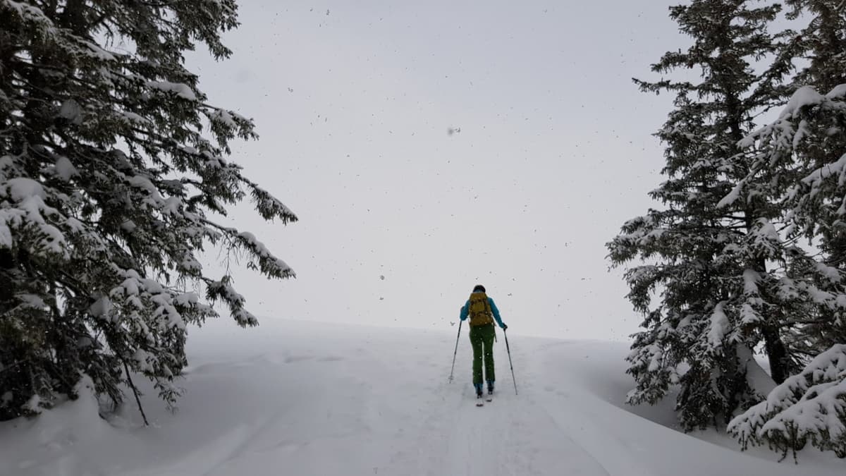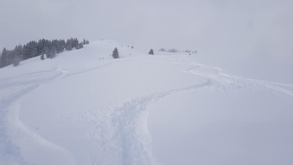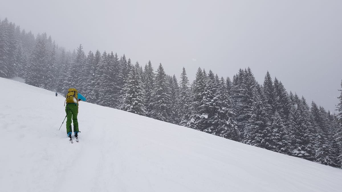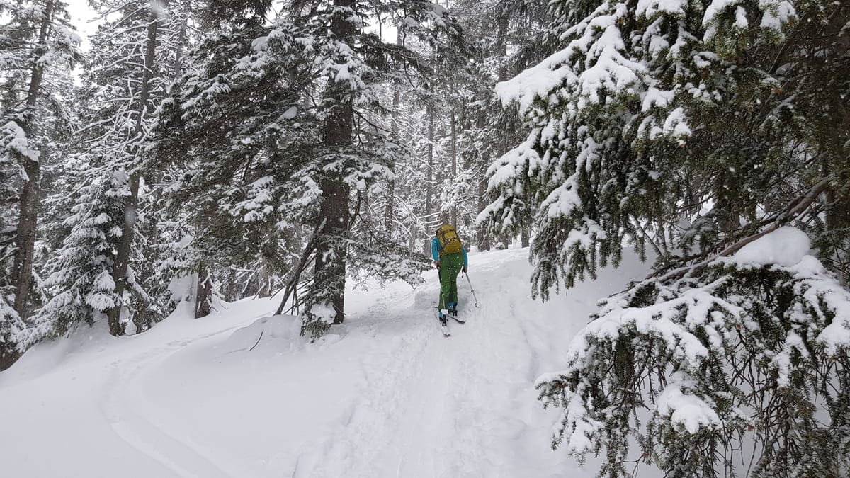 Abfahrt entlang der Aufstiegsspur, tolle herrliche breite Hänge erwarten dich, aber auch die Durchfahrt durch die zwei Waldstücke machen Spaß.