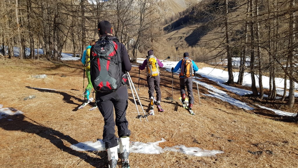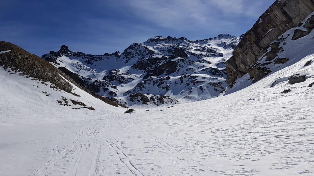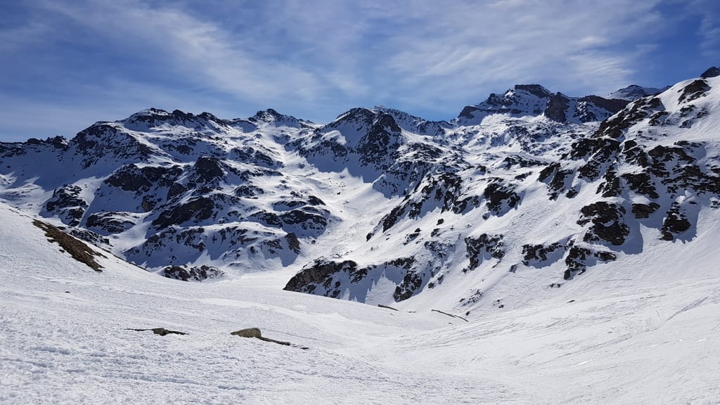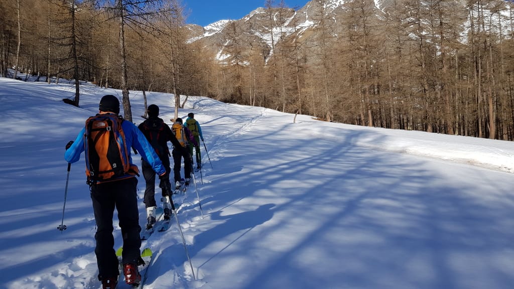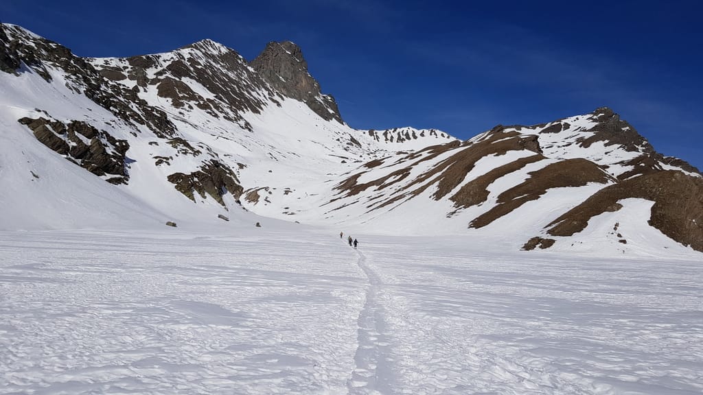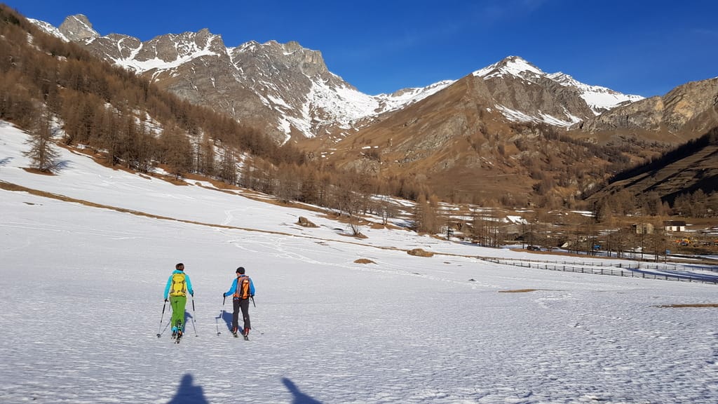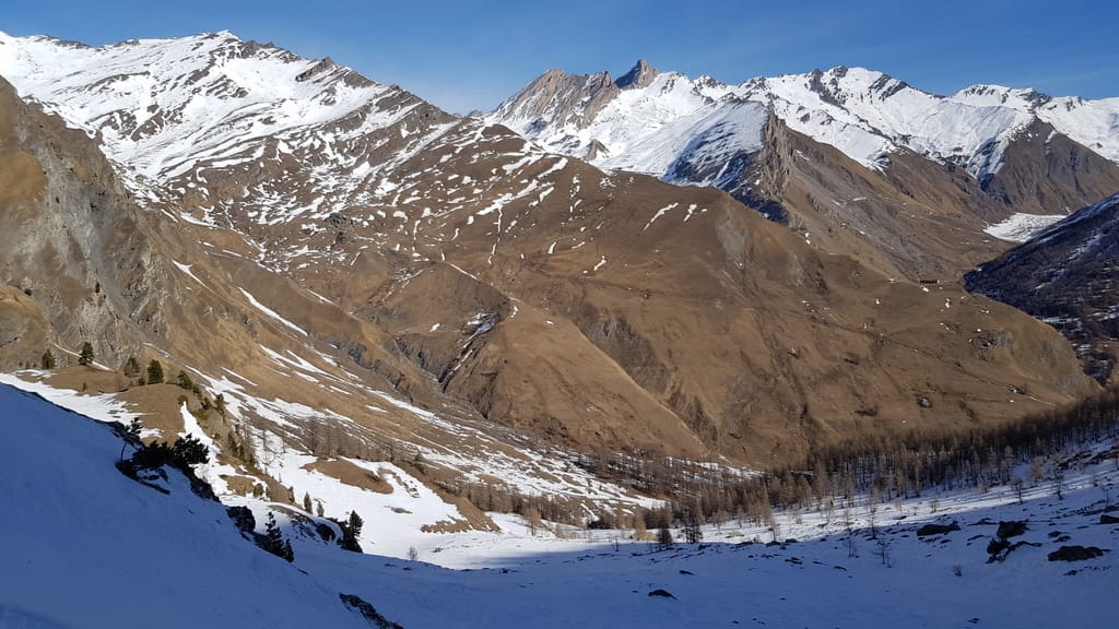 Wir starten direkt von unserer Unterkunft in Chianale, wobei wir aufgrund der Schneeverhältnisse unsere Skier/Snowboard etwas tragen mussten. Der Weg führte uns durch den kahlen Wald und links haltend den Berg hinauf. Auf einer Anhöhe würde man theoretisch den Lago Blu sehen, der aber zu dieser Jahreszeit zugefroren und mit Schnee bedeckt war (zum Glück 😉 ). Jetzt fährt man das Stück runter bis zur gegenüberliegenden Seite, als Snowboardfahrer muss man früher oder später umbauen, weil der Weg sich über die Strecke sehr zieht. Auf der anderen Seite geht es dann ziemlich direkt hoch vorbei an dem Lago della Niera bis hoch zum Gipfel Rocca Bianco. Wie man auf dem Trek sieht, haben wir es nicht ganz bis zum Gipfel geschafft.
