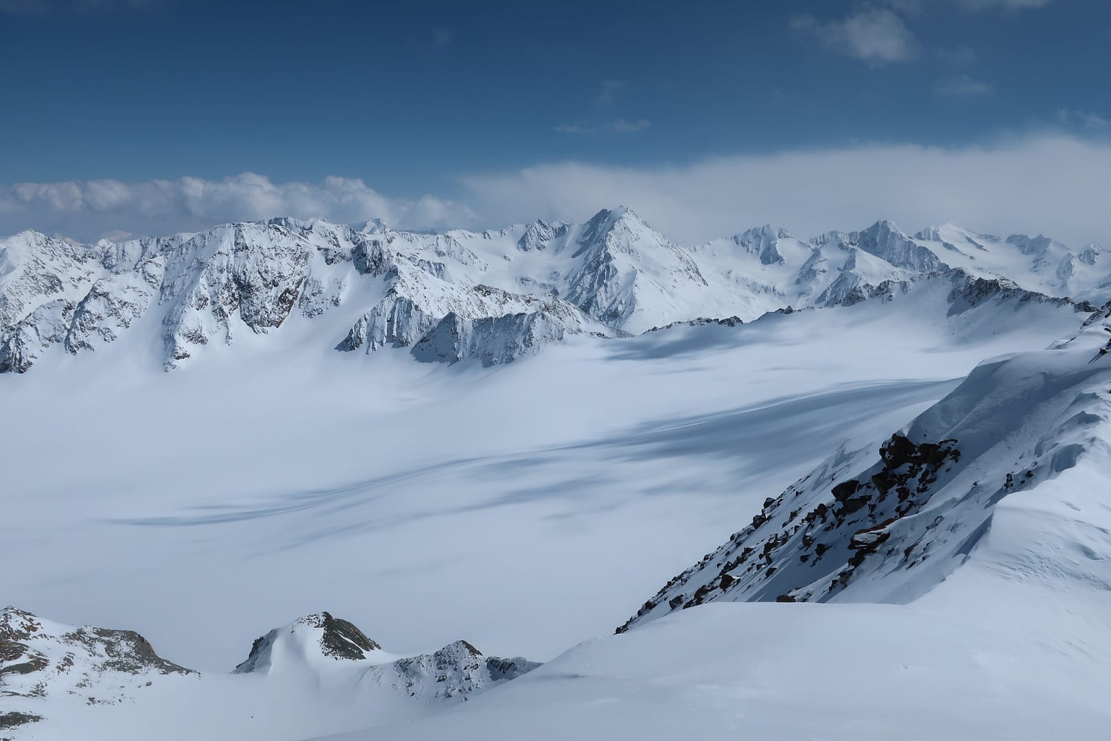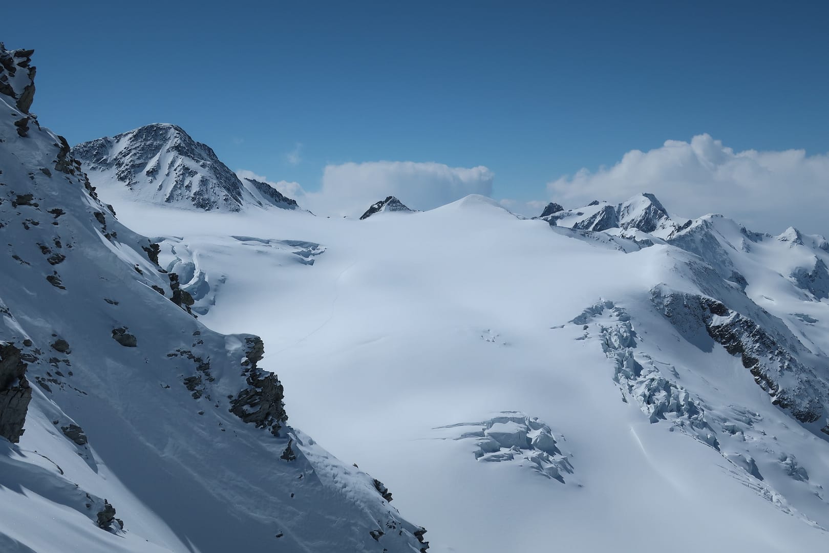 Im Bereich des Mittelbergferners gibt es einige Möglichkeiten, um den Anstieg auf die Hohen Wände (3432m) noch zusätzlich mit einem anderen Gipfelanstieg zu kombinieren.