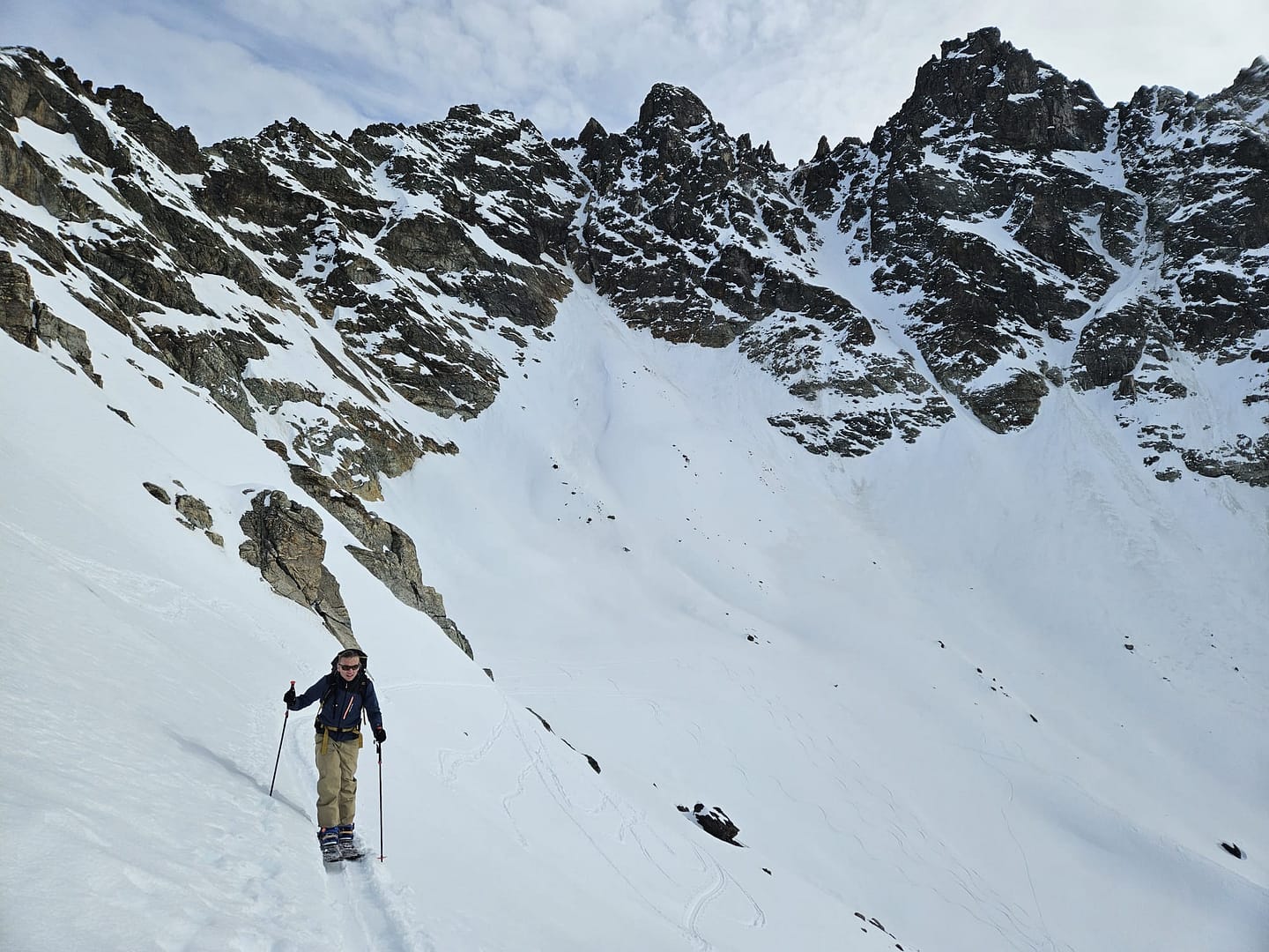 - Skitourenausrüstung: LVS, Sonde, Schaufel, Stöcke, Felle, evtl. Harscheisen