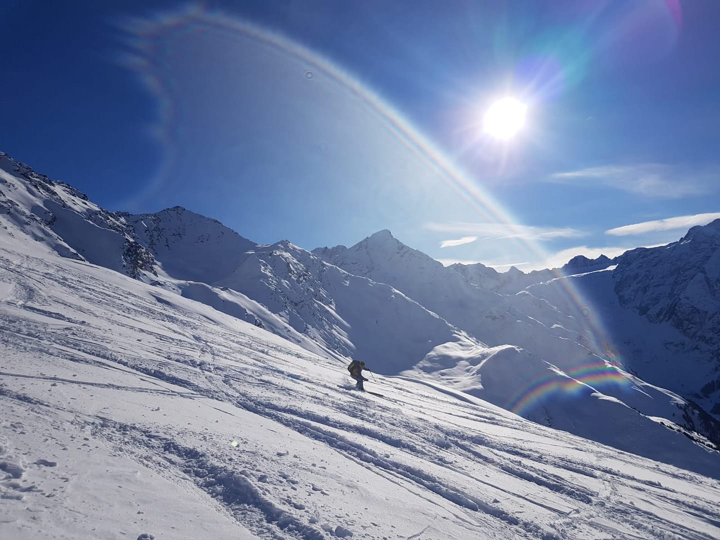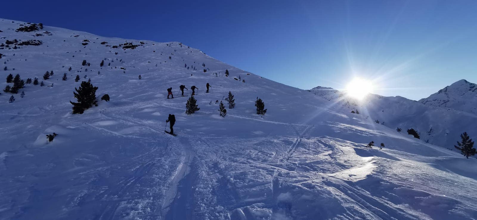 Motivierte Tourengeher können nordöstlich vom Roten Kogel auf den weiten Hängen abfahren und dann wieder westlich auf den Sömen 2796 m aufsteigen (ca. 350 hm Aufstieg). Abfahrt wie vom Roten Kogel entlang der Aufstiegsroute.