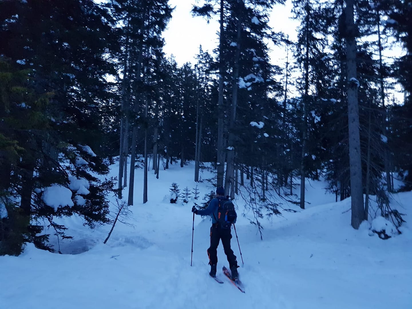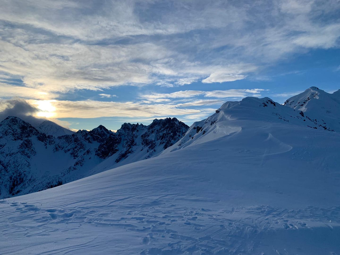 Vom Parkplatz folgen wir der Skitouren-Beschilderung und gehen entlang der Piste Richtung Hocheggalm rauf. Immer wieder gibt es Abschnitte, die man durch den Wald abkürzen kann. Ab dem Speichersee geht es weiter entlang der Piste zur Rosshütte und ab da das letzte doch recht steil hoch zum Joch. Oben angekommen genießen wir den Sonnenaufgang und den wunderschönen Ausblick.