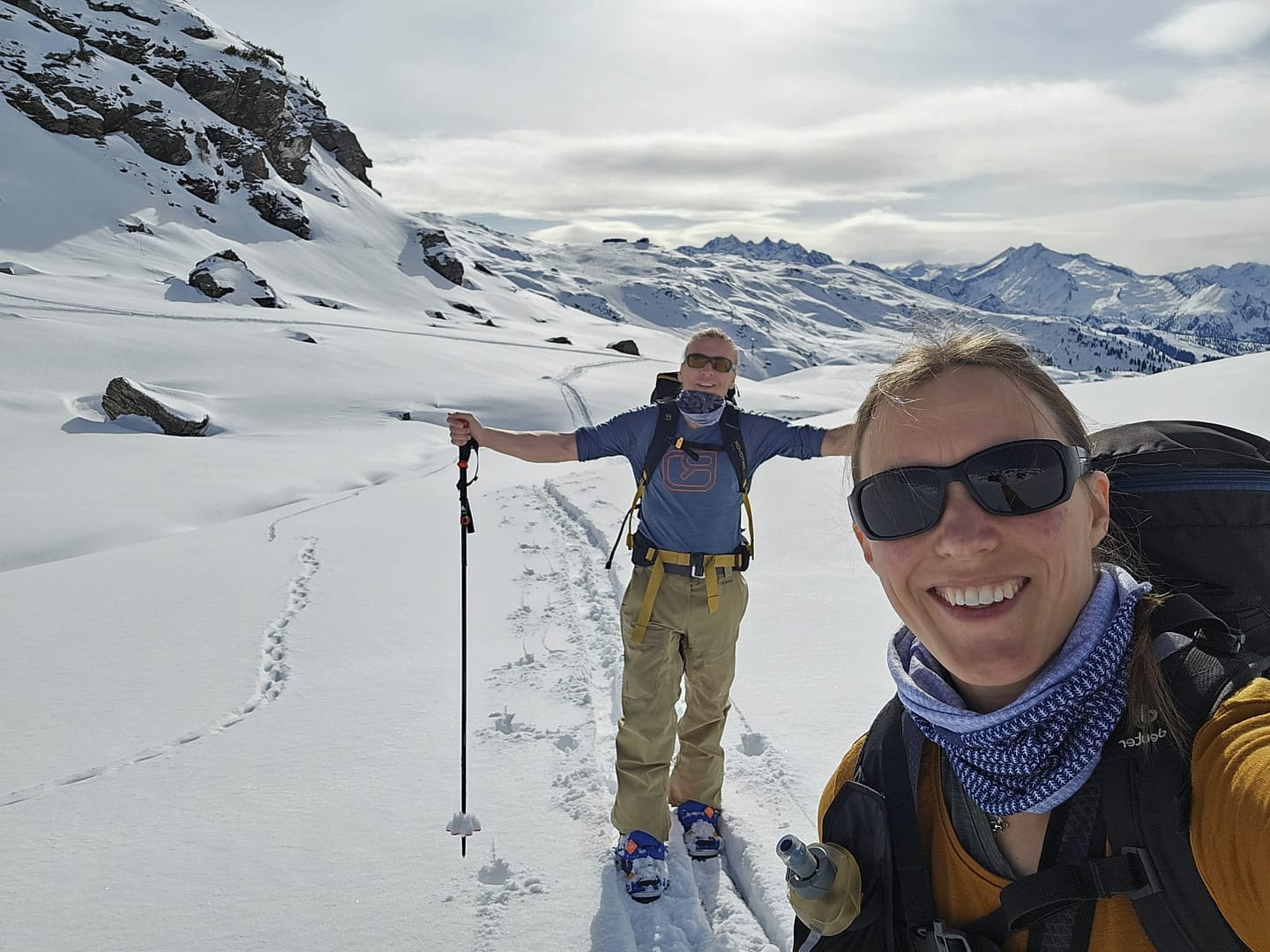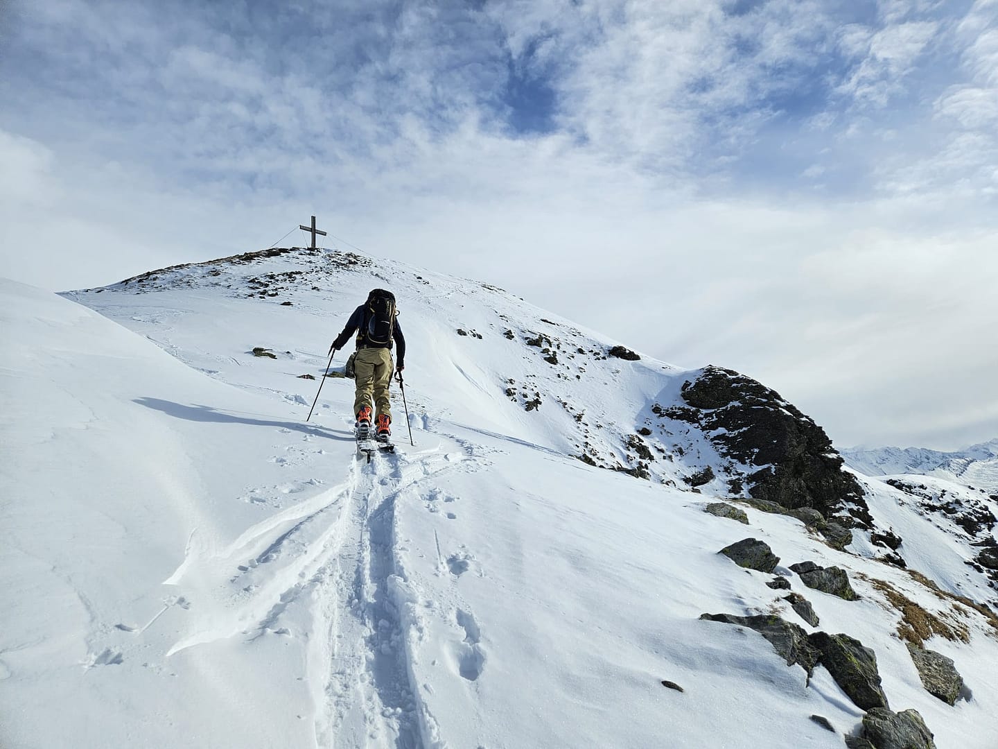 Da wir noch nicht genug hatten, hängten wir im Anschluss eine zweite kleine Skitour auf das Kreuzjoch dran – wobei man es auch als Abfahrtsvariante bezeichnen könnte. Eine schöne Ergänzung zu der vorigen Tour, bevor wir den Tag gemütlich ausklingen ließen.