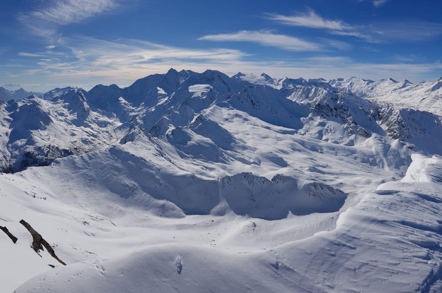 Pistentour von Untergurgl oder Obergurgl durch das Große Kar auf den Wurmkogel. Aufgrund der Höhenlage super als Vor- oder Nachsaisonstour möglich wenn kein Pistenbetrieb ist.