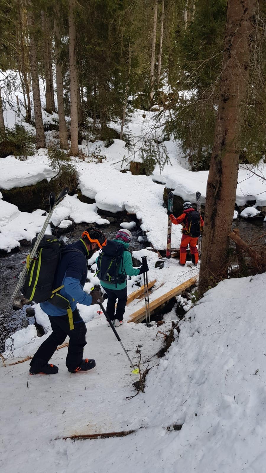 - LVS, Sonde, Schaufel, Handy, evtl. Harscheisen
