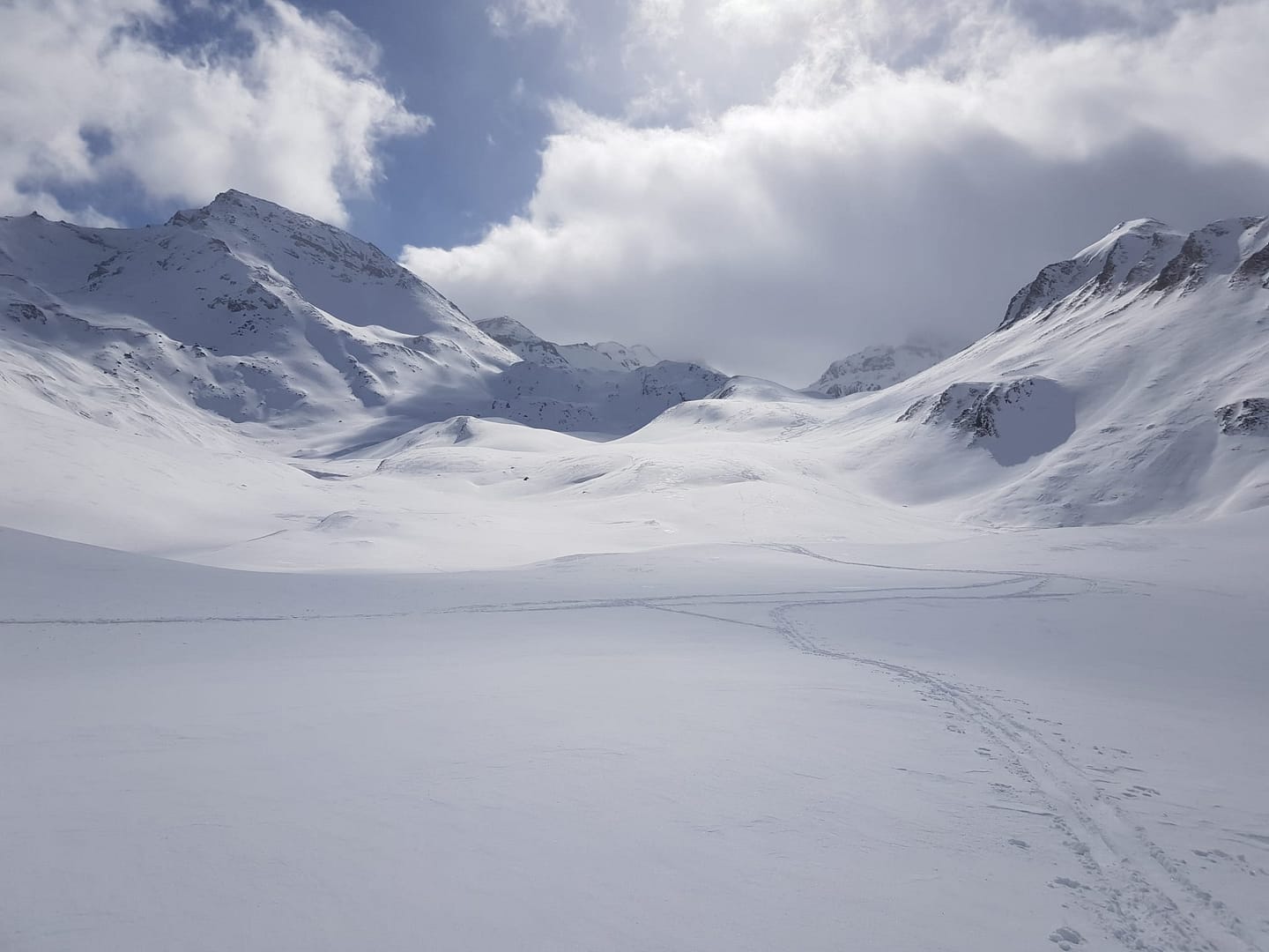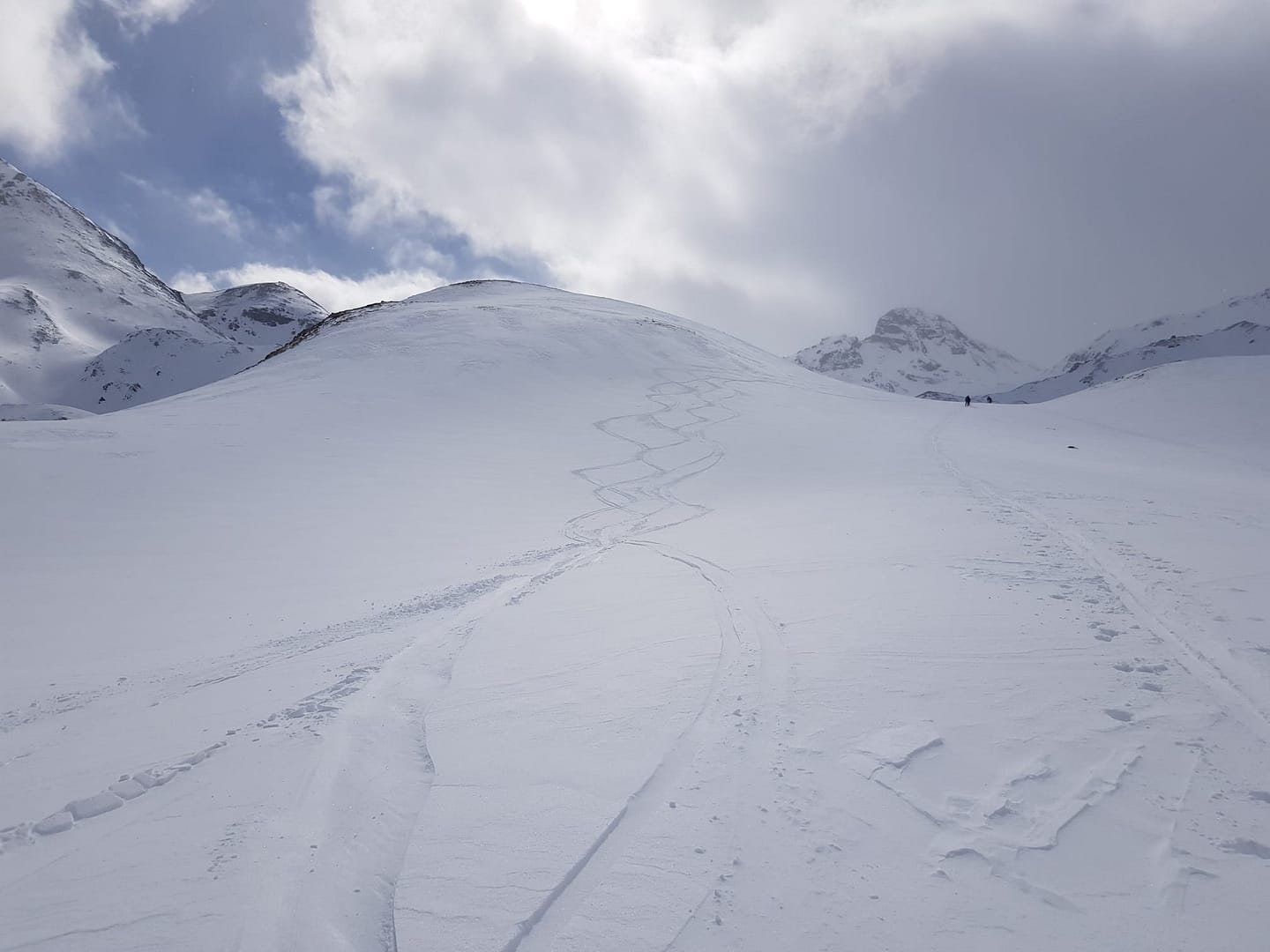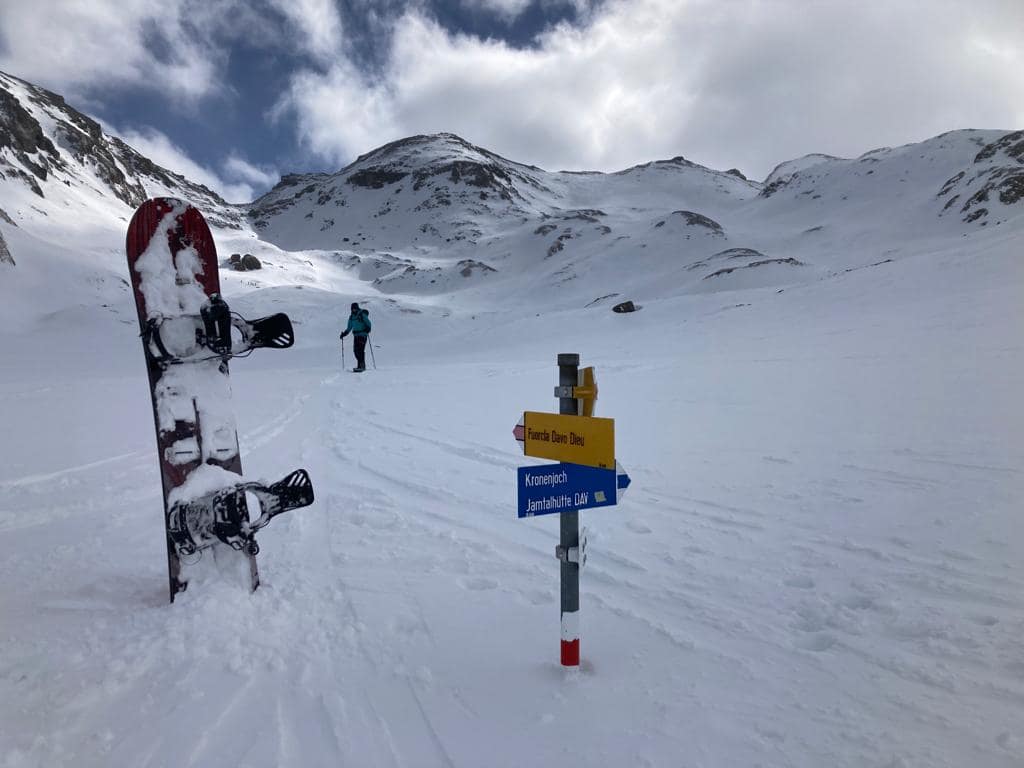 Eigentlich wollten wir von hier über die Fuorcla Davo Dieu abfahren und von dort auf den Piz Tasna aufsteigen. Aber das wechselhafte Wetter und der verblasene Schnee machten uns einen Strich durch die Rechnung.