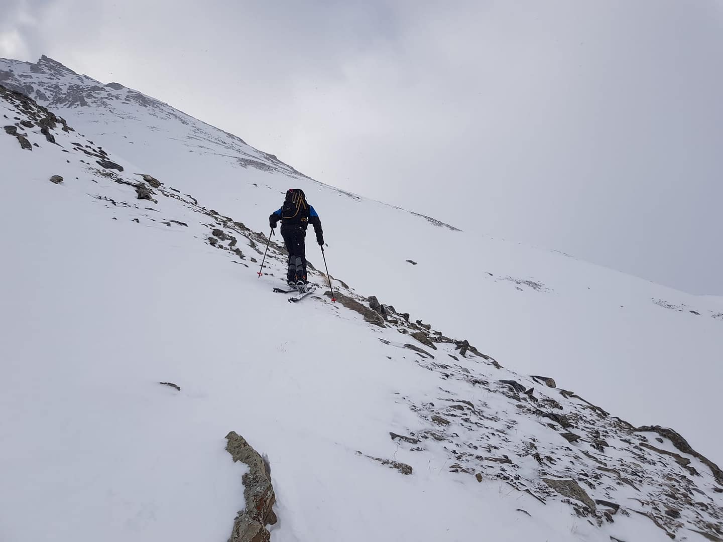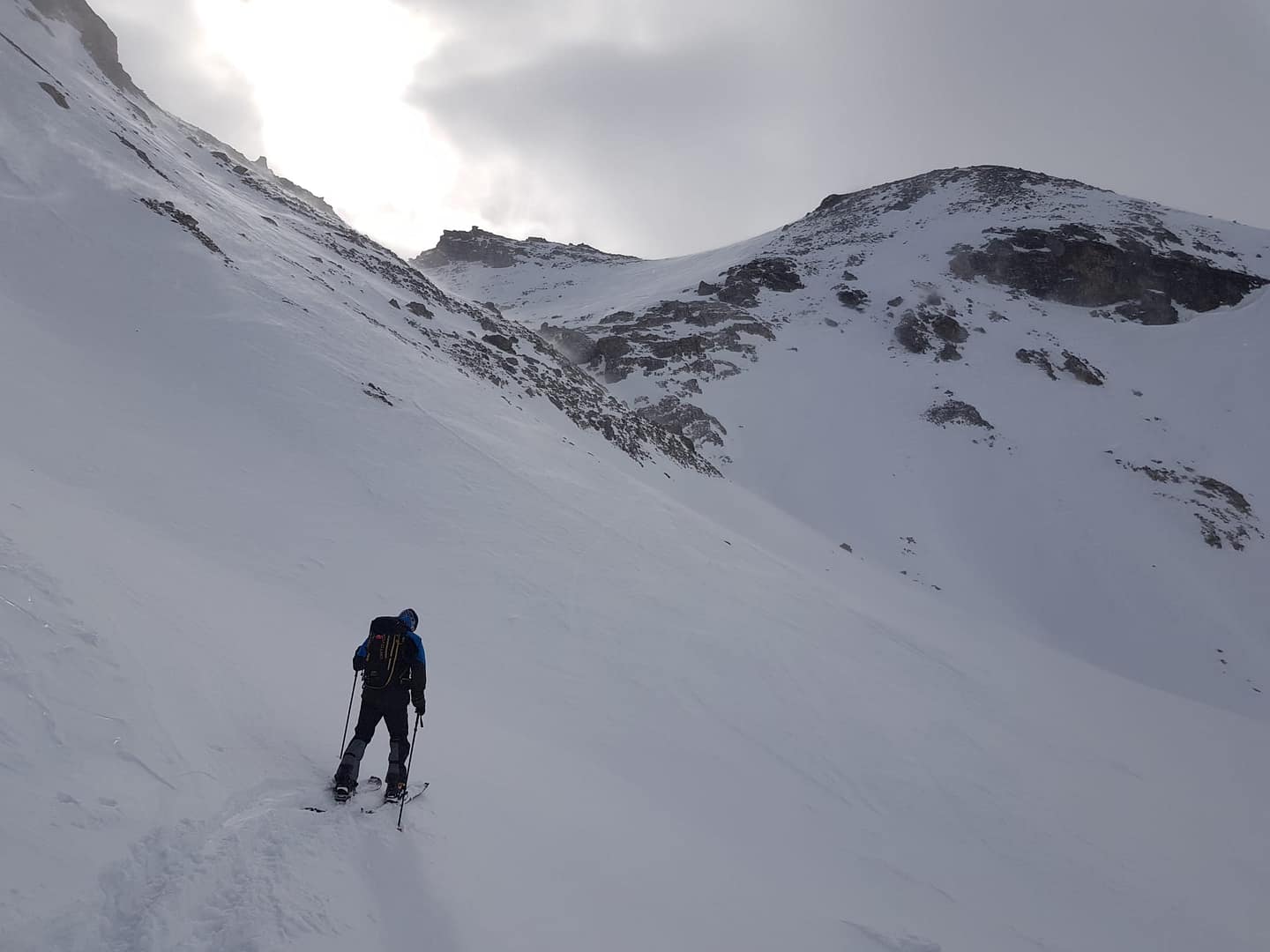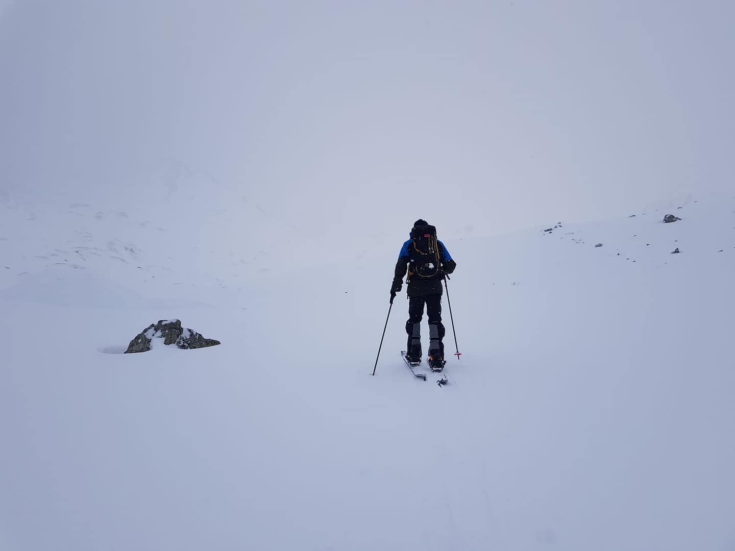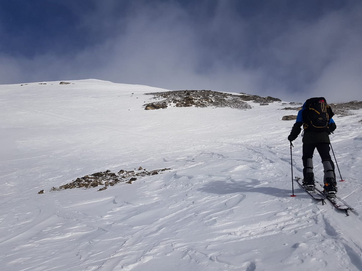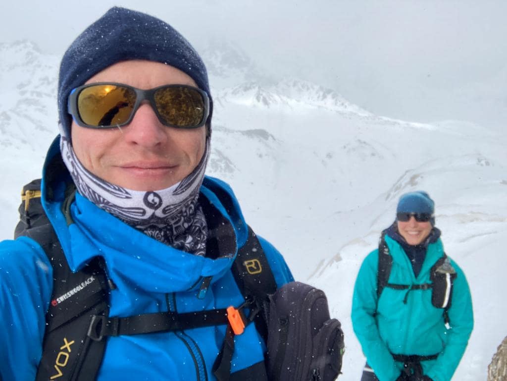 Die Schneebedingungen dieses Jahr lassen leider etwas zu wünschen übrig, aber auch das Wetter hat bei uns nicht so richtig mitgespielt. Nach dem Frühstück um 8 Uhr morgens ging es voller Freude auf den Tag los, jedoch war die Sicht sehr bescheiden, teilweise wusste man nicht, ob es hoch oder gleich ein Stück runter geht. Aus diesem Grund möchte ich auch anmerken, dass der Track evtl. nicht die best-gewählteste Variante ist, es war trotzdem abenteuerlich fein. Immer nach Süden gehend, wir sind nicht dem Sommerwanderweg gefolgt, geht man eigentlich direkt auf den Gipfel Piz Davo Lais zu.