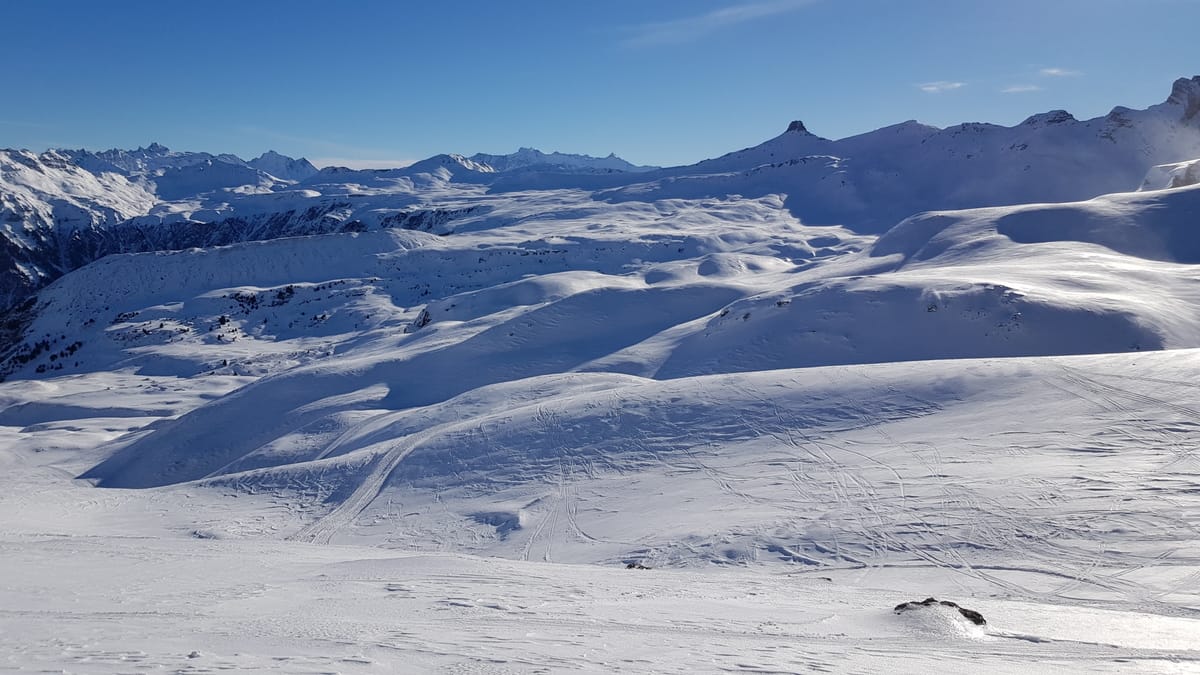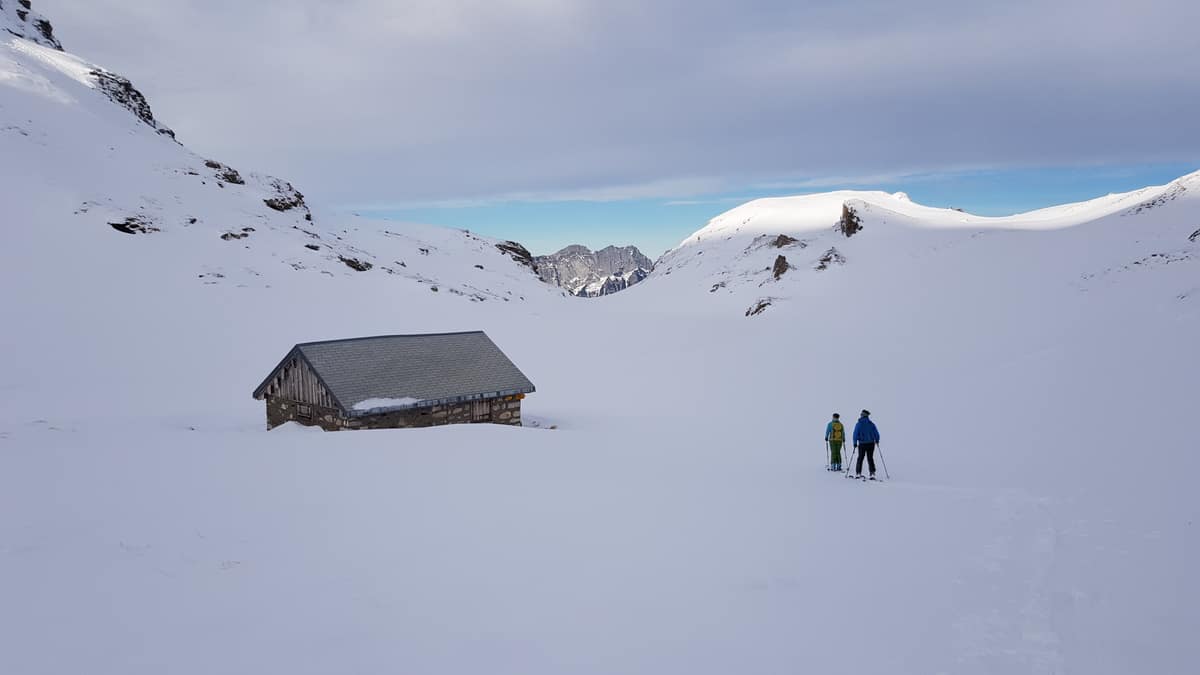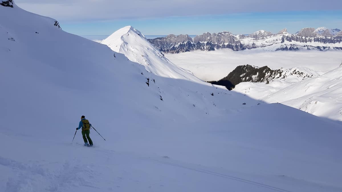 Die erste Abfahrt war der oberhammer, mit Blick auf das Skigebiet sind wir links runter in die Mulde. Hoher Pulverschnee bis zum umfallen, surfen als würde man auf Wolken schweben. Wahnsinn! Für einige wenige Höhenmeter mussten wir dann wieder auffellen bis zur nächsten Abfahrt. Wir fuhren zurück ins Skigebiet und bettelten uns eine Lift Fahrt zurück zur Bergstation Maschgenkamm. Ab hier ging es dann zurück ins Tal.