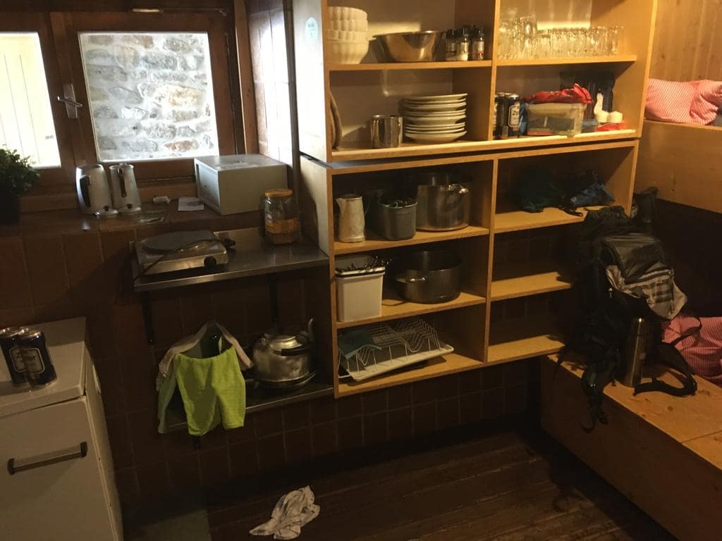 Der Winterraum ist recht groß, gemütlich und sehr gut ausgestattet. Da es Strom gibt , muss man hier nicht mit Holz einheizen, sondern man kann ganz bequem die Elektroheizung anschalten. Auch eine Kochplatte wird damit betrieben. Sollte der Strom mal ausfallen, gibt es auch ein Holzlager. Wir waren nur zu zweit unterwegs, aber es gesellten sich weitere Grüppchen zu uns in den Winterraum und wir hatten eine schöne Gaudi und zwei ganz tolle Abende.