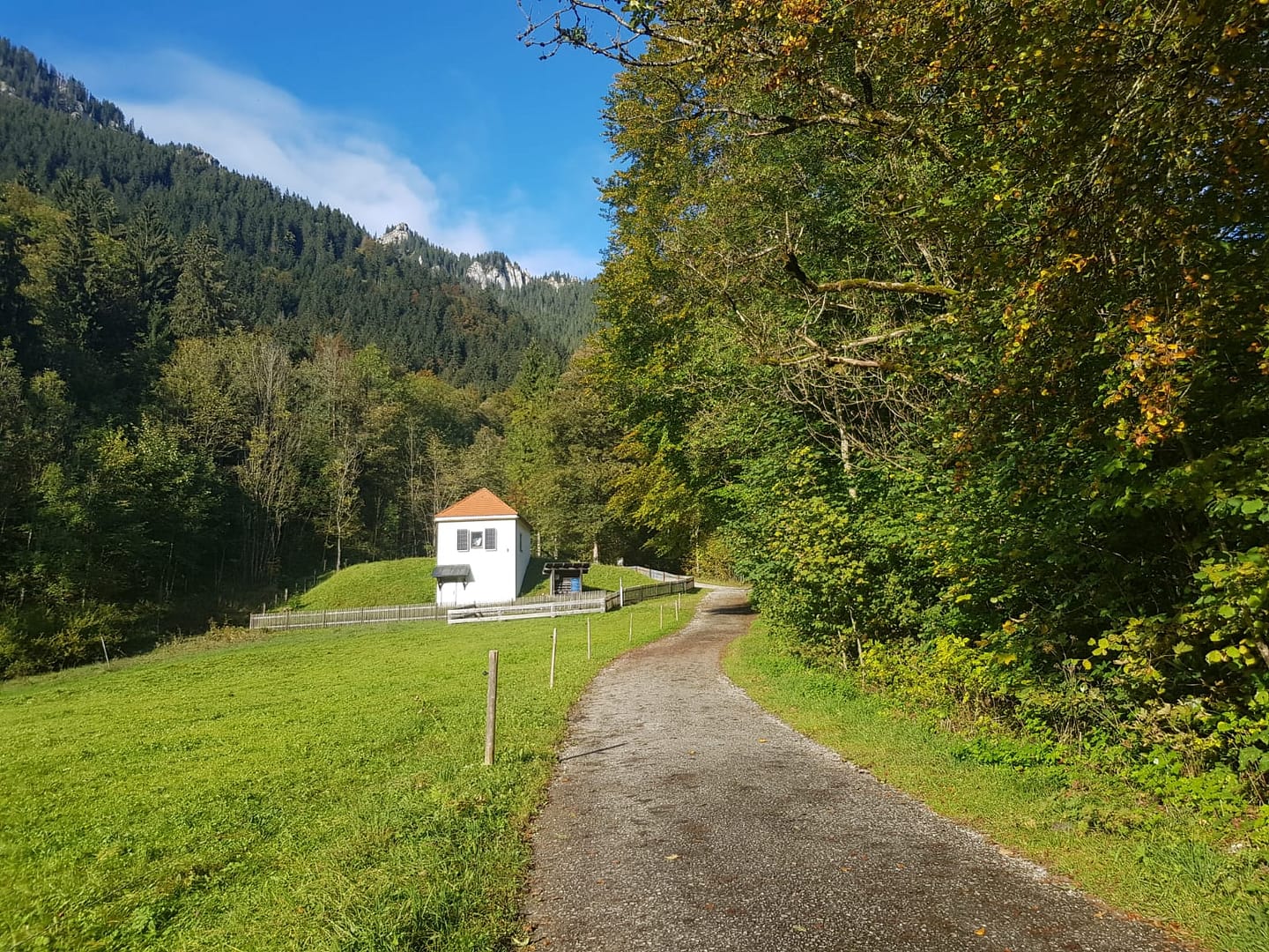 In Ettal habe ich auf dem Parkplatz P5 geparkt (P4 wäre die Alternative) und dort die Wanderung gestartet. Zuerst folgt man den Weg entlang des Waldes, vorbei an der Kneipanlage, wo man im Sommer nach der Tour die Füße kühlen kann. Jetzt als Feierabendtour war mir das zu kalt.