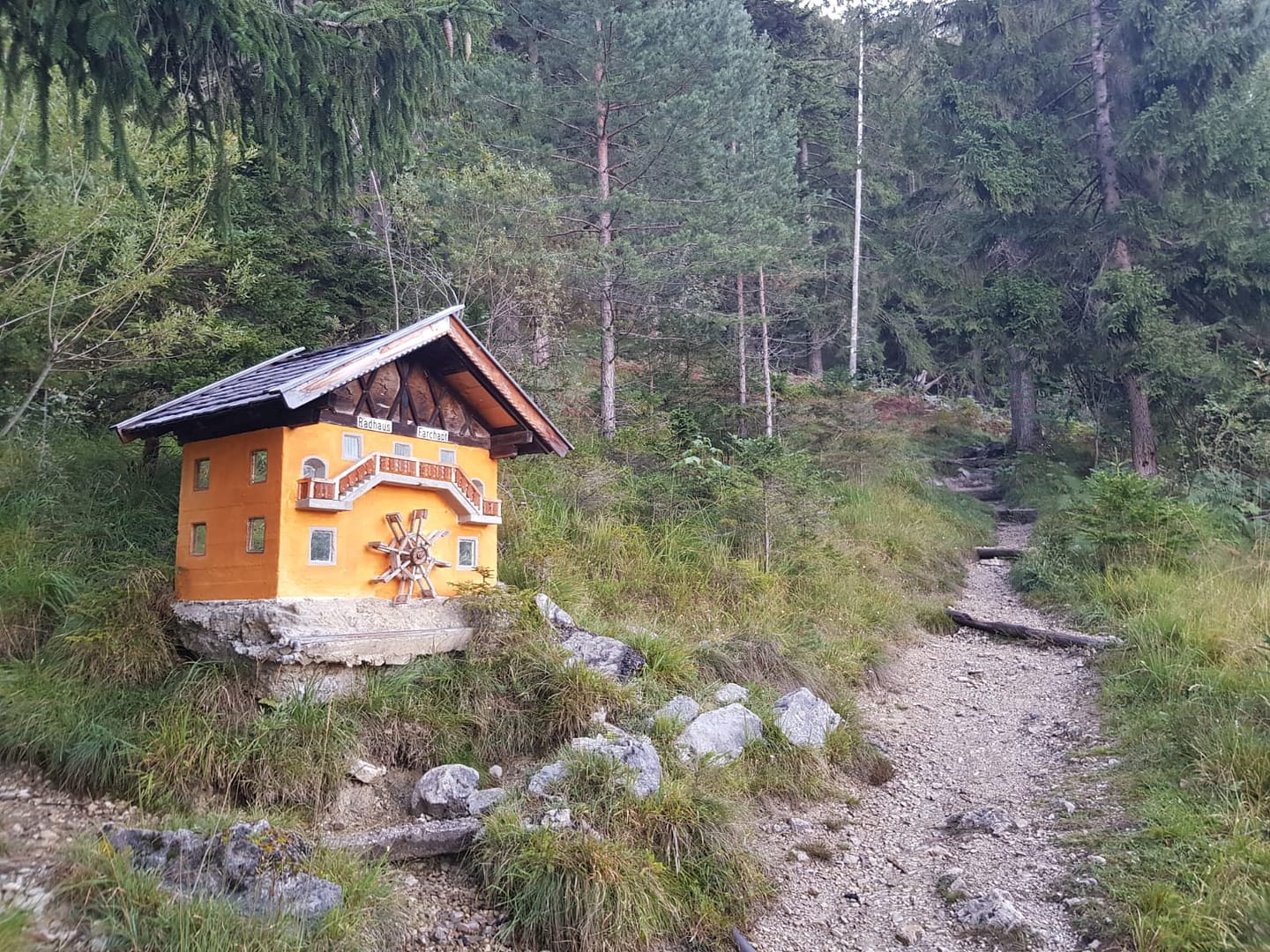 Vom Wanderparkplatz folgen wir den Schildern zum Hohen Fricken. Der Weg führt nicht über die Kuhflucht Wasserfälle (Abzweig 1. Bild), sondern rechts haltend weiter hoch. Ein paar steile und schmale Serpentinen führen vorbei an dem markanten Radhaus (2. Bild) , welches den Weg säumt. Der Pfad führt weiter bis zu einer sehr breiten, steilen Fahrstraße. Sobald es flacher wird queren wir wenig später ein Weiderost und finden ein paar Meter weiter einen ca. 3m hohen Stein, den sogenannten „Predigtstuhl“, wo der Steig nach links zum Gipfel führt (3. Bild). Im späten September wurden wir bereits mit viel Schnee beschwert, der die Wanderung zu dieser Jahreszeit zu etwas besonderem macht. Wir schlagen den direkten Weg zum Gipfel ein, wo uns ein toller 360° Ausblick erwartet.