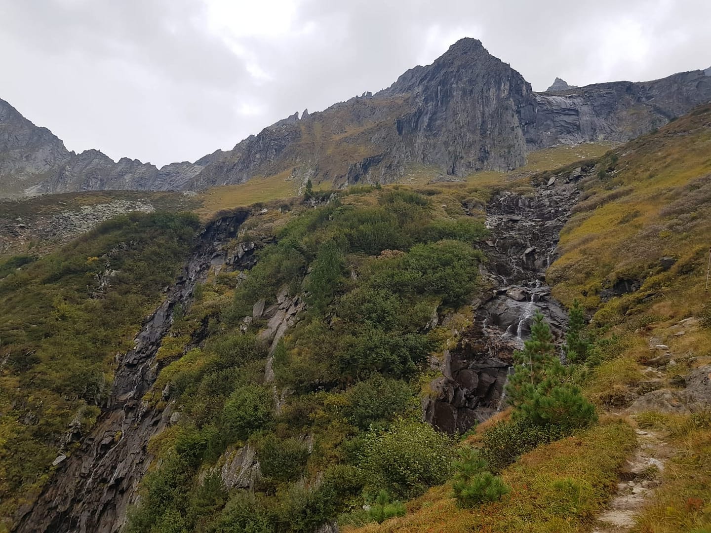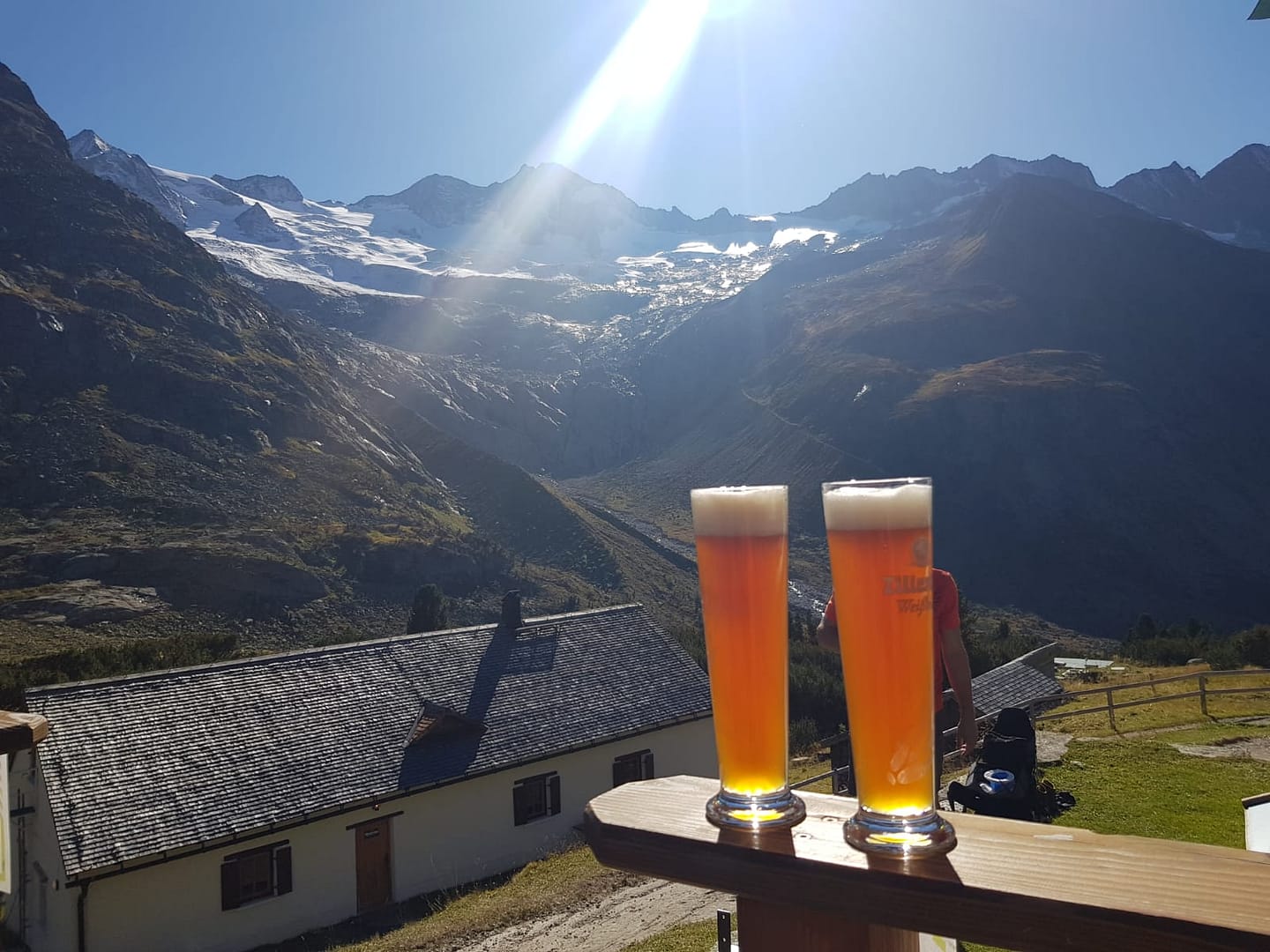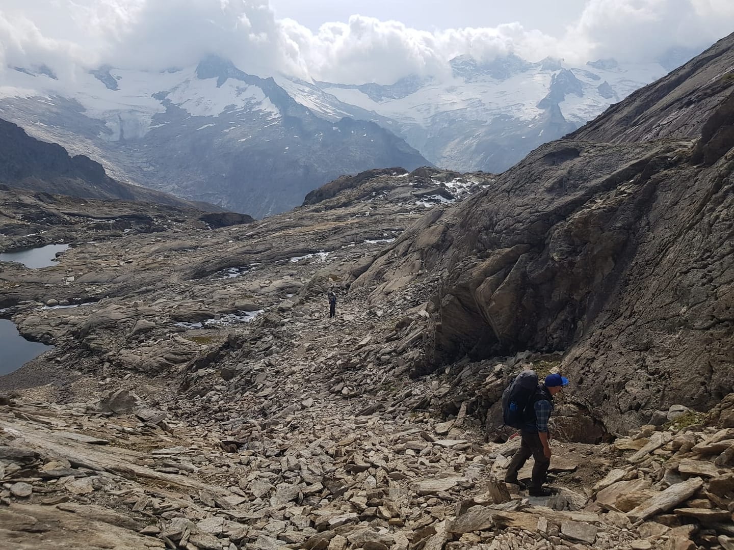 Wie erwartet lag auf der anderen Seite der Scharte Schnee, aber leider doch mehr als erwartet. Es waren noch ältere Trittspuren zu erkennen, aber wir sollten die ersten sein, die an diesem Tage diese Route begeht. Über felsiges, beschneites und somit rutschiges Gelände haben wir den Abstieg angetreten. Unbeschadet haben wir den Hang hinter uns gebracht und folgen weiter dem markierten Weg durch Geröllfelder und entlang des Floitenbaches durch Wiesen bis zur Maxhütte. Leider waren wir so spät unterwegs, dass die Hütte bereits geschlossen hatte, so dass es direkt weiter hinab über einen steinigen Pfad durch den Wald ins Tal zurück ging.