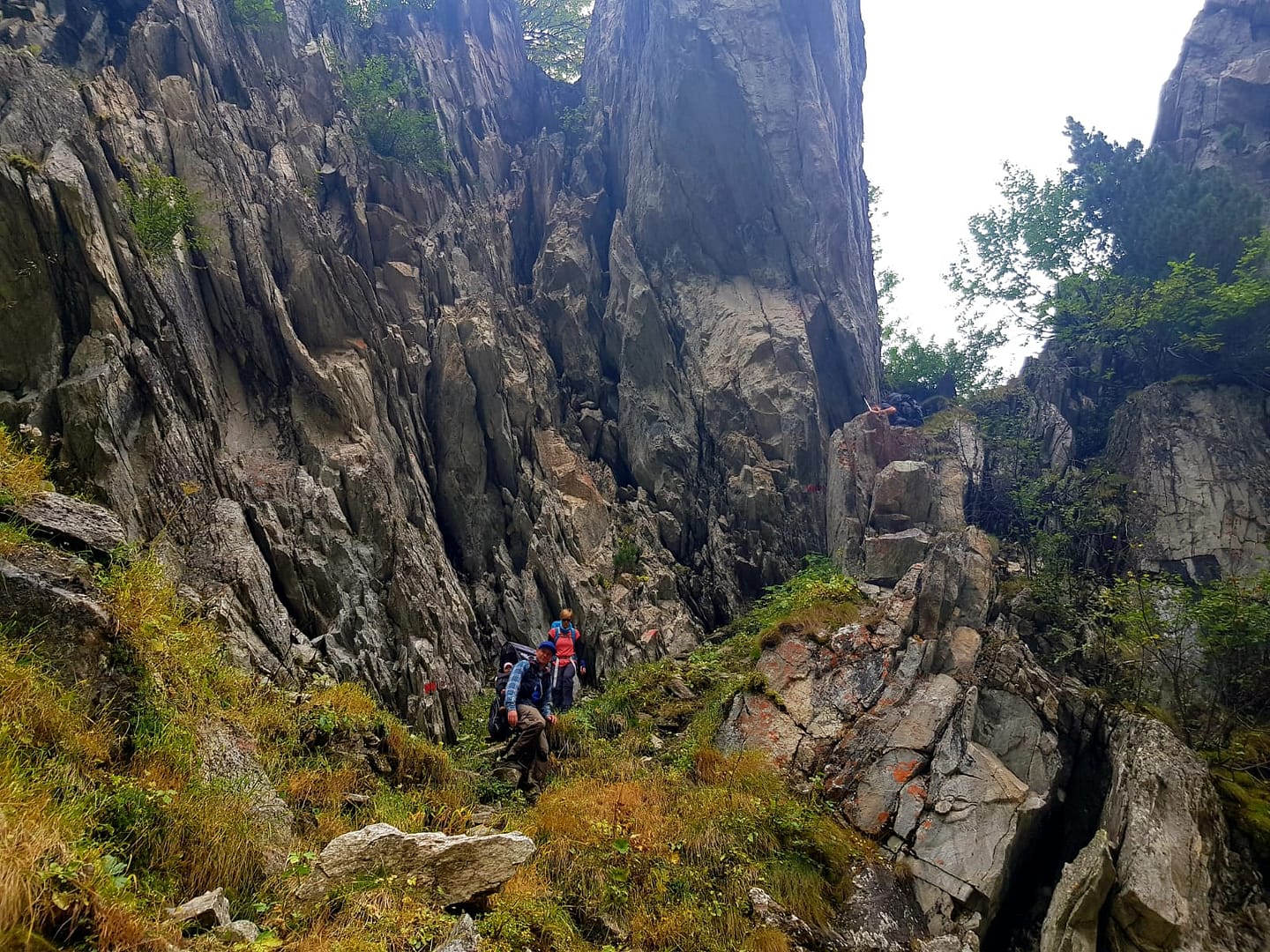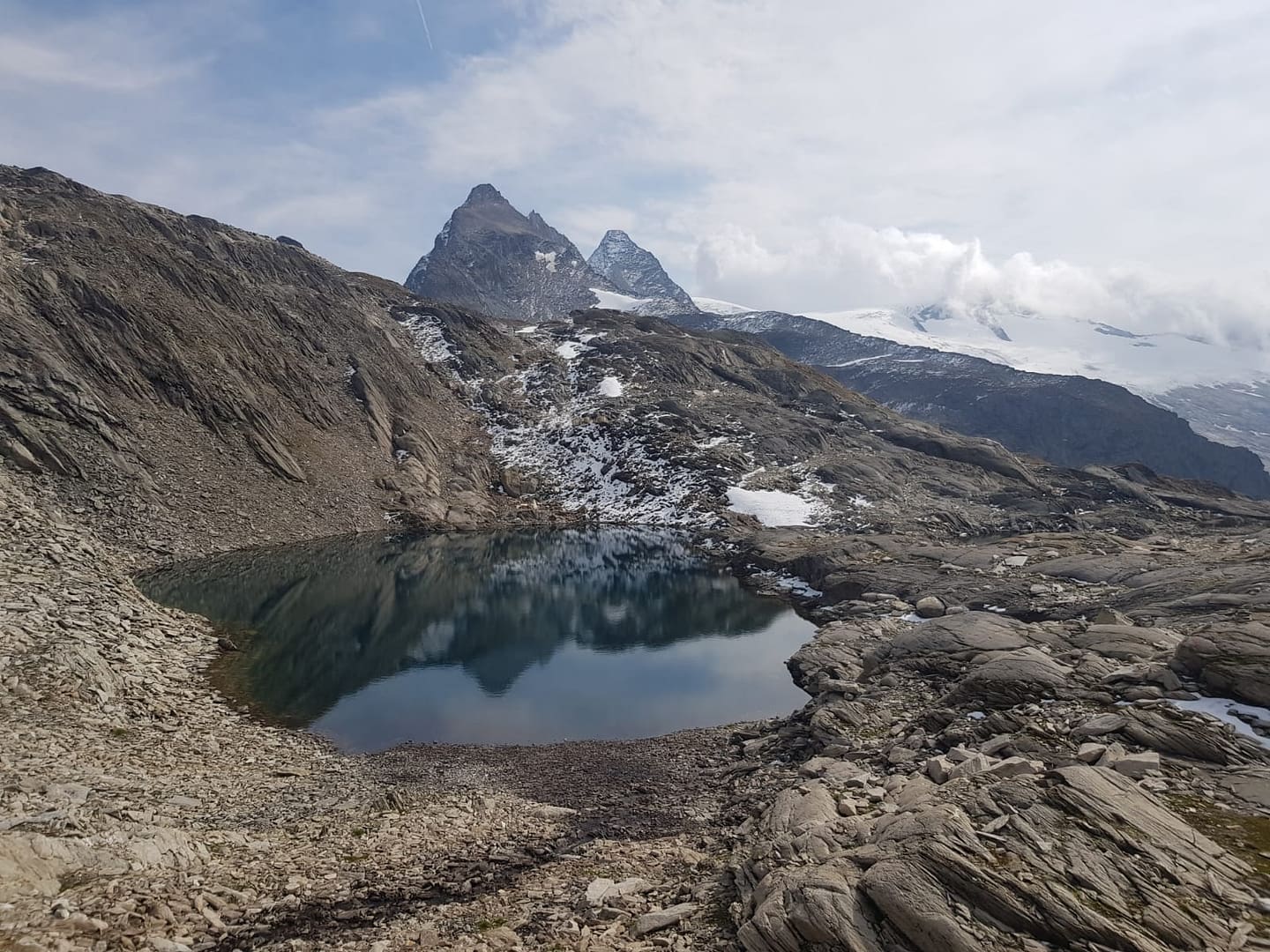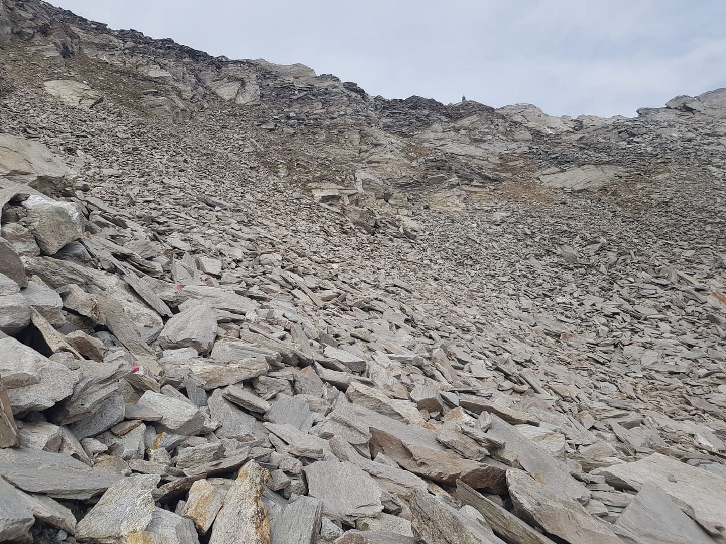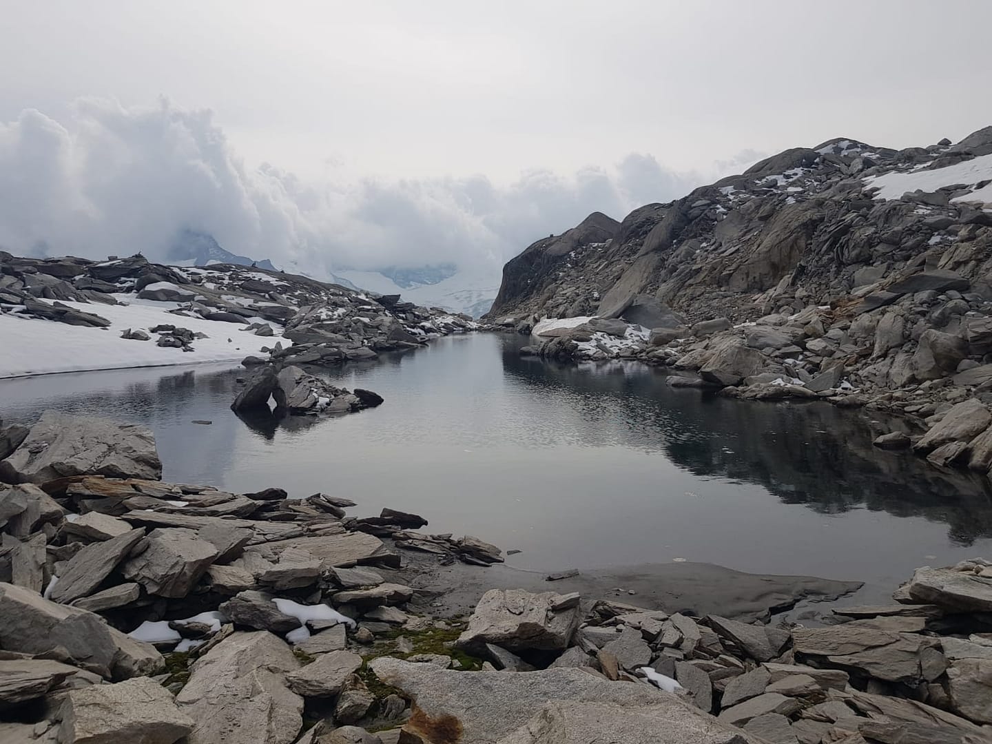 Vom See folgen wir dem steileren Weg 2472 bis zu einer weiteren Gabelung, die uns links zur Melkerscharte führt. In einem etwas flacheren Gelände gelangen wir zum Eissee, selbst im Sommer gibt es hier noch Schneereste, mit welchem wir uns eine kleine „Schneeballschlacht“ geliefert hatten. Nach dem Eissee wird der Weg wieder steiler und führt über Blockgelände zur Melkerscharte. Hier oben hat man einen fantastischen Ausblick auf die Gipfel um einen rum sowie auf das Gunggl-Tal.