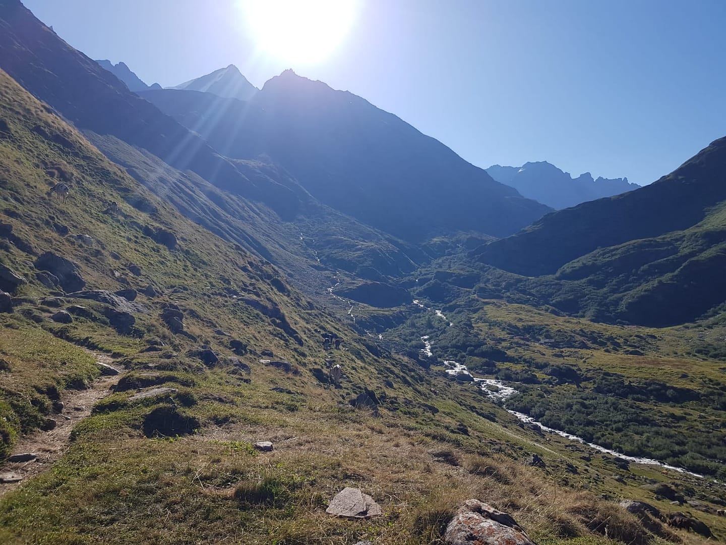 Es führen mehrere Wege zur Hütte, wir sind taleinwärts auf der linken Flussseite geblieben, man kann aber auch auf der rechten Seite wandern. Weiter hinten, kurz vor einer Brücke (2.151 m) zweigt der Weg zur Cabane du Vélan rechts ab, hier steigt man links hoch bis Chalet d’Amont (2.195 m). Die Landschaft ist einfach nur ein Traum!