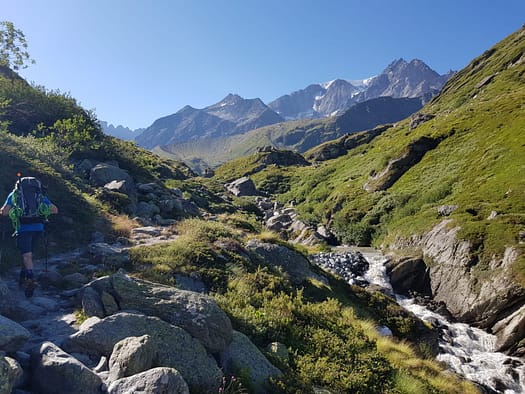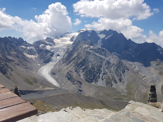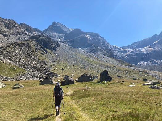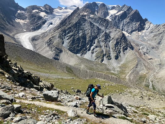Herrliche Wanderung in hochalpiner Landschaft zur einfachen, rustikalen, aber heimelige Hütte Cabane de Valsorey (3.037 m). Von der Hütte hat man einen grandiosen Panoramablick auf den Grand Combin (4.184 m) und den Combin du Meitin (3.622 m), sowie Richtung Mont Blanc 4.807 m.