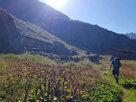 Es führen mehrere Wege zur Hütte, wir sind taleinwärts auf der linken Flussseite geblieben, man kann aber auch auf der rechten Seite wandern. Weiter hinten, kurz vor einer Brücke (2.151 m) zweigt der Weg zur Cabane du Vélan rechts ab, hier steigt man links hoch bis Chalet d’Amont (2.195 m). Die Landschaft ist einfach nur ein Traum!