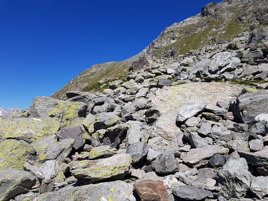 Vom Parkplatz geht es ein paar Höhenmeter auf der Fahrstraße bis zu einer Abzweigung rauf, an welcher die Hütte auf einem Wegweiser angeschrieben ist. Diesen Wegweiser folgen wir, orthographisch nach rechts, recht flach bis Cordonne (1.850 m). Hier zweigt der Weg wieder ab, links haltend geht es langsam über einen schmalen Pfad bergauf.