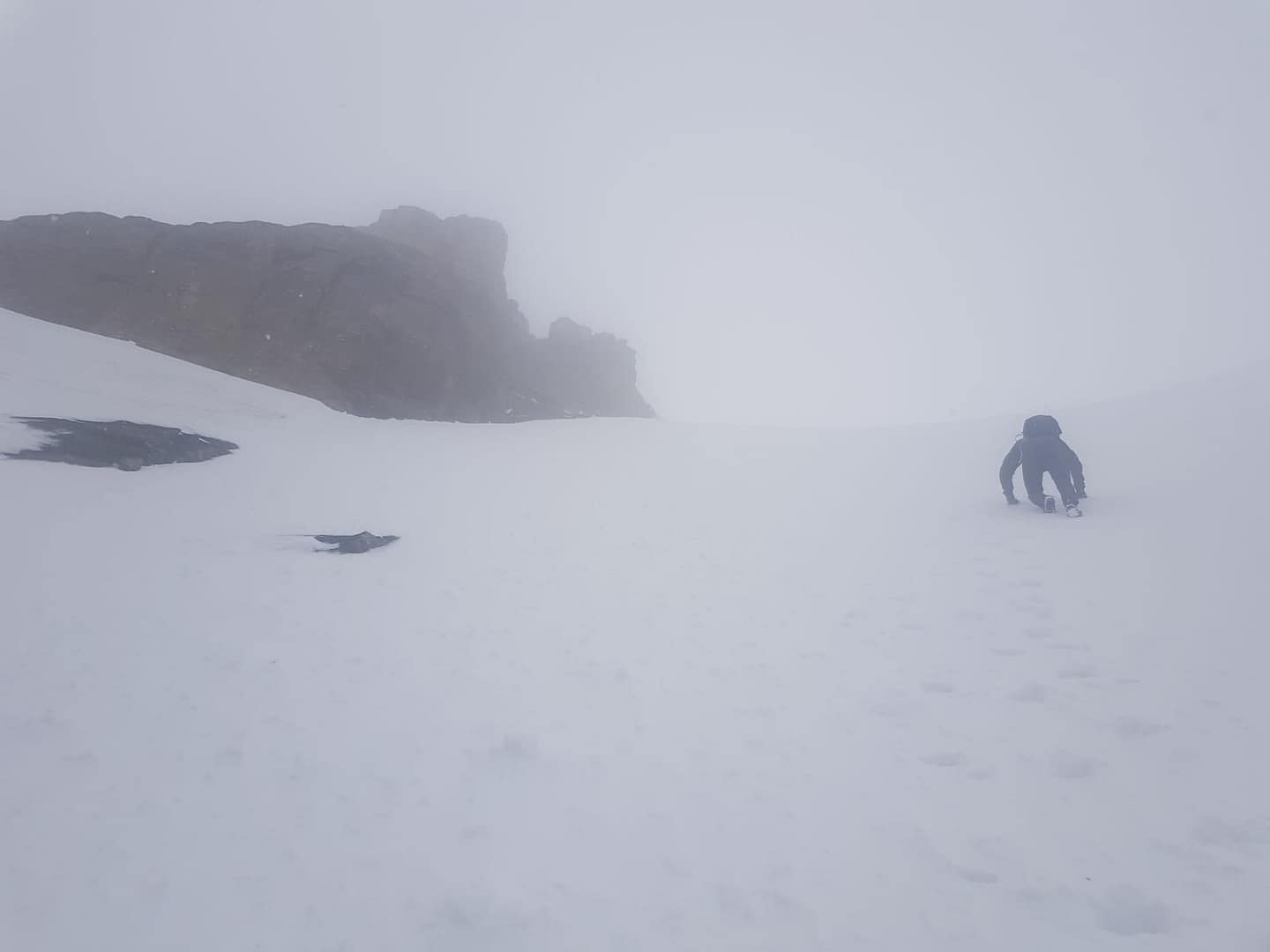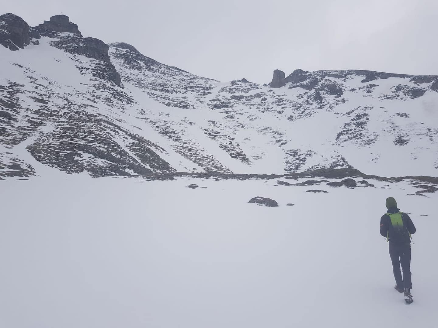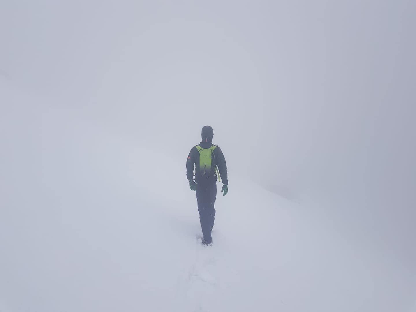 Die letzten Meter zum Gipfelkreuz muss man sich im exponierten Fels im 2. Grad erklettern, bei uns war es eine etwas rutschige Angelegenheit aufgrund des Schnees, aber schlussendlich doch machbar. Der Abstieg wurde dann noch interessant, da wir aufgrund des Wetters einfach nichts gesehen hatten.