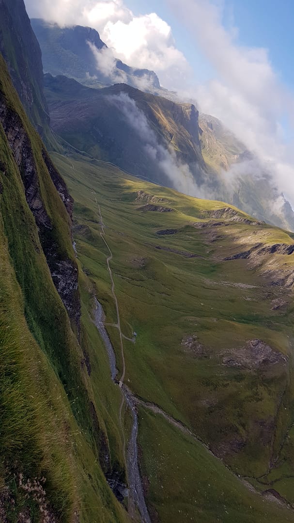 Heute ist das Wetter leider nicht so schön wie vorhergesagt. Den ersten Teil vom Weg „kämpfen“ wir uns durch den Nebel, aber mal ehrlich ich finde die Bilder trotzdem großartig. Durch den Nebel entsteht eine ganz neue andere Stimmung und es ist noch alles sehr ruhig in den Bergen.
