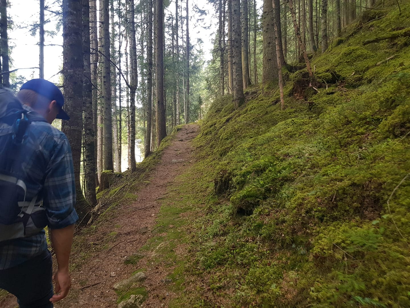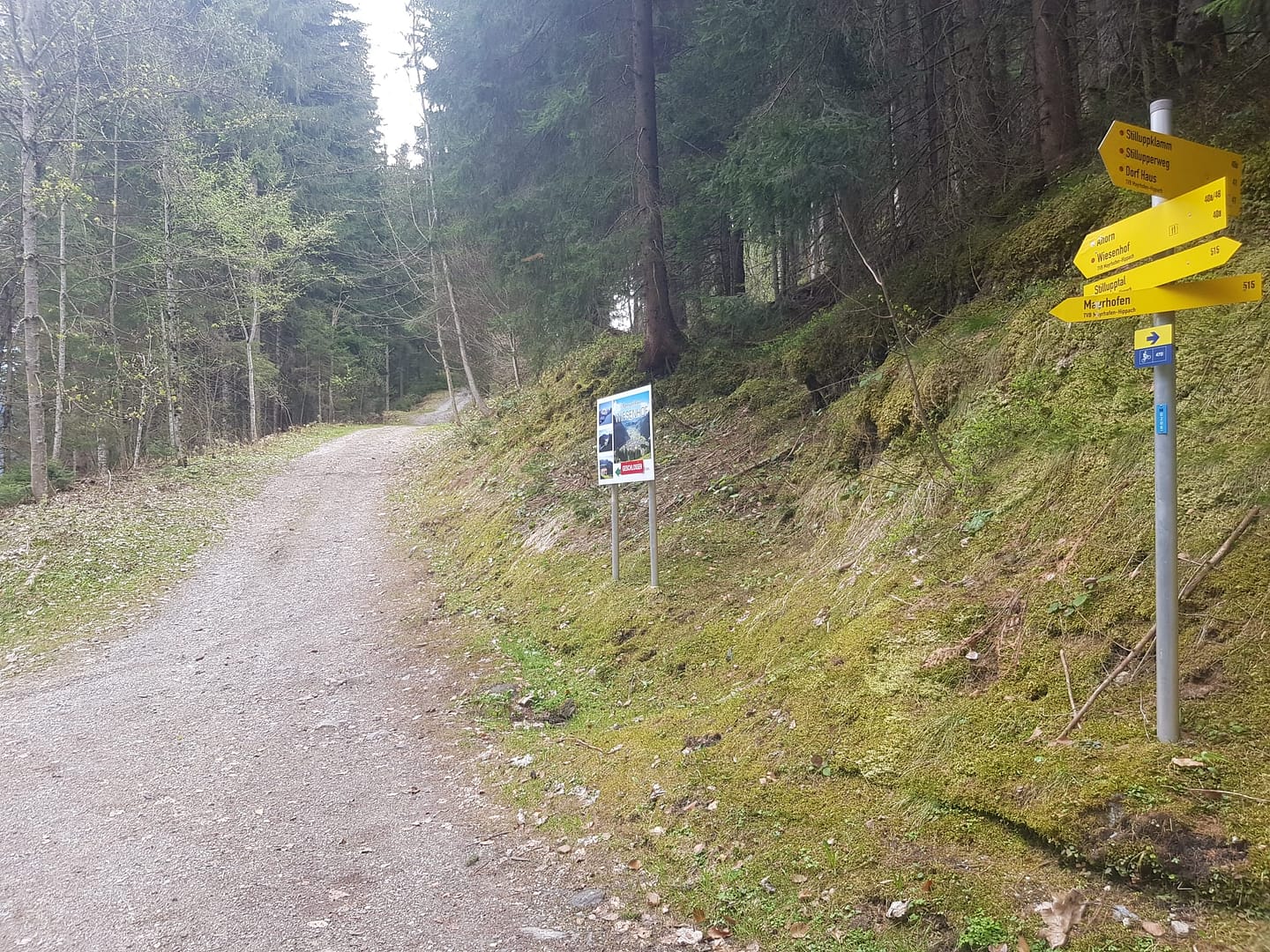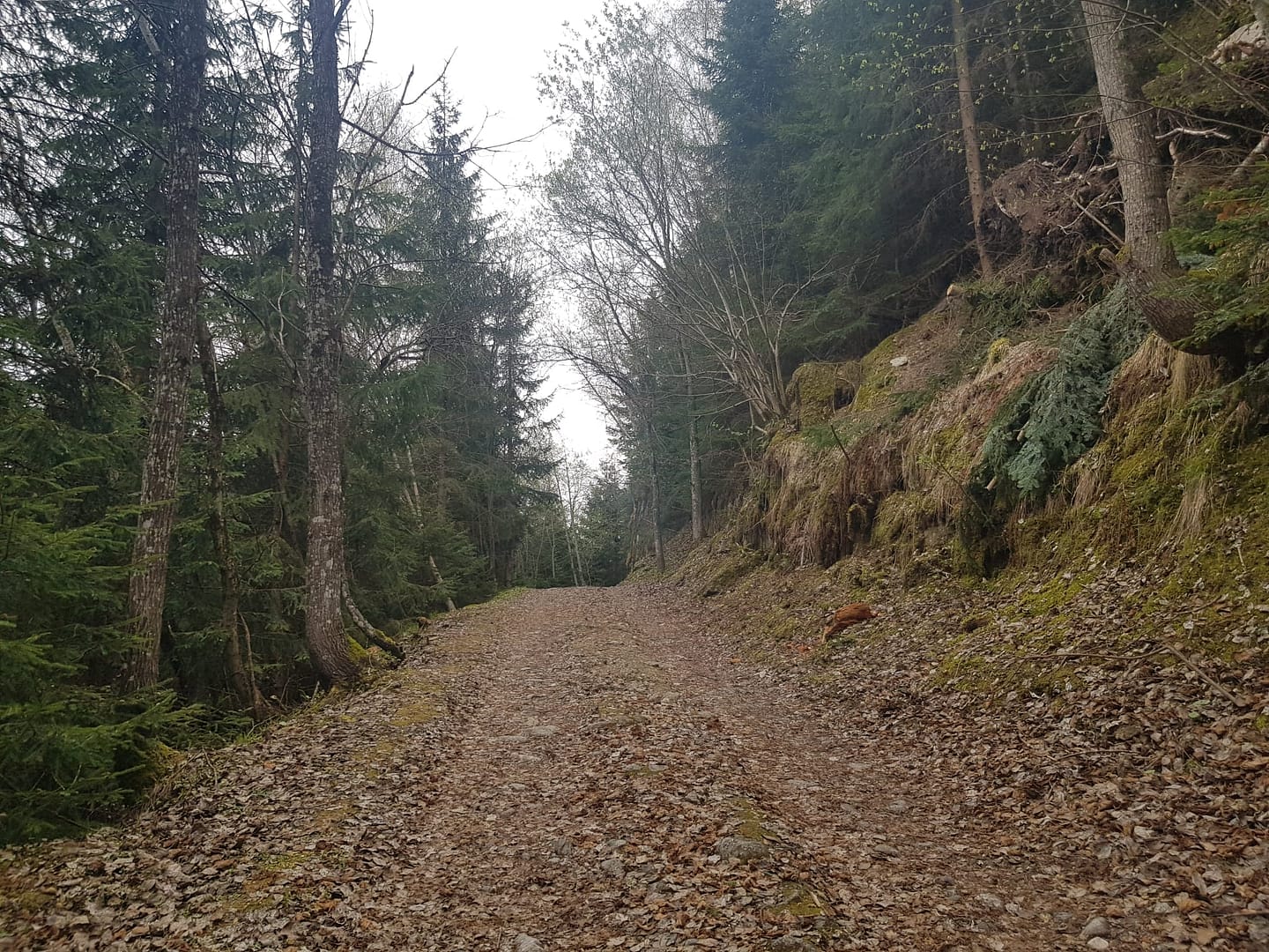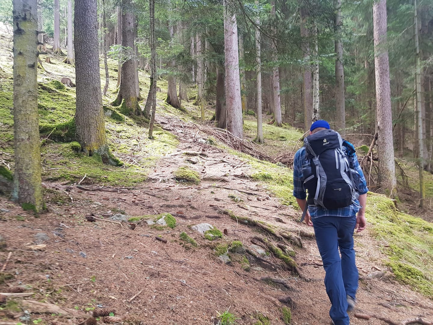 Die ersten 900 m vom Parkplatz führen über die Forststraße, danach zweigt ein schöner, schmaler Pfad rechts in den Wald ab, alternativ kann man auch weiter über die Forststraße bis zum Wiesenhof gehen. Ab dem Wiesenhof geht es weitere 100 Höhemeter über den schmalen, romantischen Pfad weiter bis wir die Forststraße kreuzen.