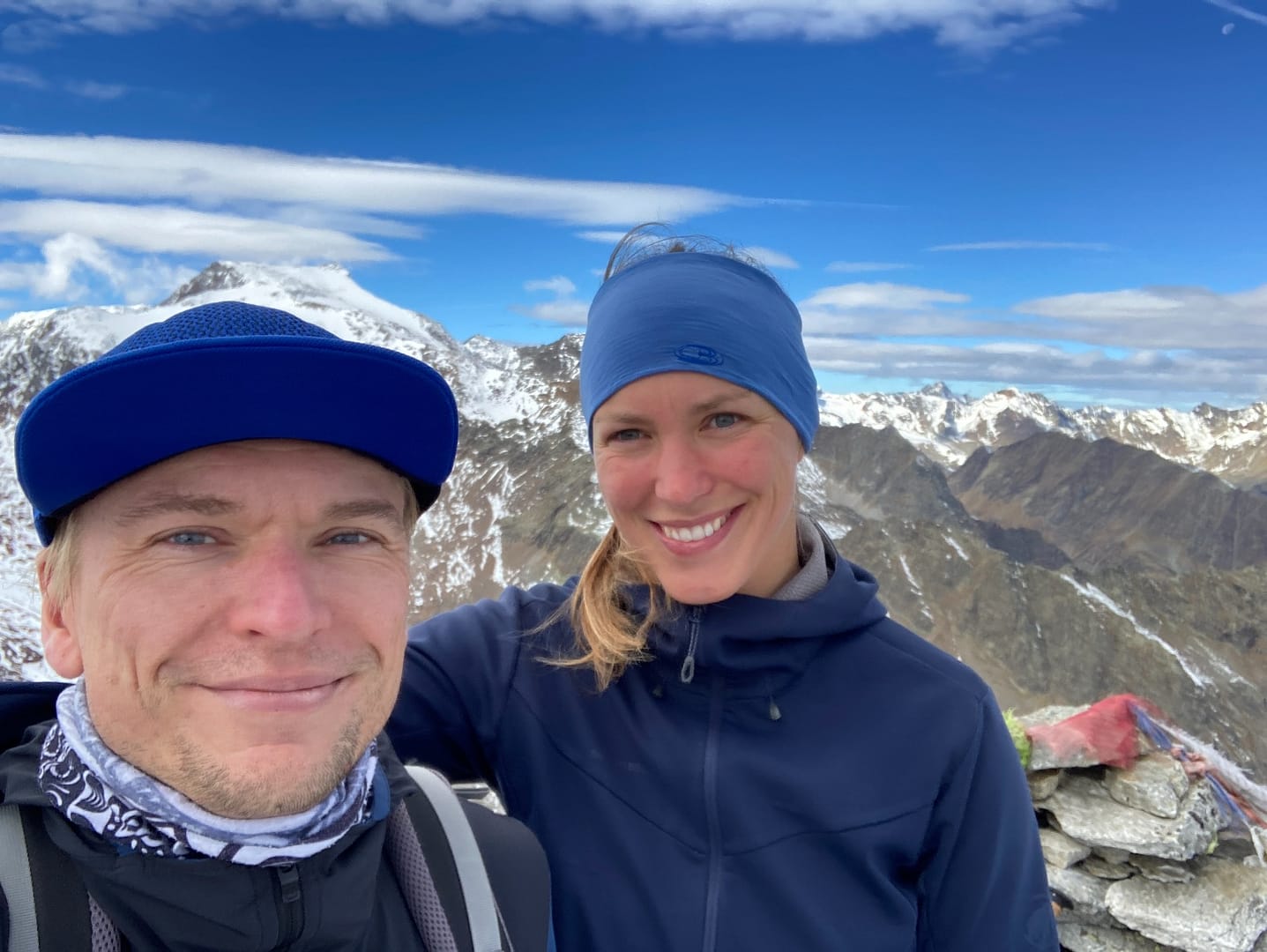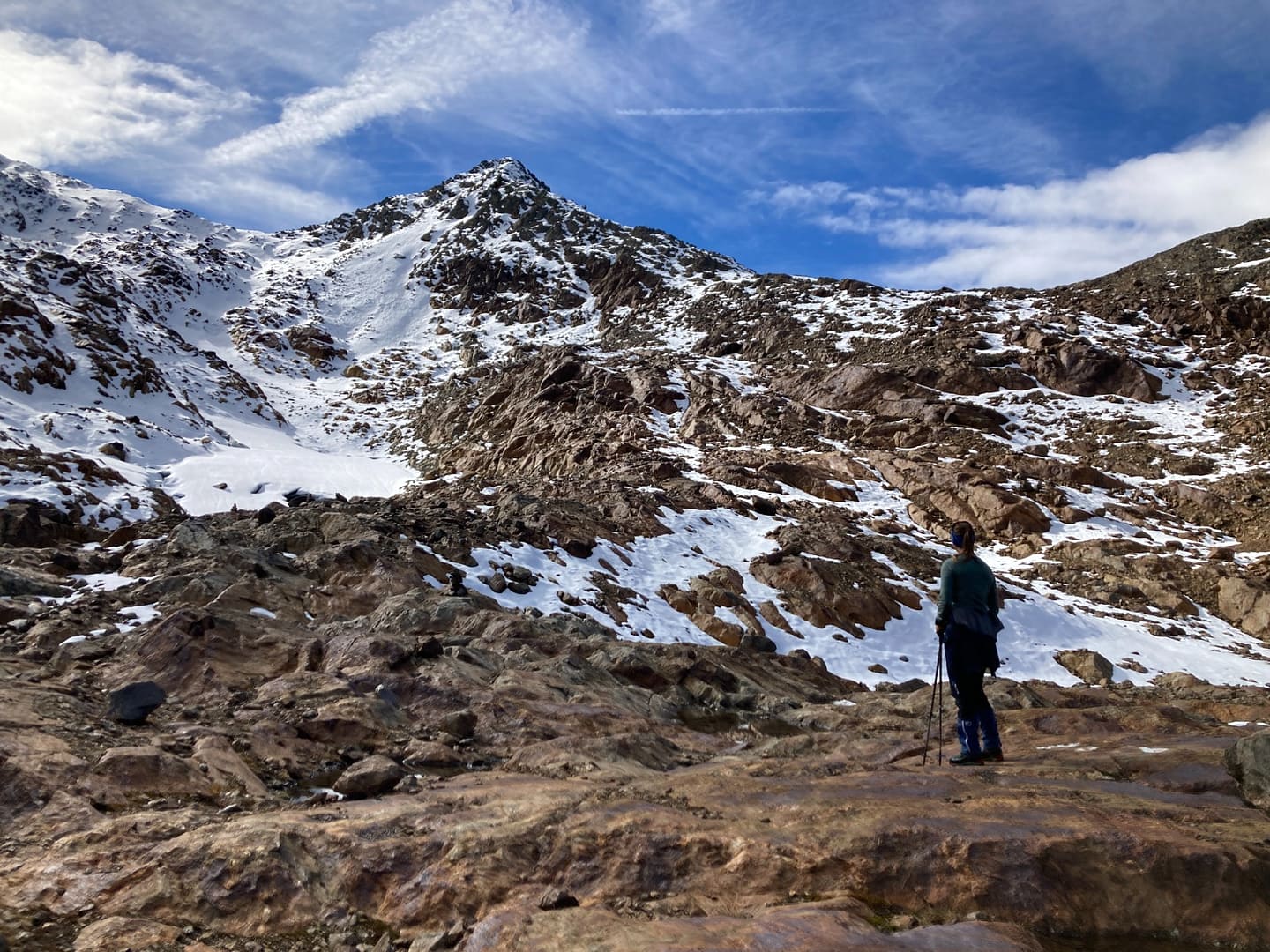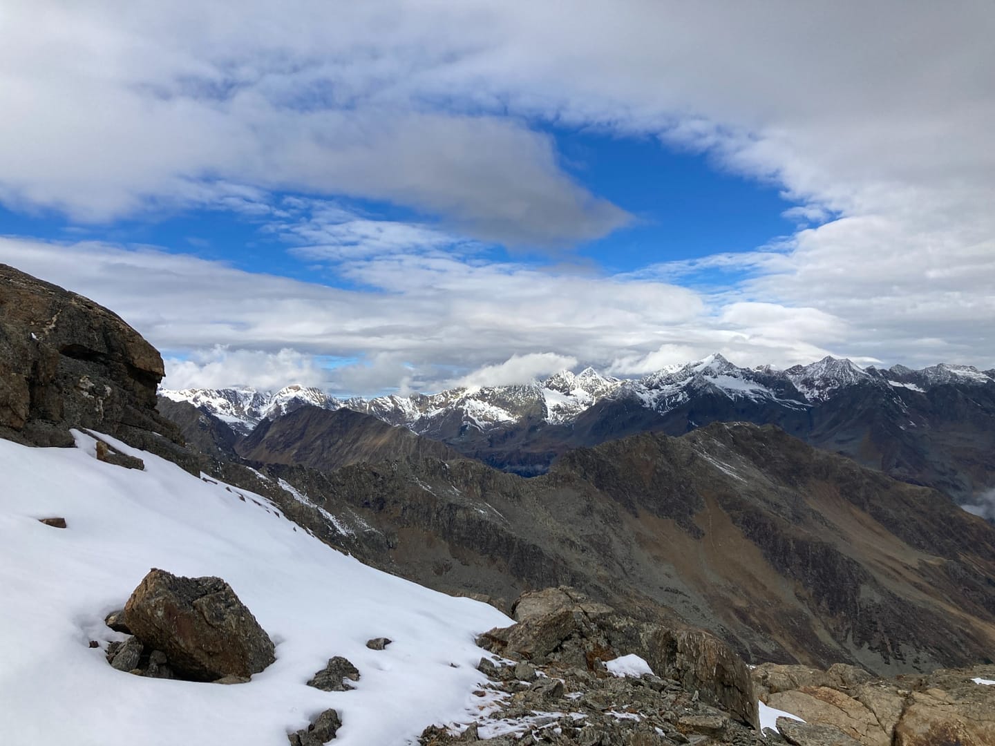 Oben angekommen hatten wir einen traumhaft-schönen 360° Ausblick. Aufgrund der Schneemassen haben wir hier unsere Tour beendet und sind nicht mehr zum östlichen Feuerstein gegangen, aber das war in Ordnung, denn wir haben es in vollen Zügen genossen.