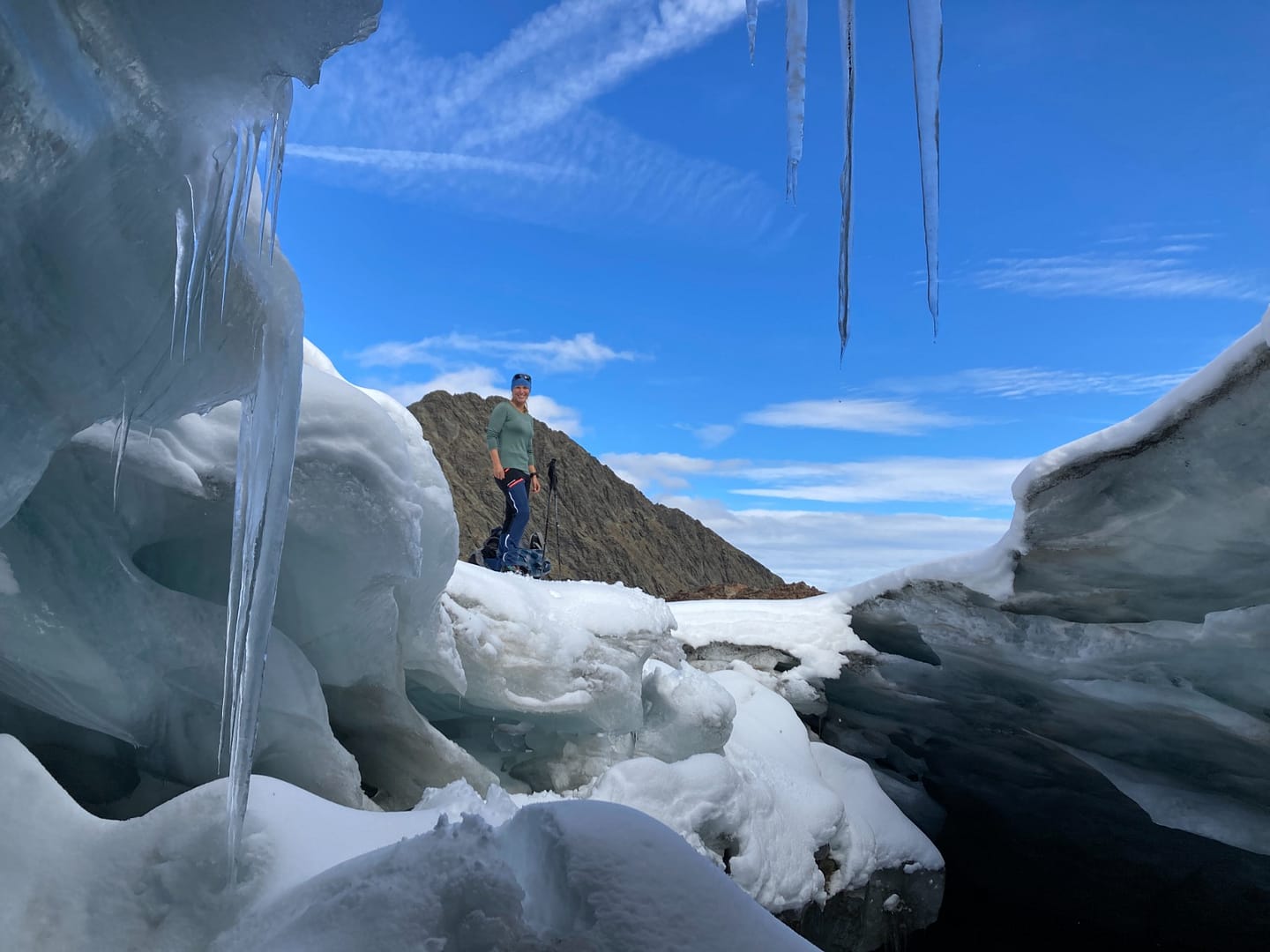 Den Abstieg begingen wir auf selbigen Wege, nur dass wir einen kleinen Abstecher zu den Resten des Gletschers machen, den dort wollten wir einen Blick hinein werfen. Auch „begrüßten“ uns die drei Steinböcke noch einmal auf unserem Weg zurück zur Hütte.