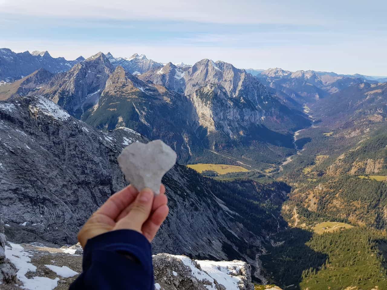 Am Gipfel genießen wir den herrlichen Ausblick und wurden sogar noch auf ein Schnaps eingeladen – alles Corona-conform, denn jeder hat ein Schnapsglas bekommen. Obligatorisch, wie ihr mich kennt, habe ich auch ein Herzstein gefunden. 🙂