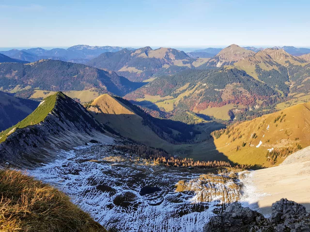 Von der Montscheinspitze hat man einen genialen Ausblick auf die Umgebung. Persönlich hat es mir sehr gut gefallen zu sehen, welchen Weg wir an dem Tag zurück gelegt haben, denn die Bettlerkarspitze und der Grat rüber hoch der Montscheinspitze war wunderbar zu erkennen.
