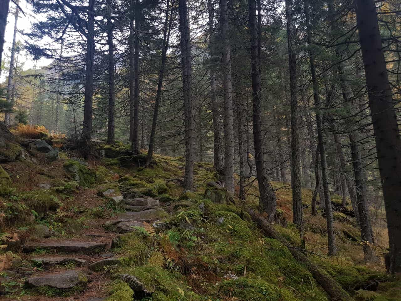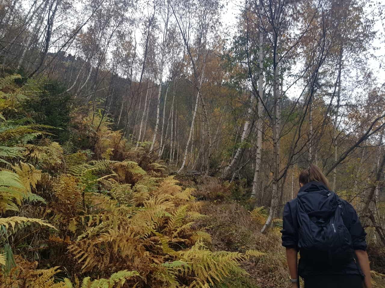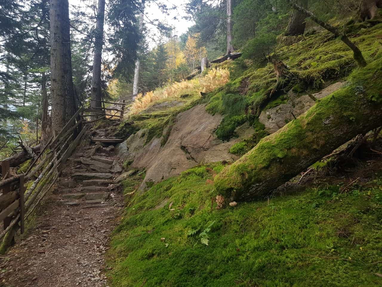 Vom Gasthof Häusling gehen wir taleinwärts Richtung Kraftwerk bis zu einer Brücke, die rechts über die Ziller führt. Die Straße endet an einem alten Bauernhof, wo der schmale Steig zur Bodenalm beginnt. Über wurzelige Abschnitte und in Stein gemeißelte Stufen führt der Weg in Kehren hinauf, deswegen sollte man trittsicher sein, auch gerade jetzt im Herbst, wo noch die Blätter den Steig säumen ist es rutschig. Wir haben den romantisch-idyllischen Weg einfach nur genossen; entlang der Schlucht, in welcher das Wasser nur so an einem vorbei rauscht und steil durch den schönen, bunten Wald hindurch.