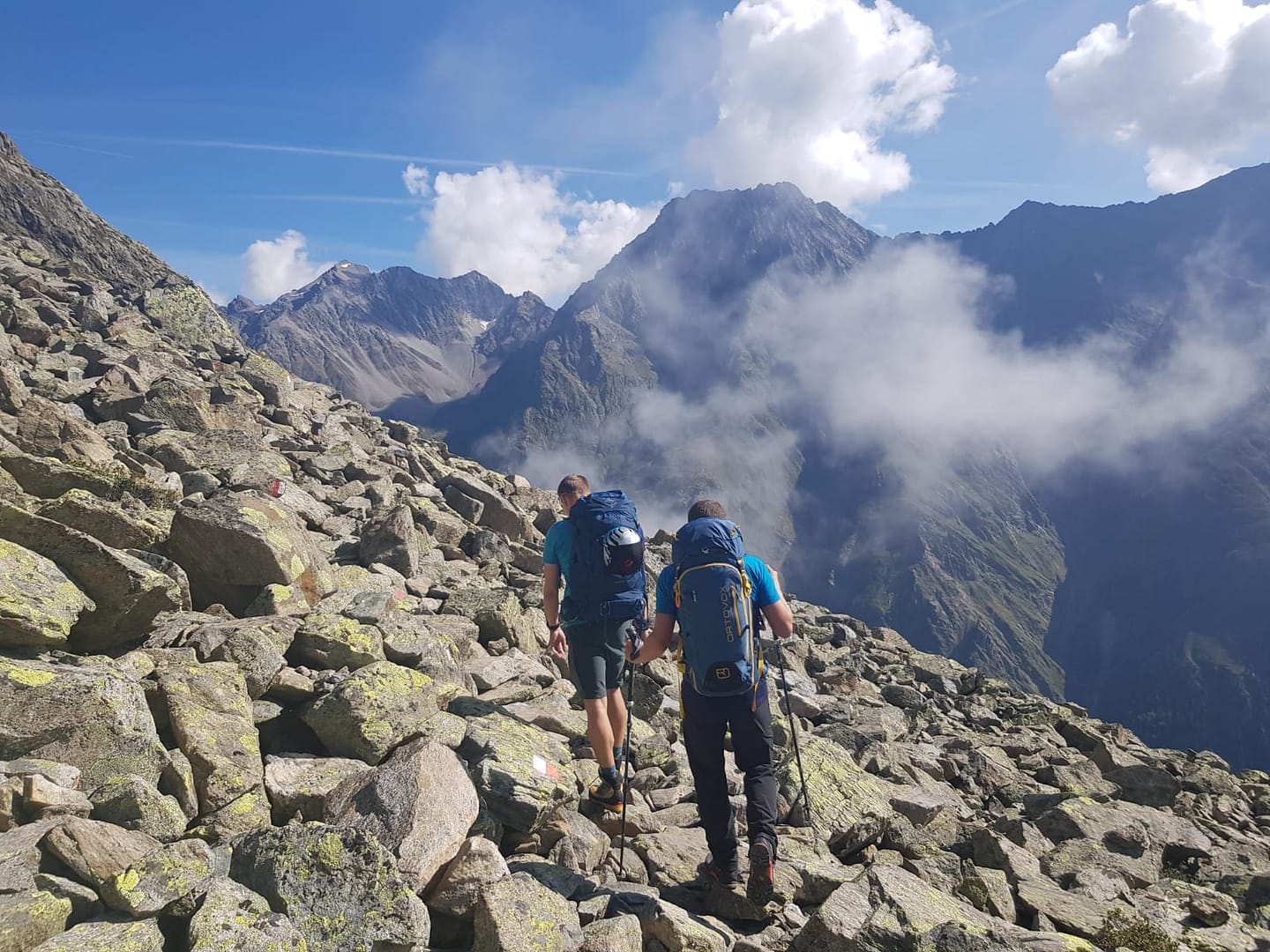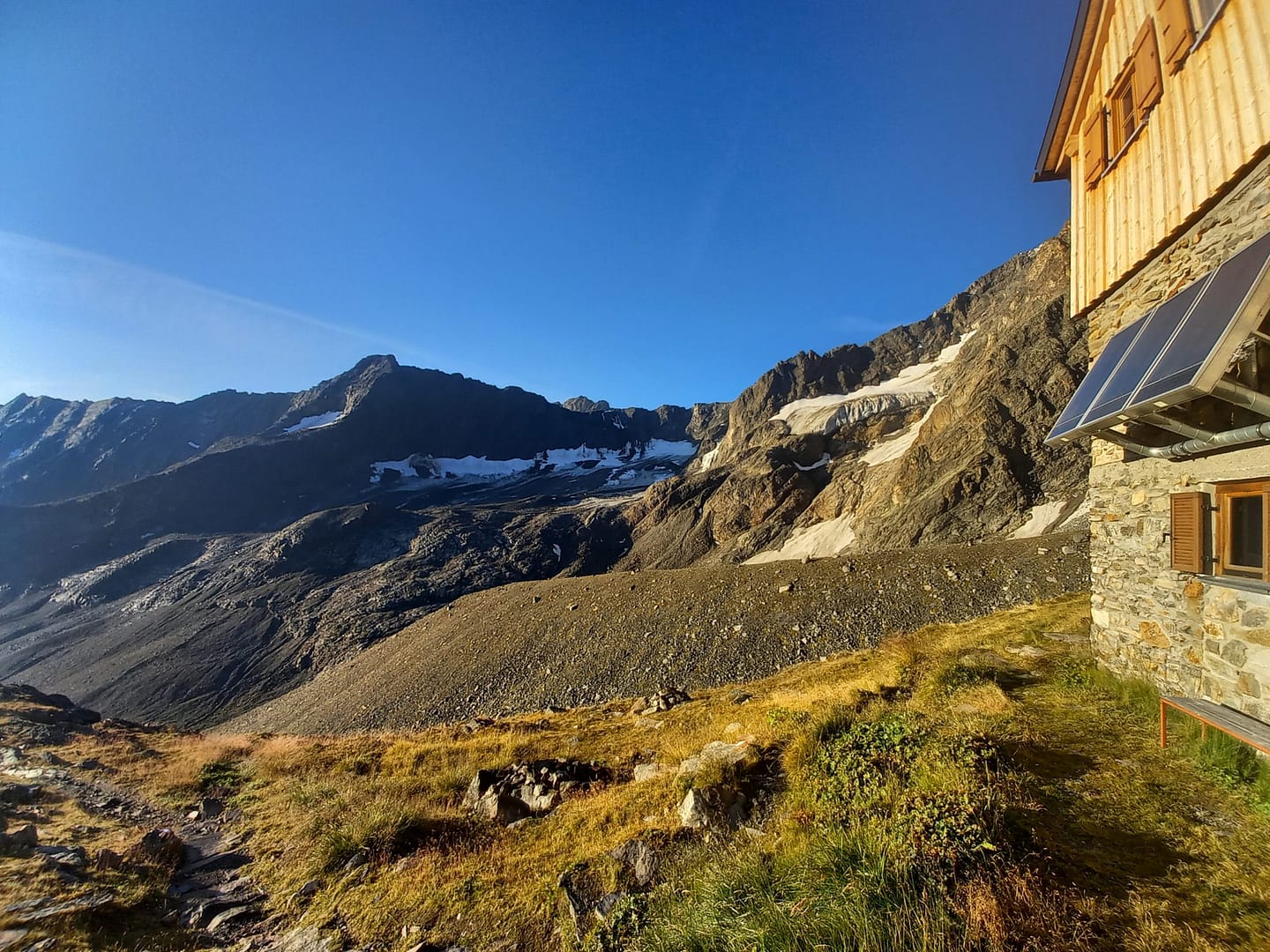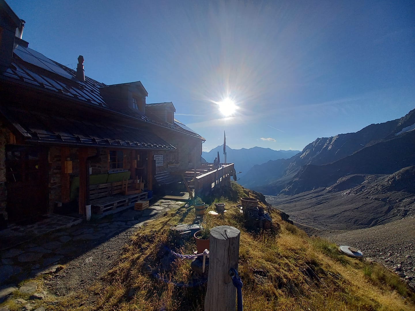 Die Kaunergrathütte ist eine schöne gemütliche Hütte, welche man auch als Tagesausflug erreichen kann. Sie liegt in den Ötztaler Alpen südlich der Verpeilspitze und nordöstlich der Watzespitze, dem Hauptgipfel des Kaunergrats. Draußen gibt es tolle Sitzmöglichkeiten von Bierbänken, ähnlich Paletten-Sitzgelegenheiten und einige Liegestühle sowie Hängematten. All dies lädt zum ausruhen und genießen ein. Innen gibt es zwei Aufenthaltsräume, die durch die Küche getrennt sind, wenn man eine große Veranstaltung hat wie wir ist dieser Umstand eher ungünstig. Für die Frauen gibt es nur eine Toilette, deshalb sollte man, wenn man einen strengen Zeitplan hat, kürzere Wartezeiten einplanen. Der Waschraum mit der Dusche war mein kleines persönliches Highlight, denn von der Dusche hatte man einen tollen Ausblick raus auf die bergige Umgebung. Mein 6er Lagerplatz war bequem, aber der Zwischenraum sehr begrenzt für z.B. Rücksäcke.