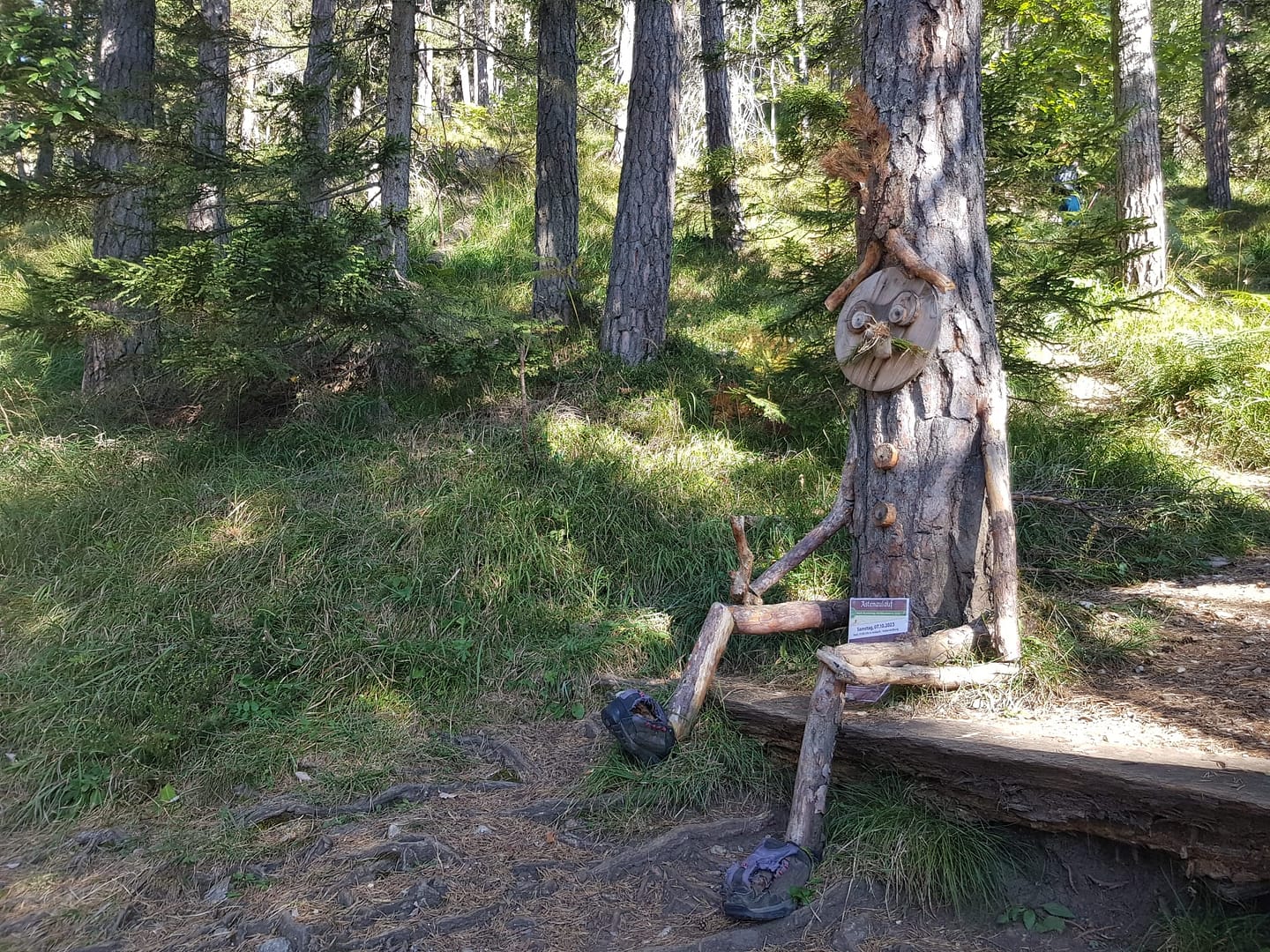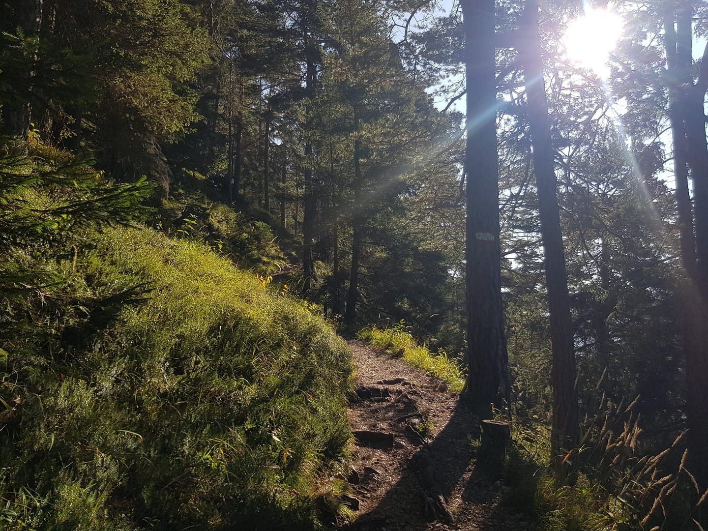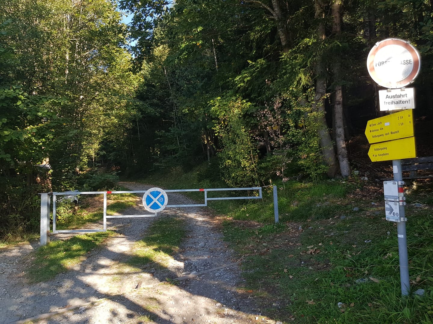 Vom Parkplatz überquert man die Straße und folgt dem Notburgasteig ein kurzes Stück nach links, in westliche Richtung. Nach ca. 300 Meter biegt man nach rechts auf einen schmalen Steig ab, das Gipfelziel immer gut ausgeschildert. Es geht weiter Richtung Osten dem leicht ansteigenden Pfad hinauf. Auf 1.215 m erreichen wir ein Schuttfeld, welches man auf zwei Wegen überqueren kann. Wir wählten den oberen Weg, weil auf dem unteren der Astenaulauf stattfand und wir den Läufern nicht zu sehr in der Quere sein wollten, 700 Meter später treffen die Wege wieder aufeinander. Nach dem Schuttfeld gibt es eine kleine „Kletterstelle“, schön abwechslungsreich. Noch ein paar Schlaufen durch den Wald und man erreicht den Alpengasthof Astenau.